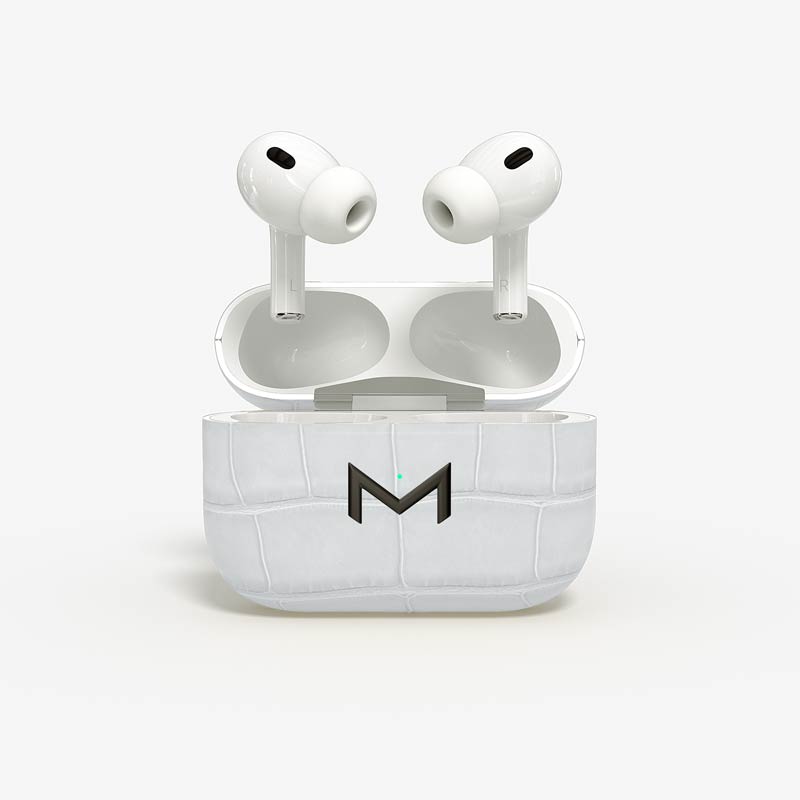 Exclusively made to order, the charging case of our custom Airpods Pro 2 is fully wrapped in hand-selected, top-grade alligator leather — chosen for its rarity, texture, and unmistakable presence..