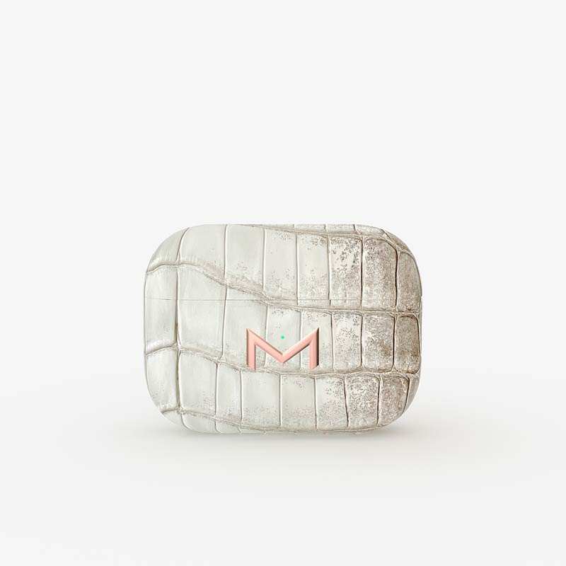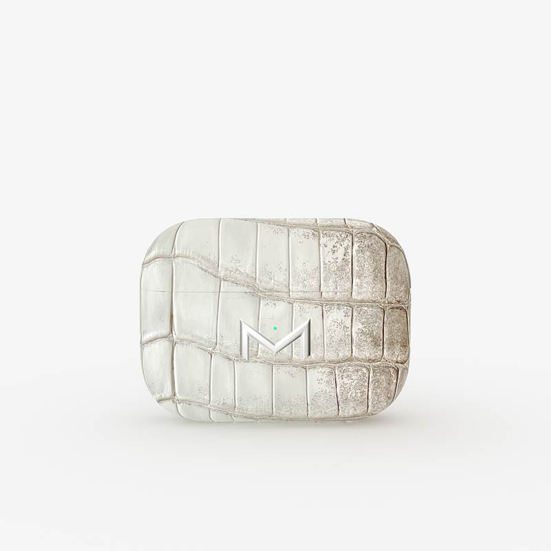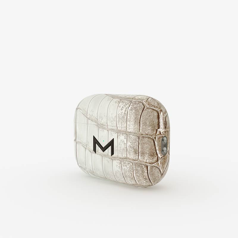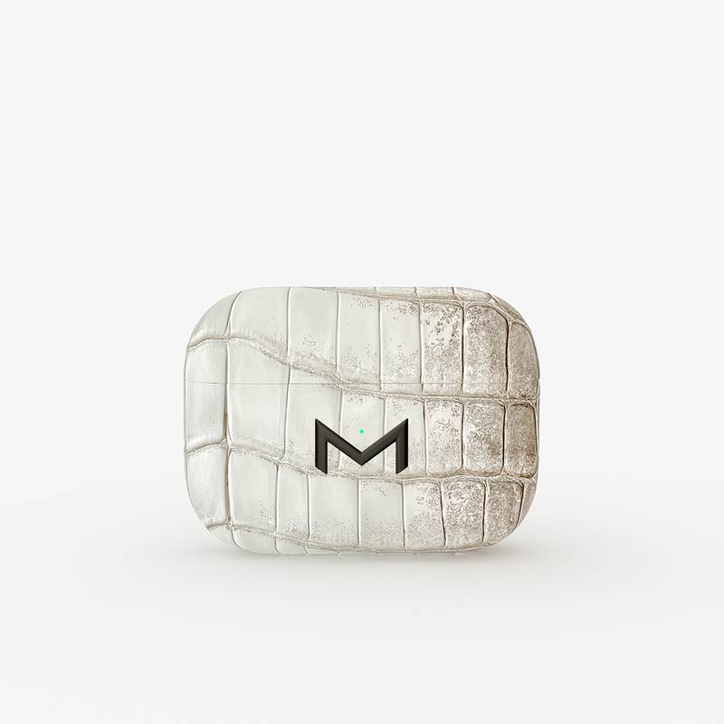 Exclusively made to order, the charging case of our custom Airpods Pro 2 is fully wrapped in hand-selected, ultra-rare Himalaya crocodile leather — selected for its exceptional gradient, rarity, and timeless prestige..