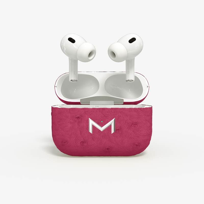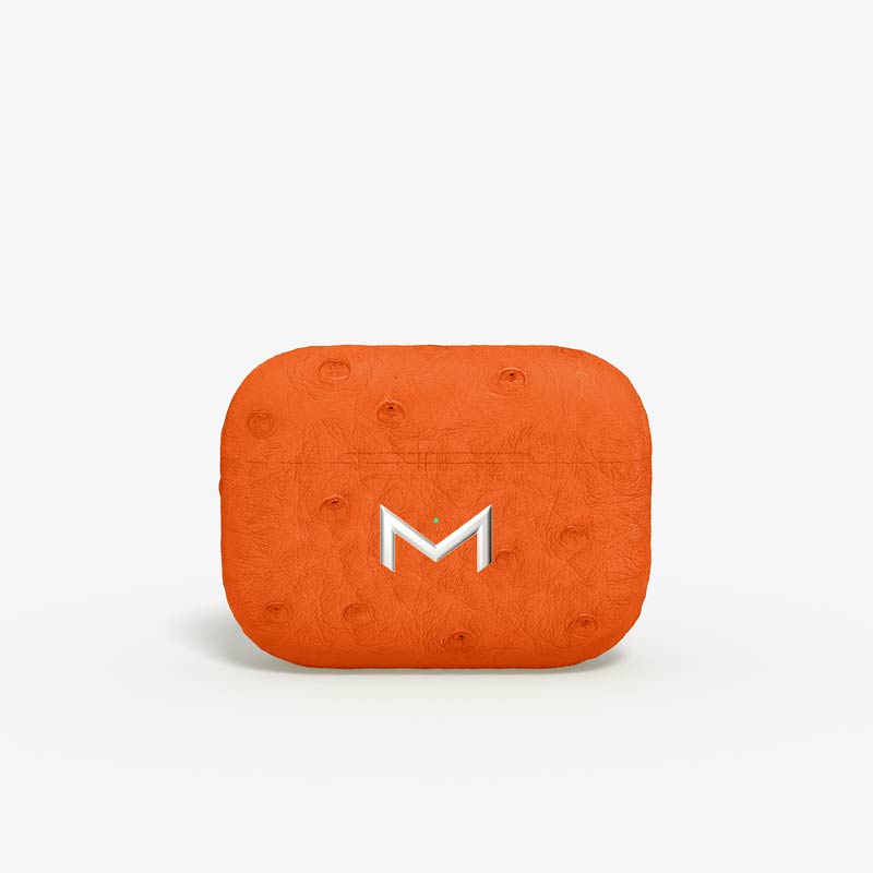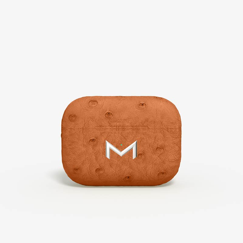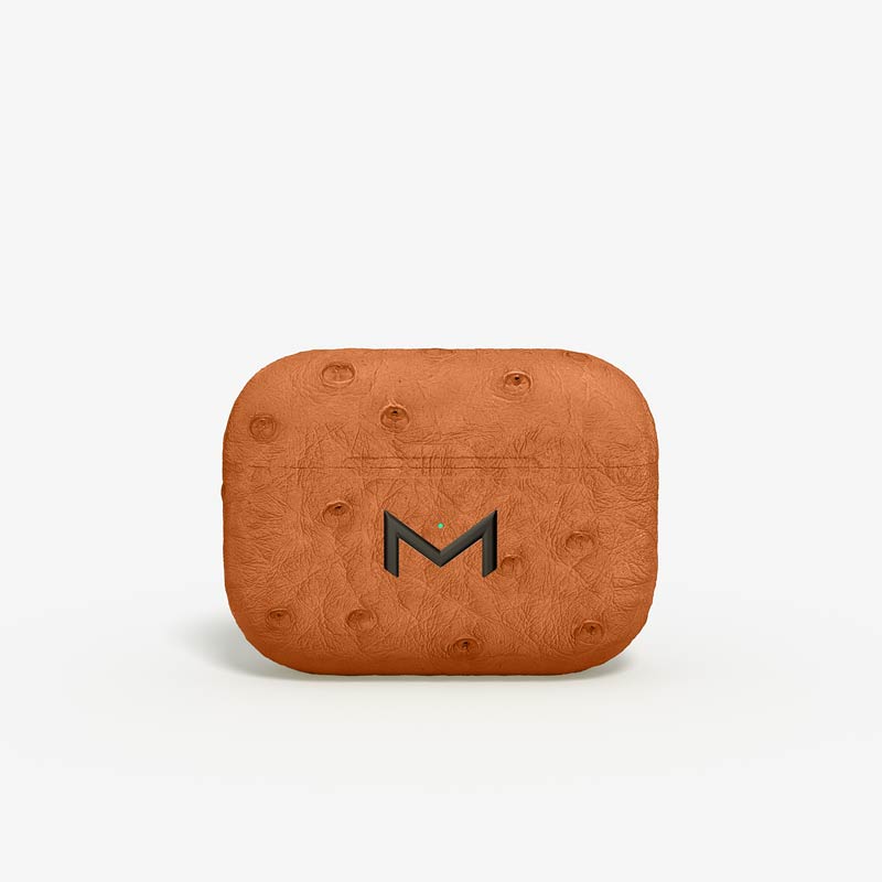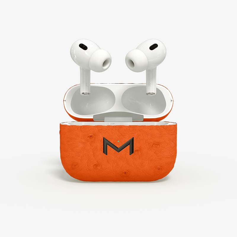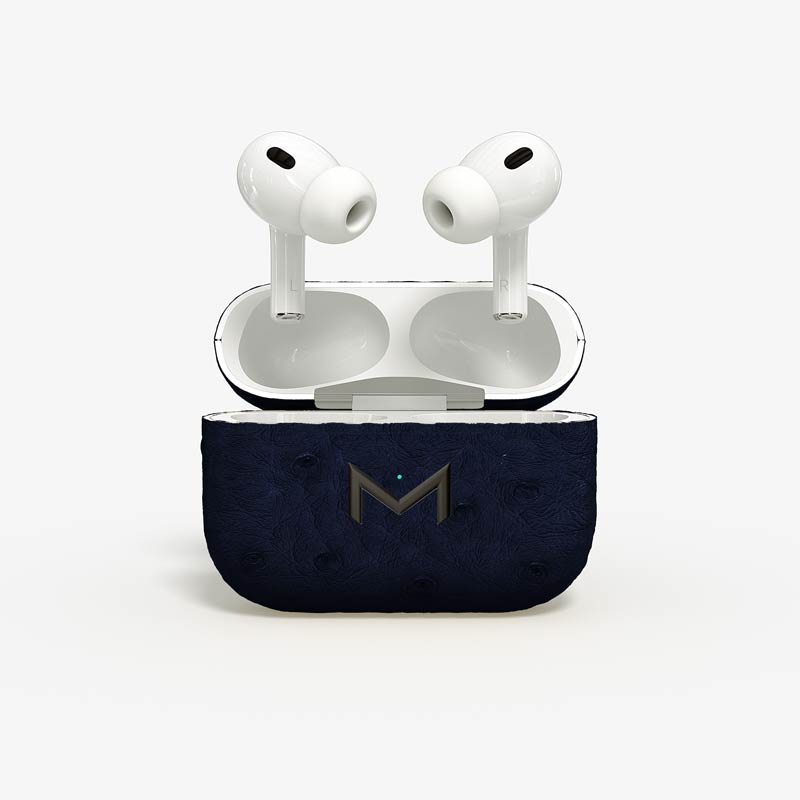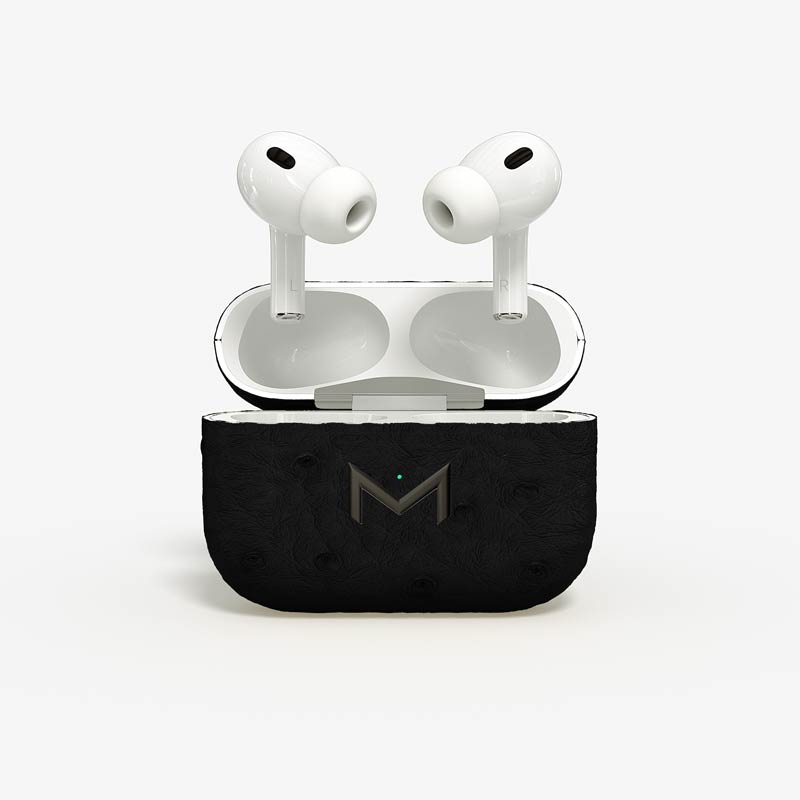 Exclusively made to order, the charging case of our custom Airpods Pro 2 is fully wrapped in hand-selected, full-quill ostrich leather — valued for its supple texture, natural markings, and unmistakable character..