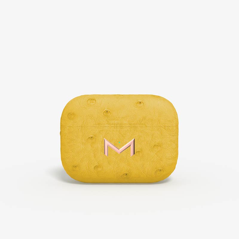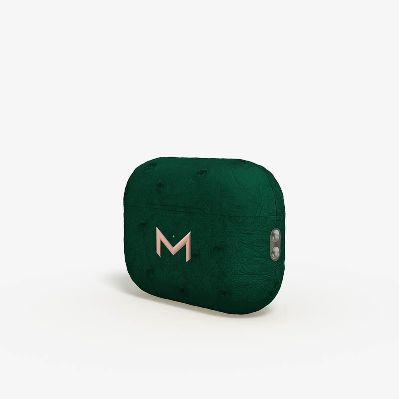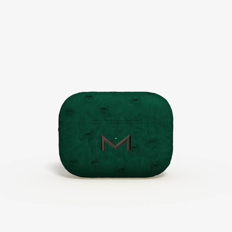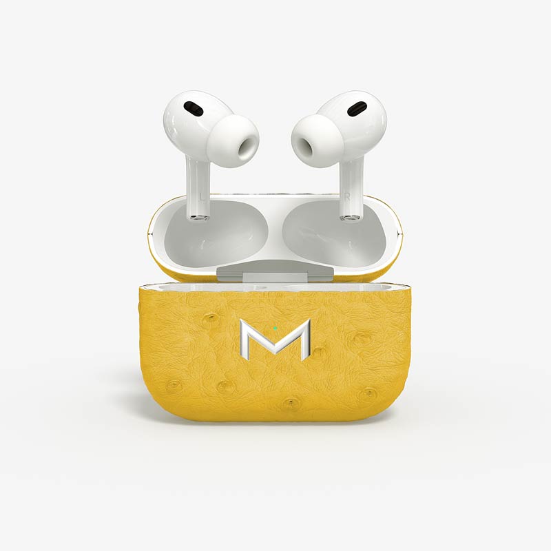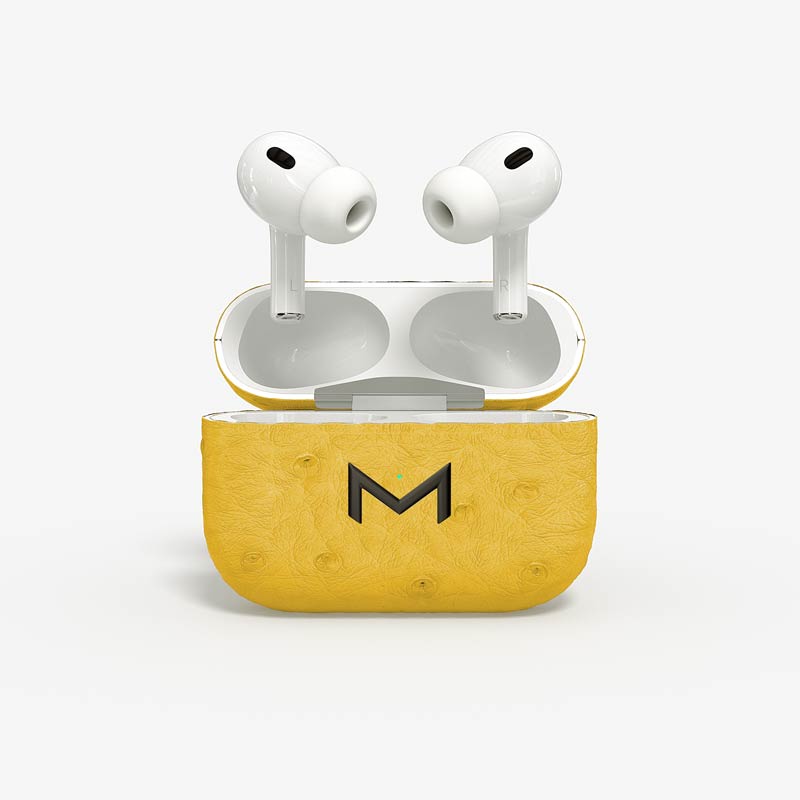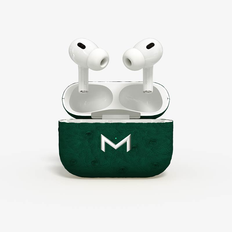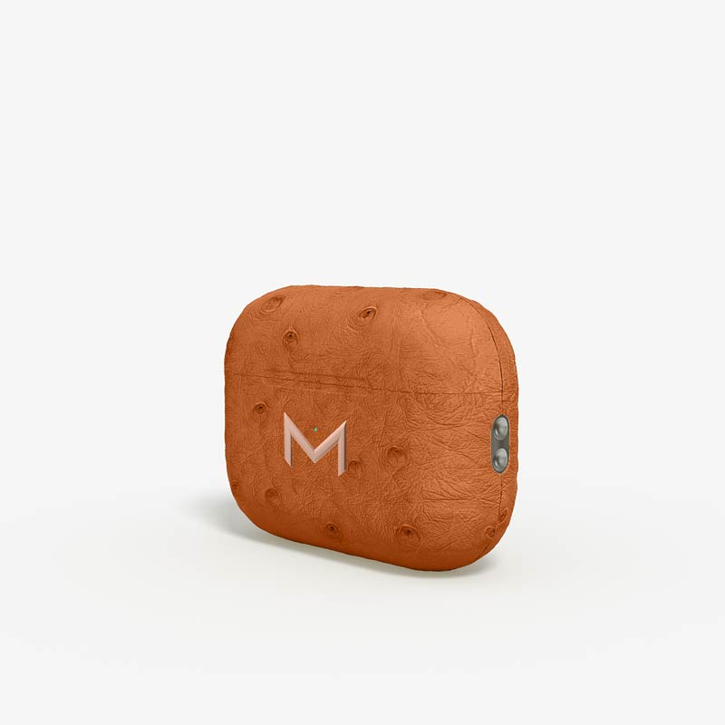 Exclusively made to order, the charging case of our custom Airpods Pro 2 is fully wrapped in hand-selected, full-quill ostrich leather — valued for its supple texture, natural markings, and unmistakable character..