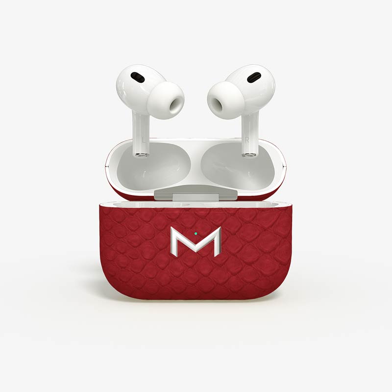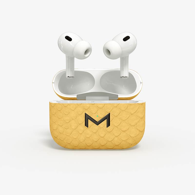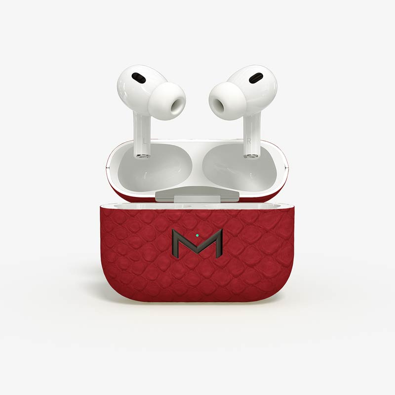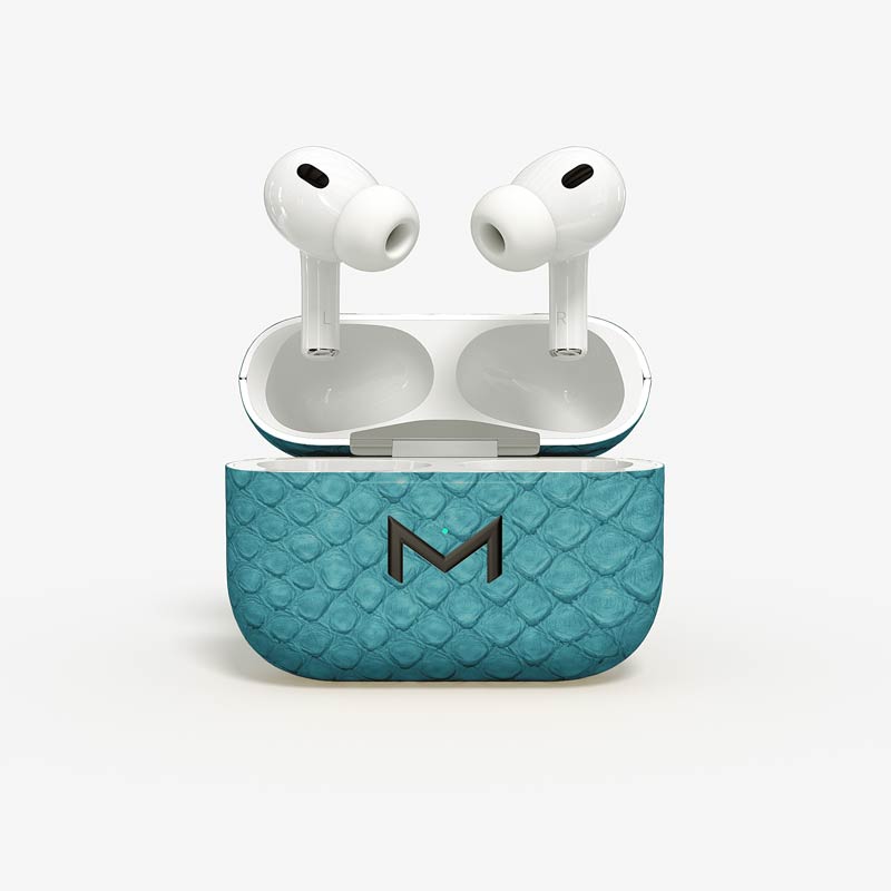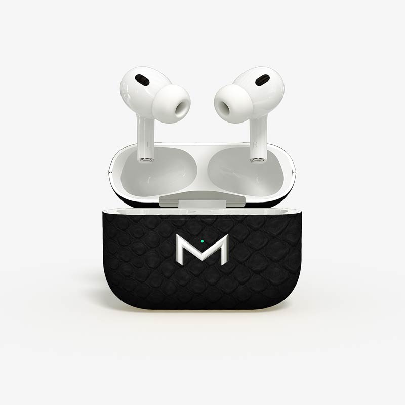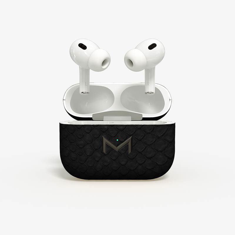 Exclusively made to order, the charging case of our custom Airpods Pro 2 is fully wrapped in hand-selected, python leather — chosen for its exotic texture, unique scale pattern, and bold presence..