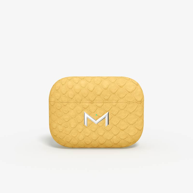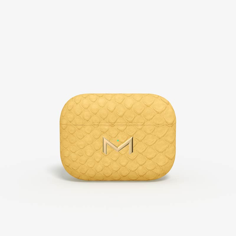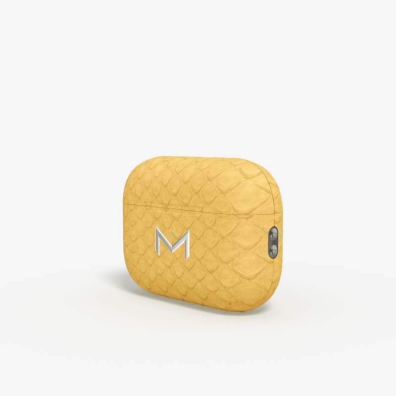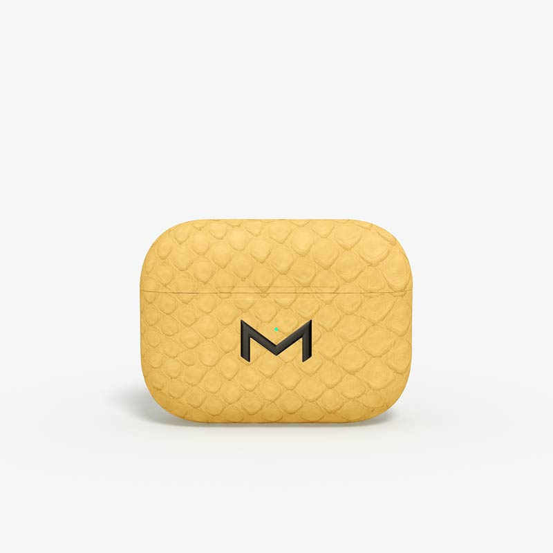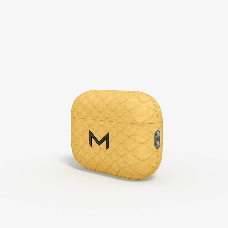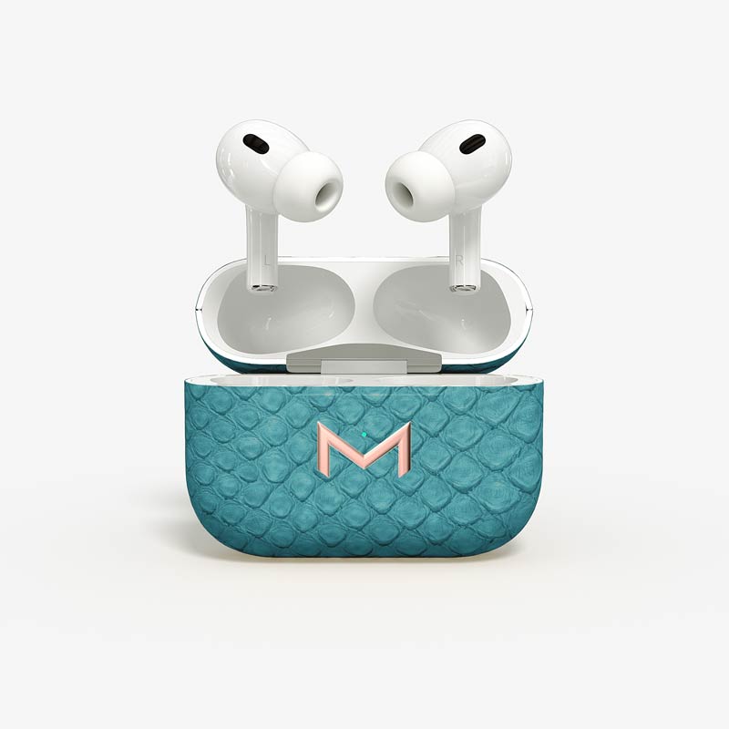 Exclusively made to order, the charging case of our custom Airpods Pro 2 is fully wrapped in hand-selected, python leather — chosen for its exotic texture, unique scale pattern, and bold presence..