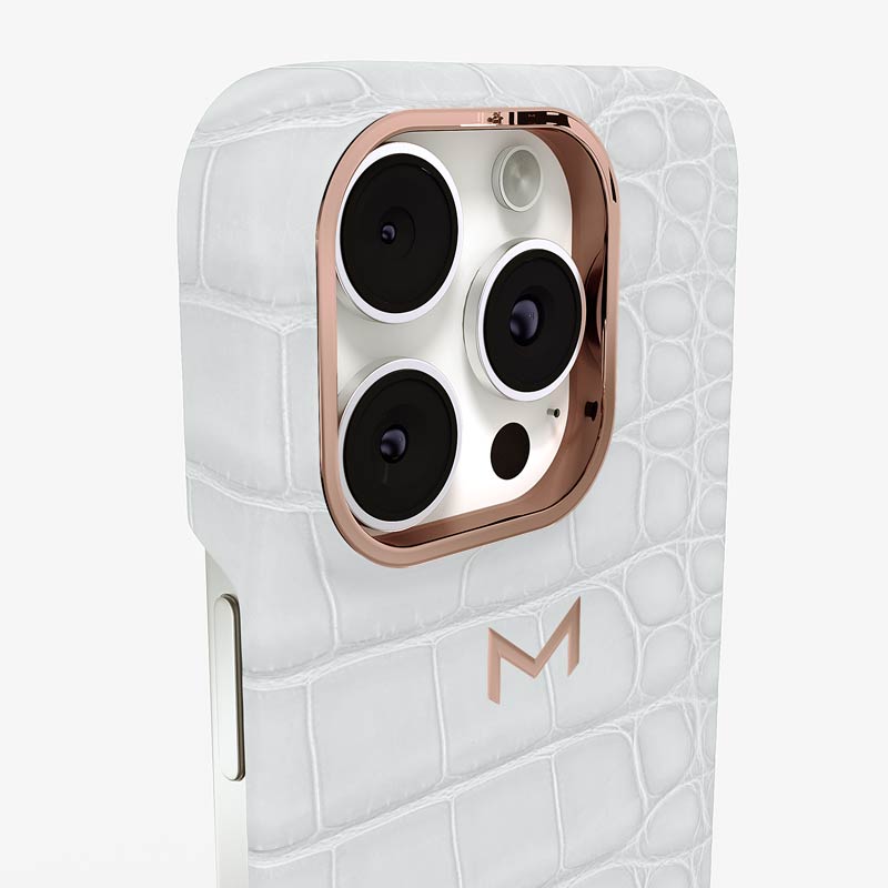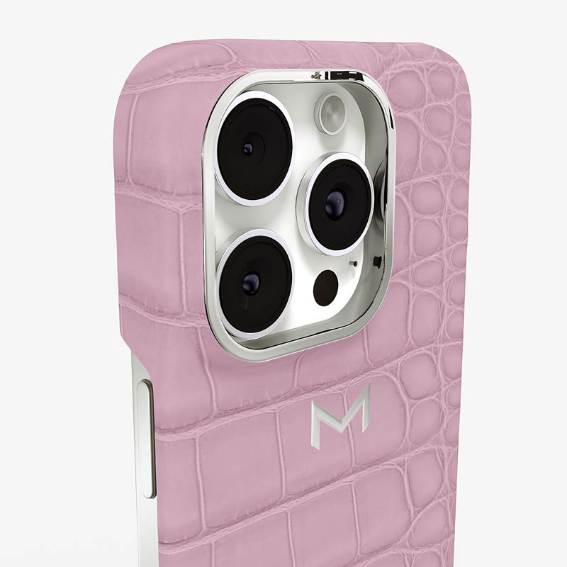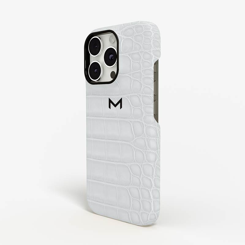Exclusively made to order and entirely handcrafted, this iPhone 15 Pro case is sheathed in hand-selected, top-grade alligator leather — chosen for its rarity, texture, and unmistakable presence. Inside, a soft Alcantara lining cradles your device, preserving its flawless condition. The hand-polished 316L stainless steel logo and camera ring reflect a commitment to detail and craftsmanship rarely seen.