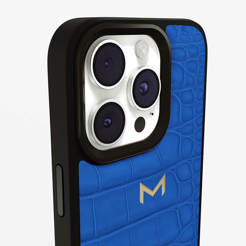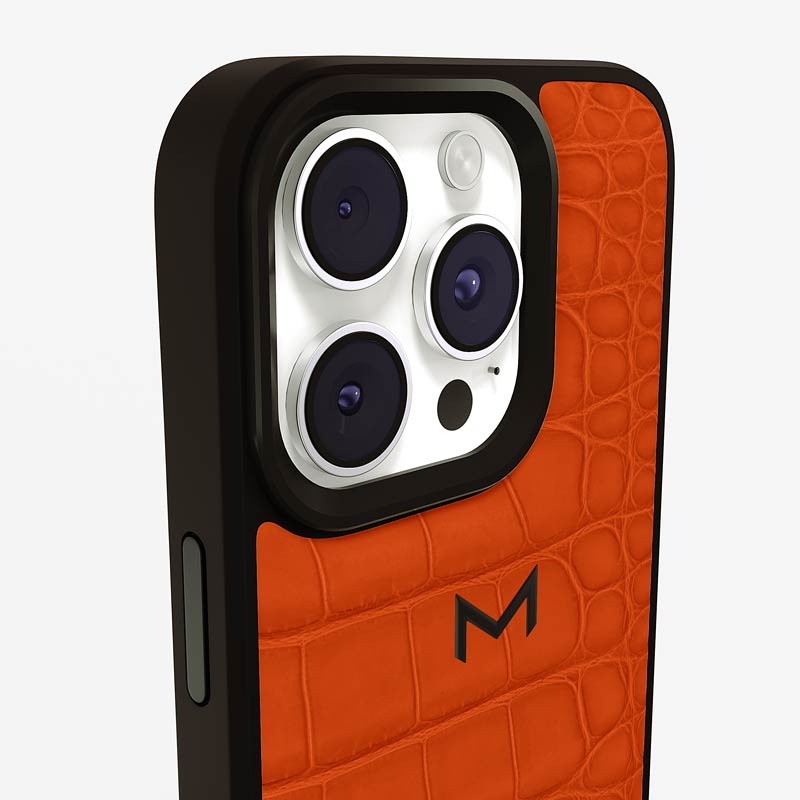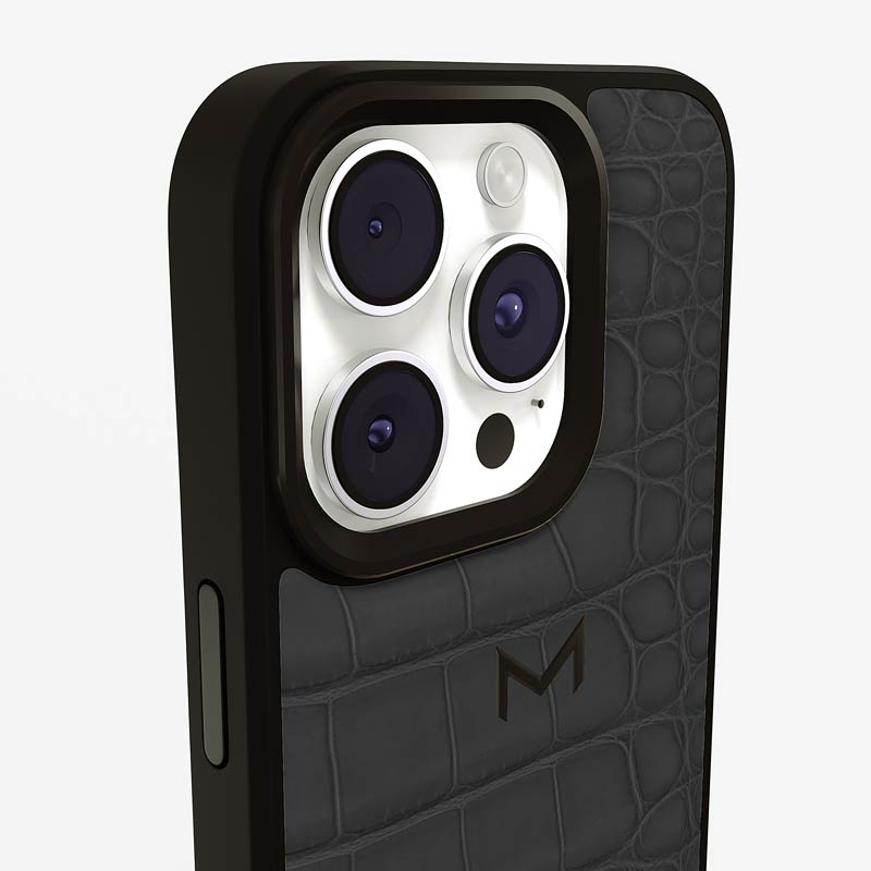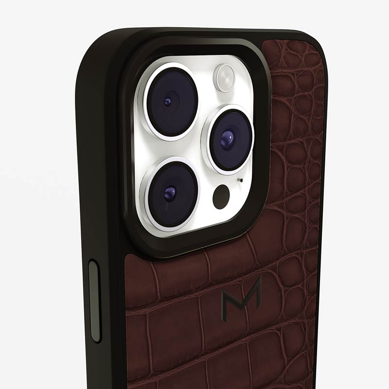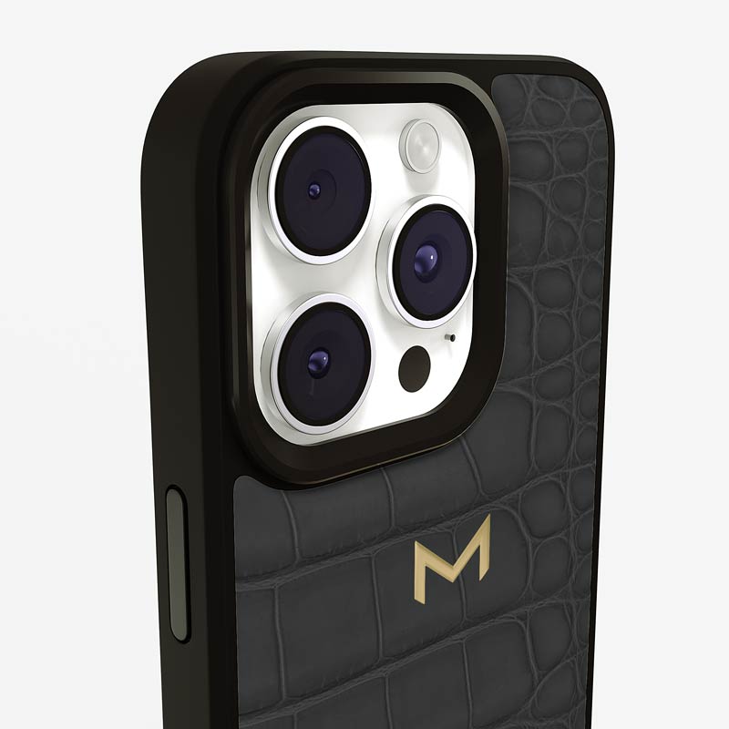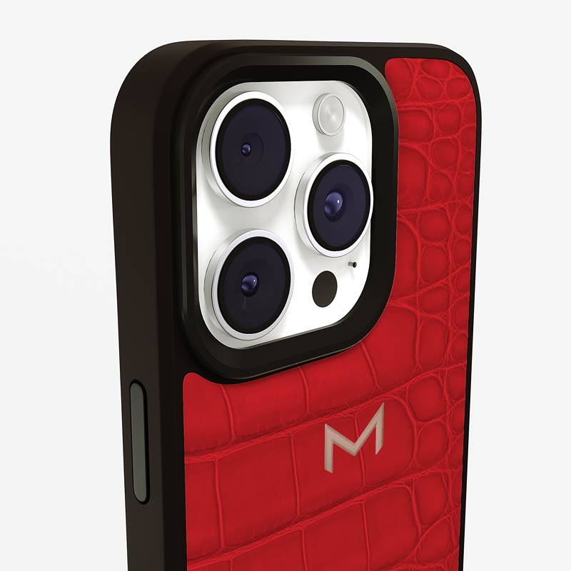 Exclusively made to order and entirely handcrafted, this iPhone 15 Pro case is sheathed in hand-selected, top-grade alligator leather — chosen for its rarity, texture, and unmistakable presence. Inside, a soft Alcantara lining cradles your device, preserving its flawless condition. The hand-polished 316L stainless steel logo and camera ring reflect a commitment to detail and craftsmanship rarely seen.