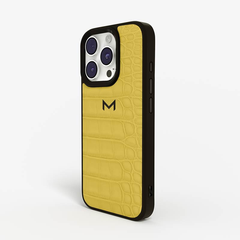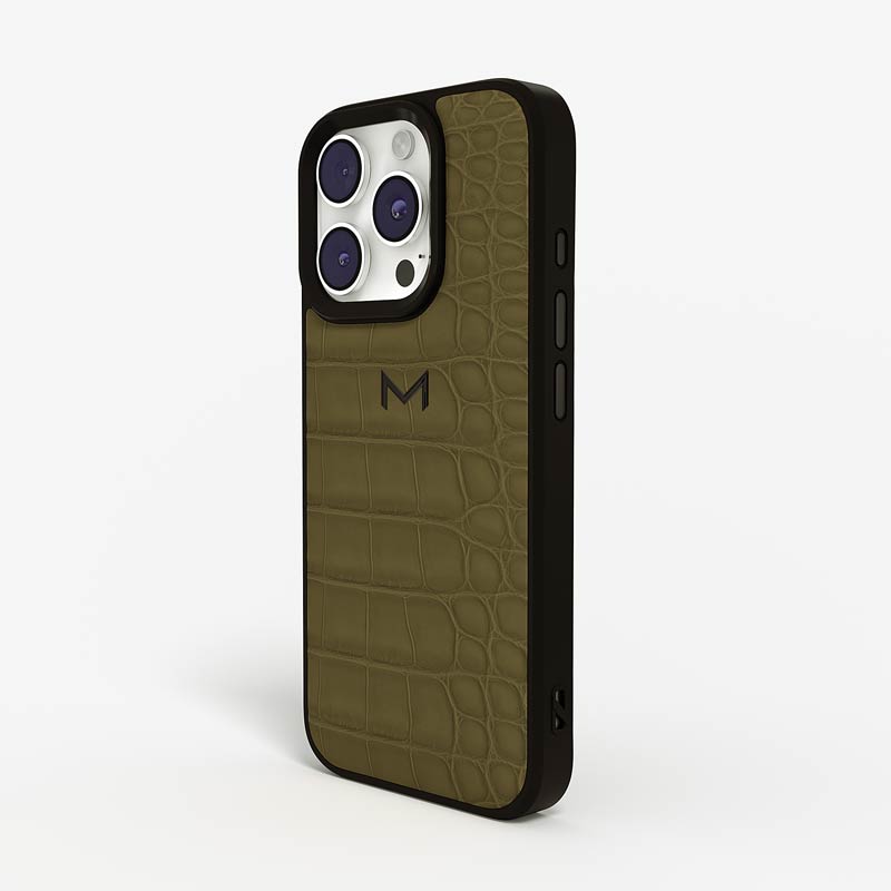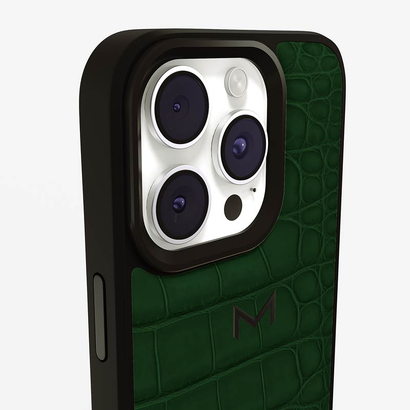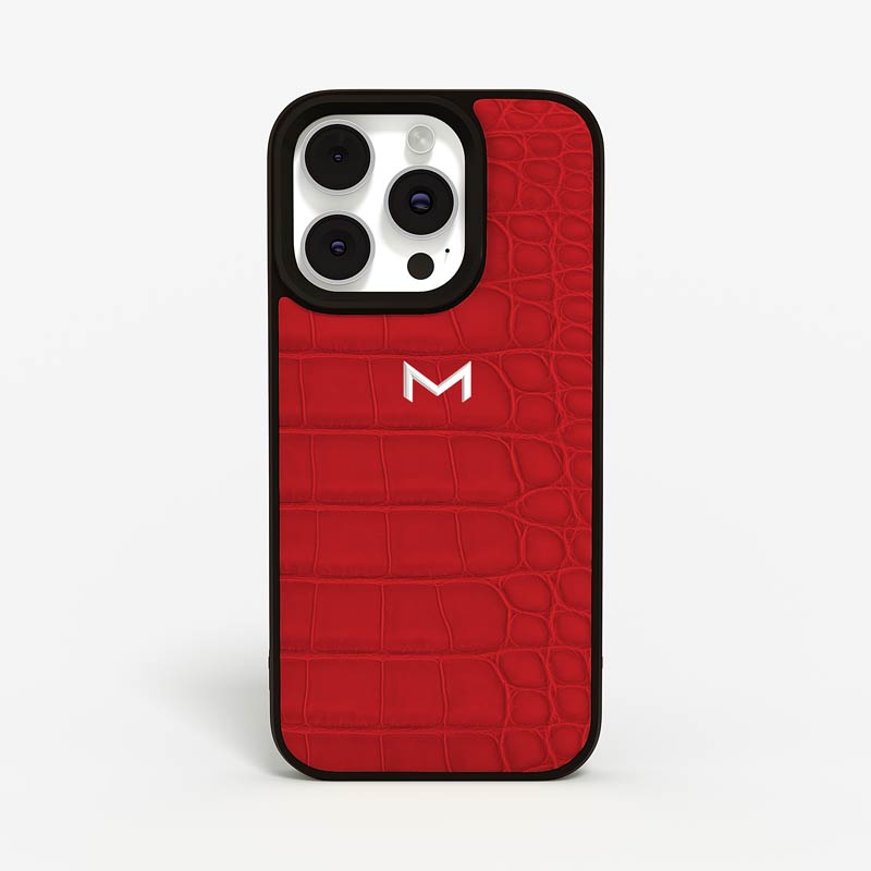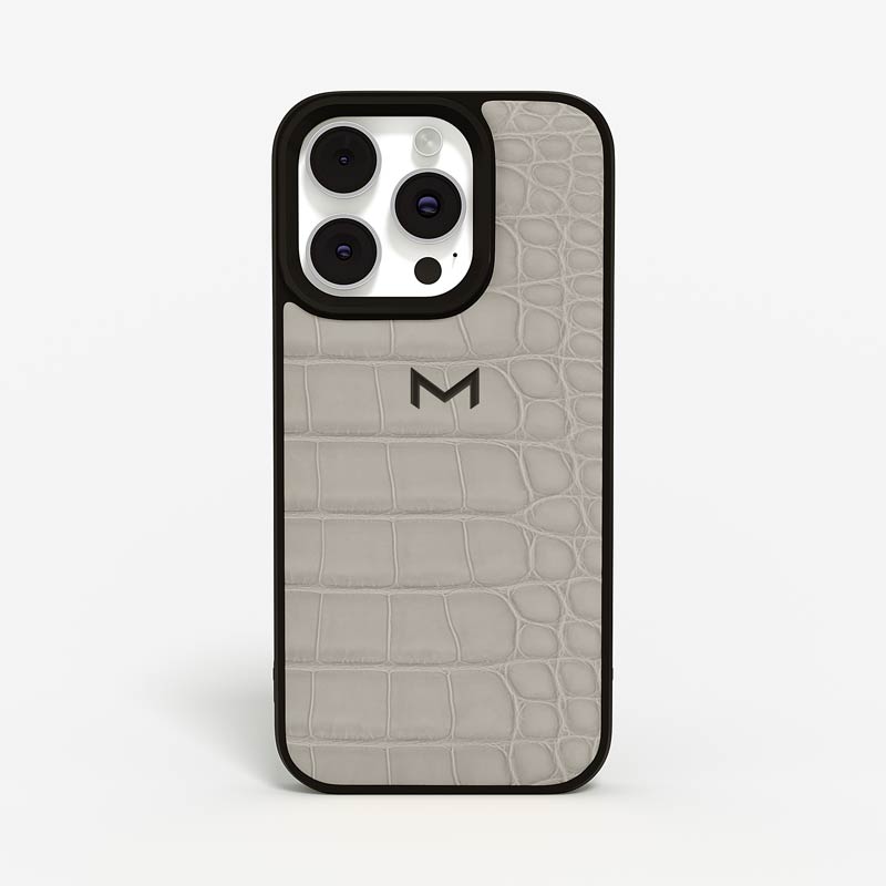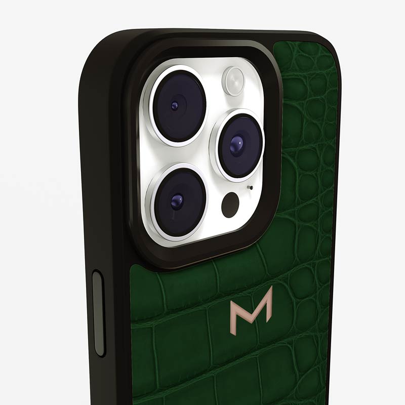 Exclusively made to order and entirely handcrafted, this iPhone 15 Pro case is sheathed in hand-selected, top-grade alligator leather — chosen for its rarity, texture, and unmistakable presence. Inside, a soft Alcantara lining cradles your device, preserving its flawless condition. The hand-polished 316L stainless steel logo and camera ring reflect a commitment to detail and craftsmanship rarely seen.