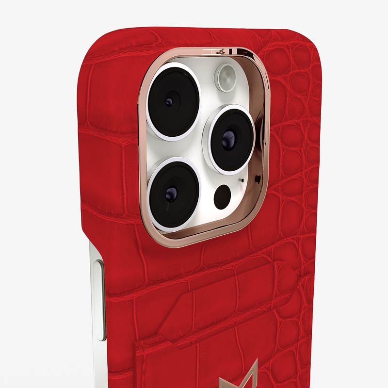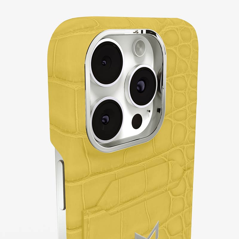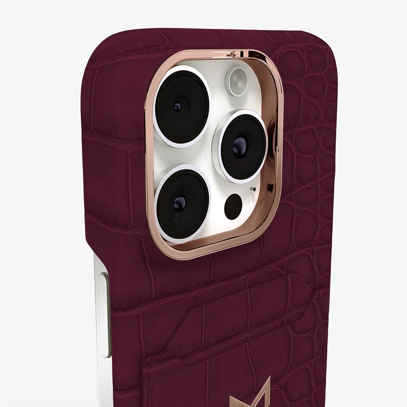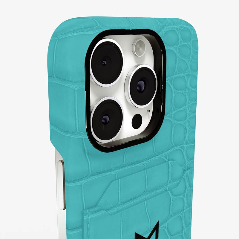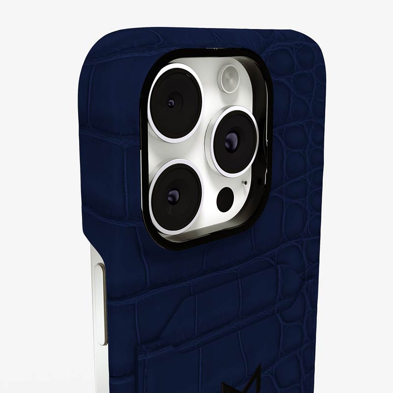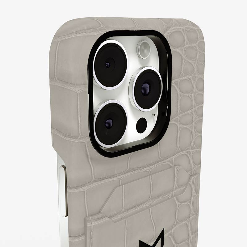 Exclusively made to order and entirely handcrafted, this iPhone 15 Pro Max case is sheathed in hand-selected, top-grade alligator leather — chosen for its rarity, texture, and unmistakable presence. Inside, a soft Alcantara lining cradles your device, preserving its flawless condition. The hand-polished 316L stainless steel logo and camera ring reflect a commitment to detail and craftsmanship rarely seen.