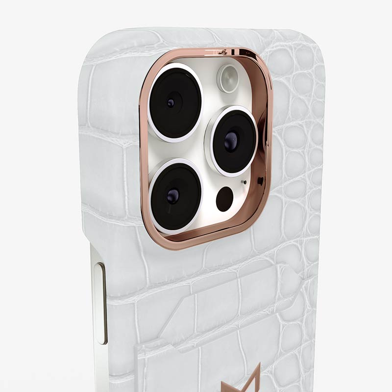 Exclusively made to order and entirely handcrafted, this iPhone 15 Pro Max case is sheathed in hand-selected, top-grade alligator leather — chosen for its rarity, texture, and unmistakable presence. Inside, a soft Alcantara lining cradles your device, preserving its flawless condition. The hand-polished 316L stainless steel logo and camera ring reflect a commitment to detail and craftsmanship rarely seen.