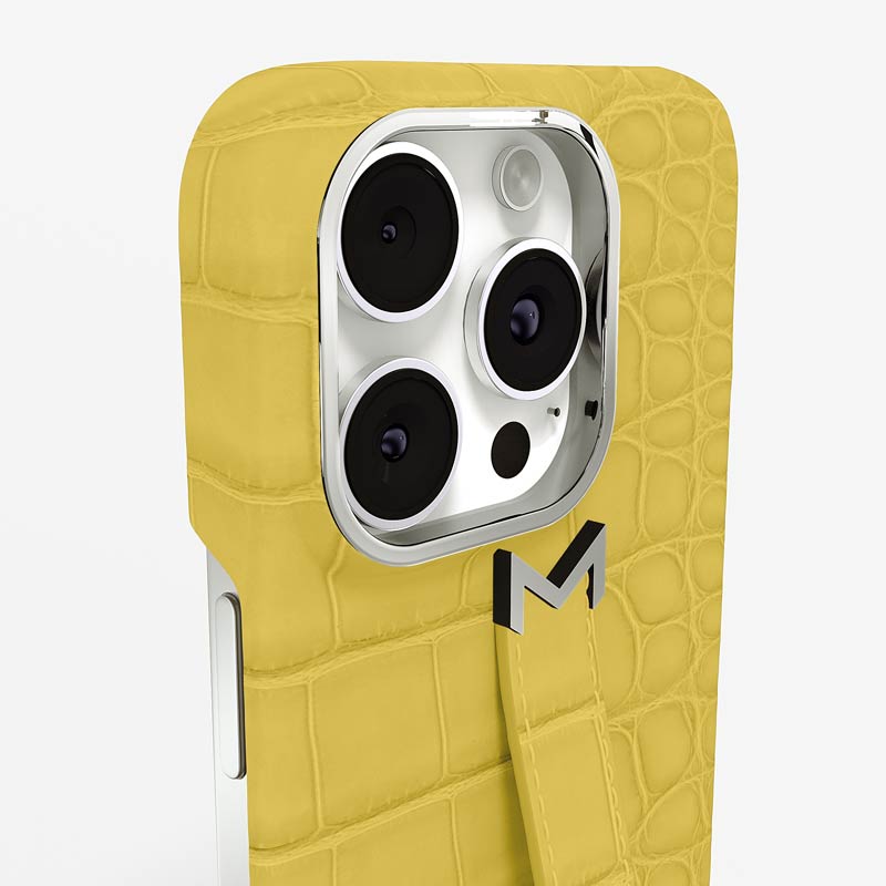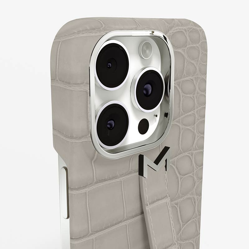 Exclusively made to order and entirely handcrafted, this iPhone 15 Pro Max case is sheathed in hand-selected, top-grade alligator leather — chosen for its rarity, texture, and unmistakable presence. Inside, a soft Alcantara lining cradles your device, preserving its flawless condition. The hand-polished 316L stainless steel logo and camera ring reflect a commitment to detail and craftsmanship rarely seen.