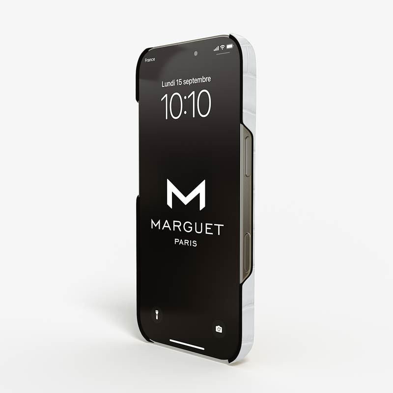 Exclusively made to order and entirely handcrafted, this iPhone 15 Pro Max case is sheathed in hand-selected, top-grade alligator leather — chosen for its rarity, texture, and unmistakable presence. Inside, a soft Alcantara lining cradles your device, preserving its flawless condition. The hand-polished 316L stainless steel logo and camera ring reflect a commitment to detail and craftsmanship rarely seen.