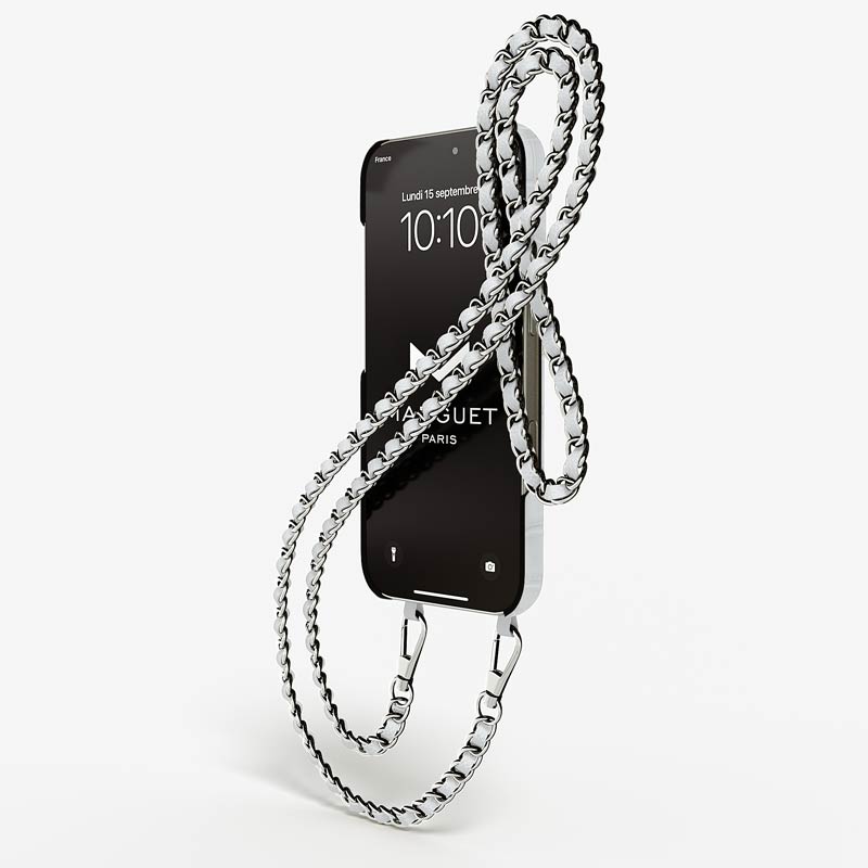 Exclusively made to order and entirely handcrafted, this iPhone 15 Pro Max case is sheathed in hand-selected, top-grade alligator leather — chosen for its rarity, texture, and unmistakable presence. Inside, a soft Alcantara lining cradles your device, preserving its flawless condition. The hand-polished 316L stainless steel logo and leather-interlaced metal chain reflect a commitment to detail and craftsmanship rarely seen.