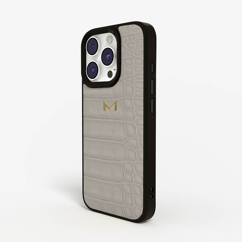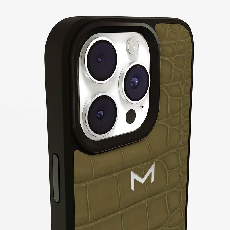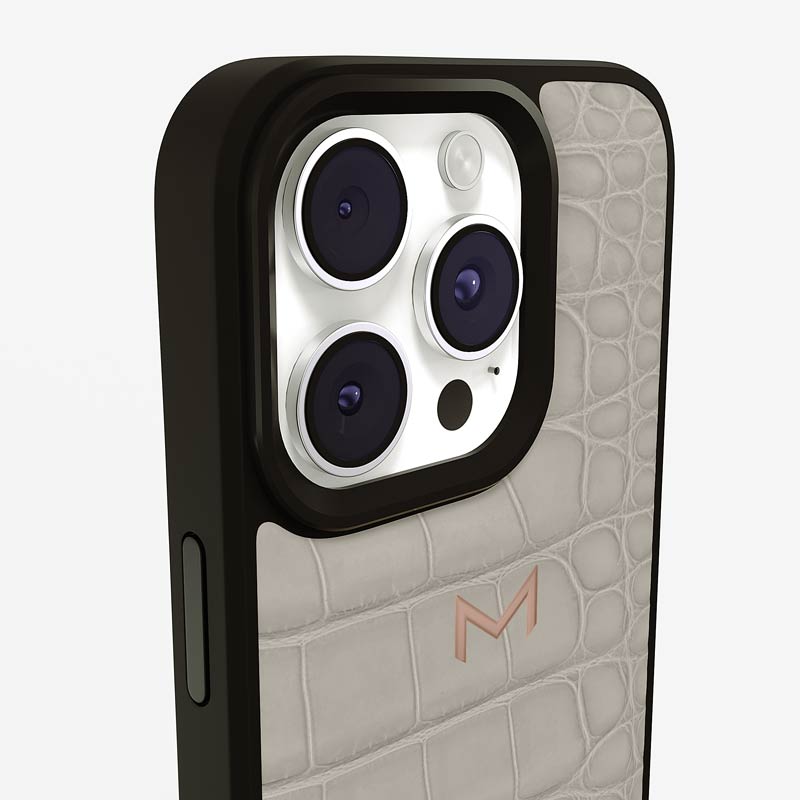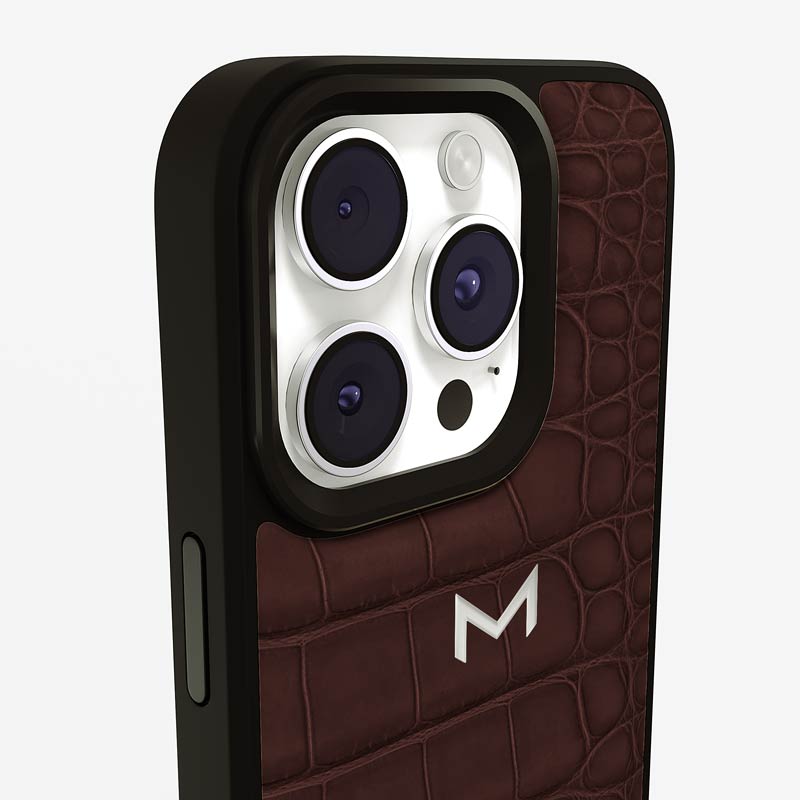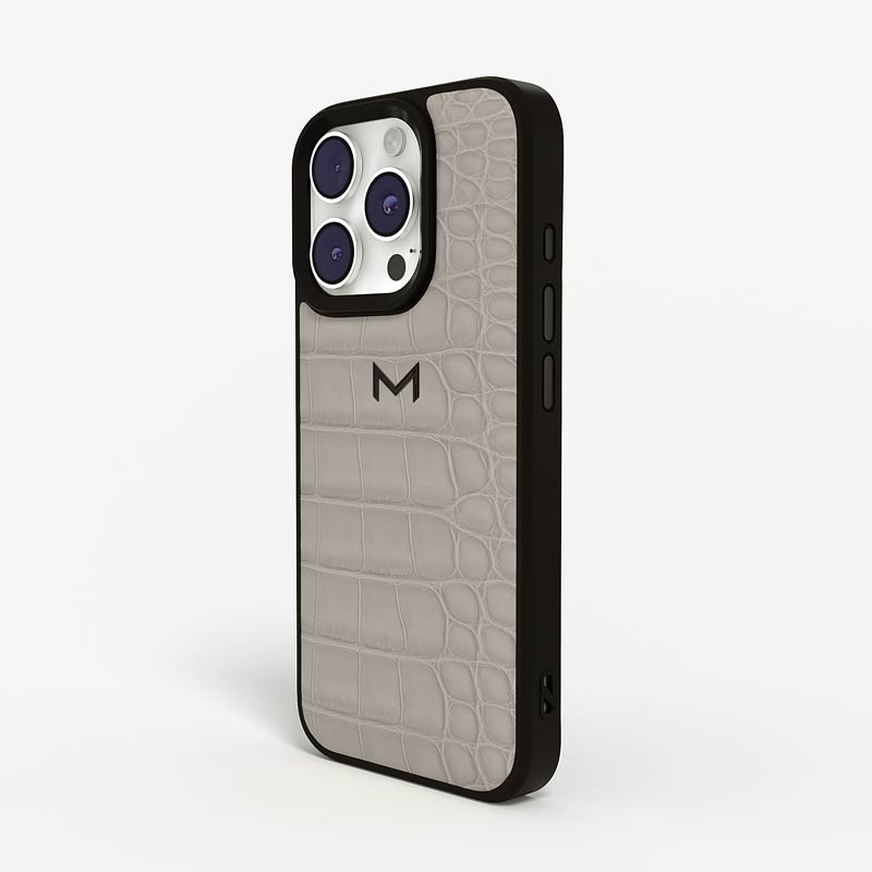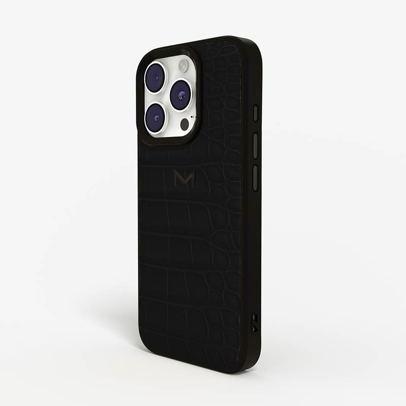 Exclusively made to order and entirely handcrafted, this iPhone 15 Pro Max case is sheathed in hand-selected, top-grade alligator leather — chosen for its rarity, texture, and unmistakable presence. Inside, a soft Alcantara lining cradles your device, preserving its flawless condition. The hand-polished 316L stainless steel logo and camera ring reflect a commitment to detail and craftsmanship rarely seen.