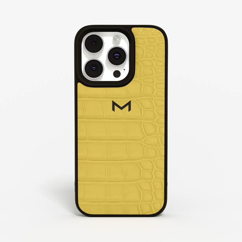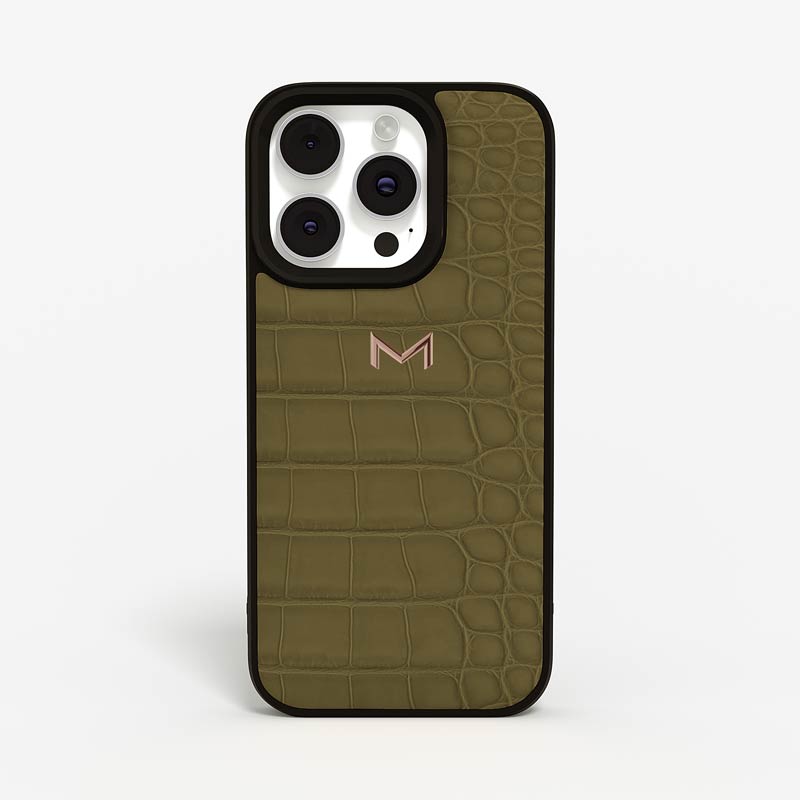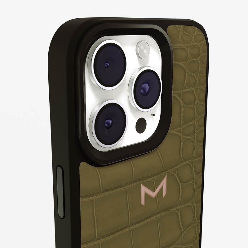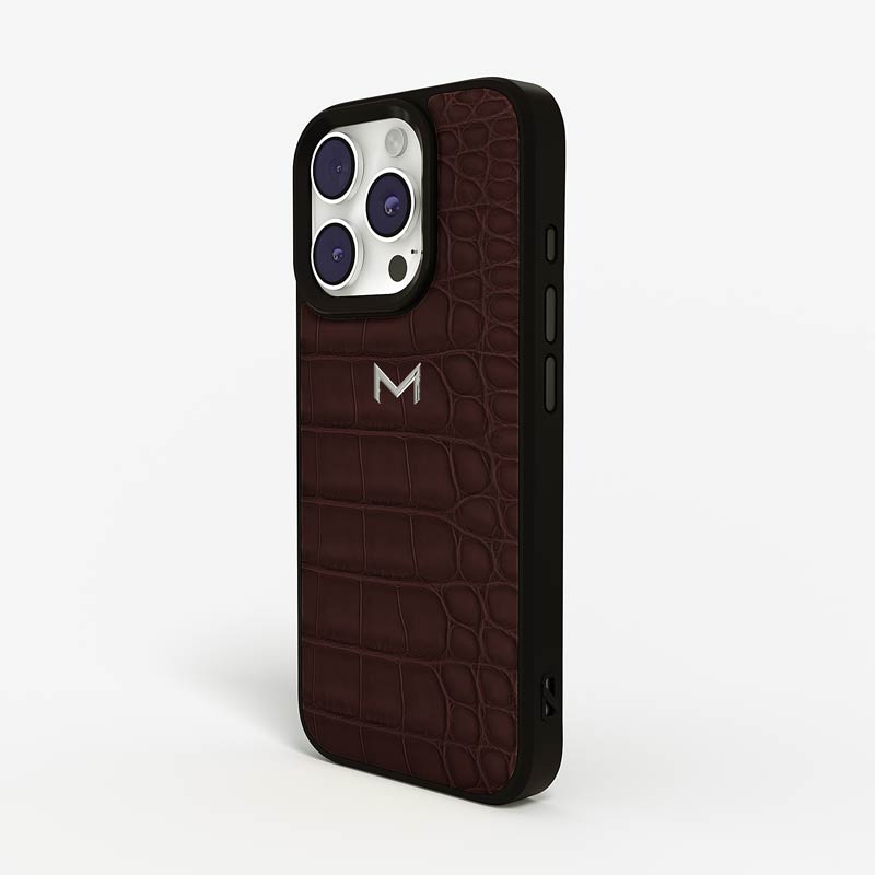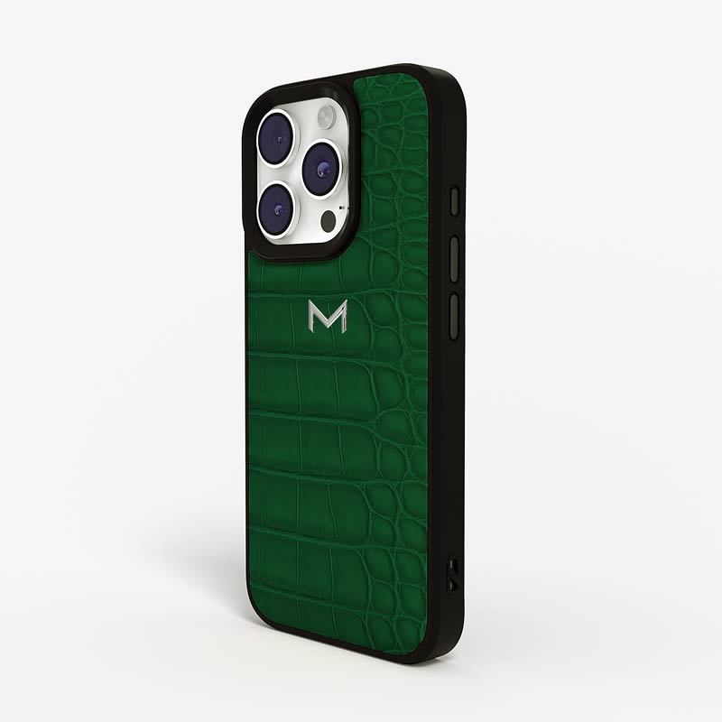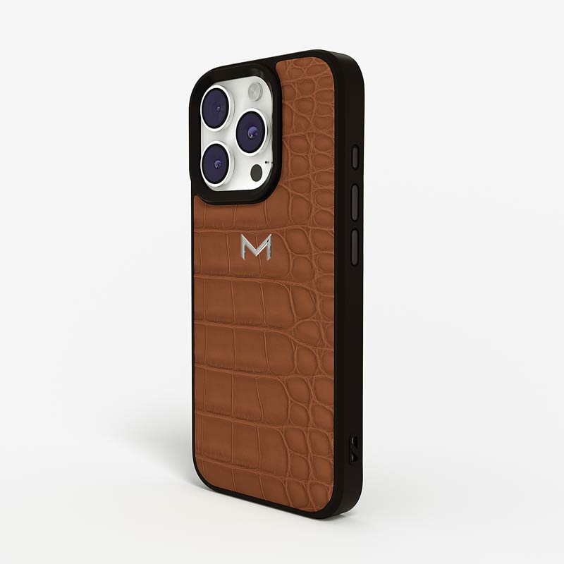 Exclusively made to order and entirely handcrafted, this iPhone 15 Pro Max case is sheathed in hand-selected, top-grade alligator leather — chosen for its rarity, texture, and unmistakable presence. Inside, a soft Alcantara lining cradles your device, preserving its flawless condition. The hand-polished 316L stainless steel logo and camera ring reflect a commitment to detail and craftsmanship rarely seen.