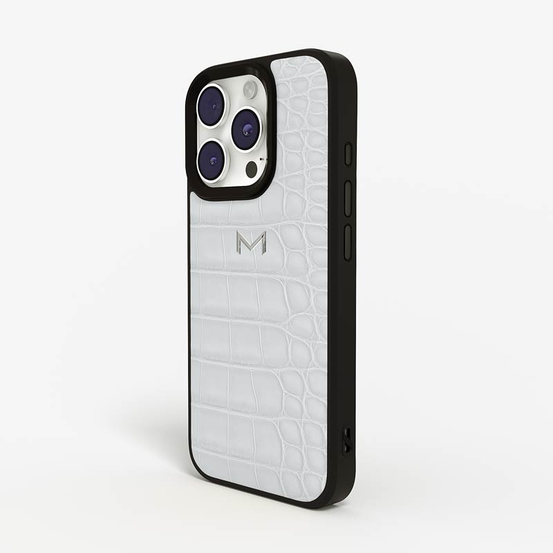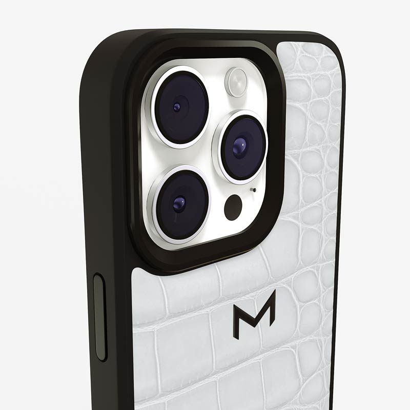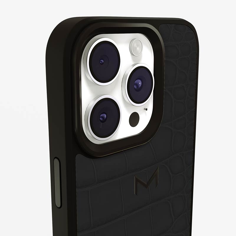 Exclusively made to order and entirely handcrafted, this iPhone 15 Pro Max case is sheathed in hand-selected, top-grade alligator leather — chosen for its rarity, texture, and unmistakable presence. Inside, a soft Alcantara lining cradles your device, preserving its flawless condition. The hand-polished 316L stainless steel logo and camera ring reflect a commitment to detail and craftsmanship rarely seen.
