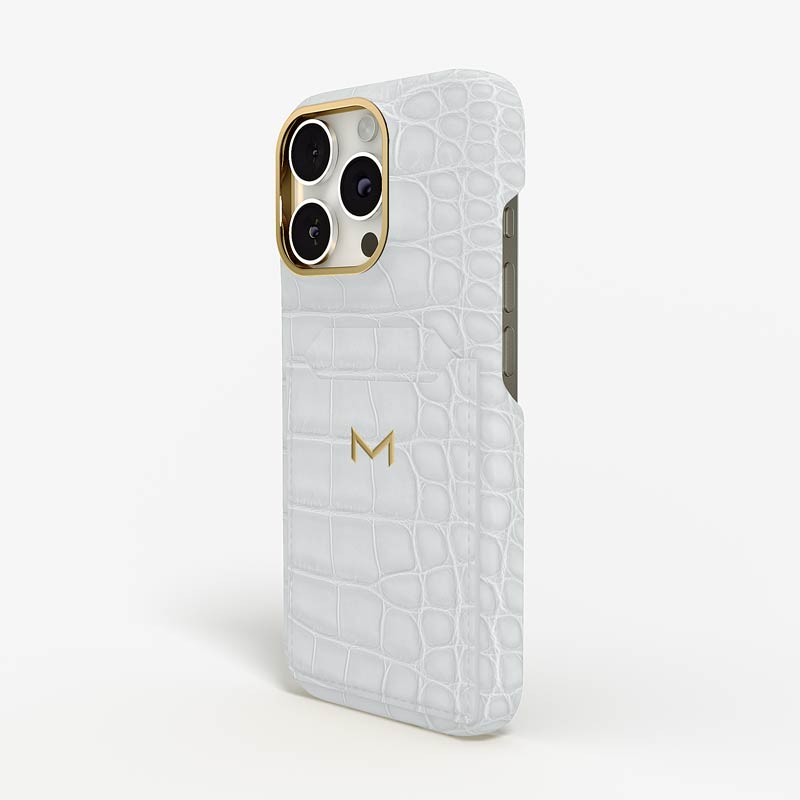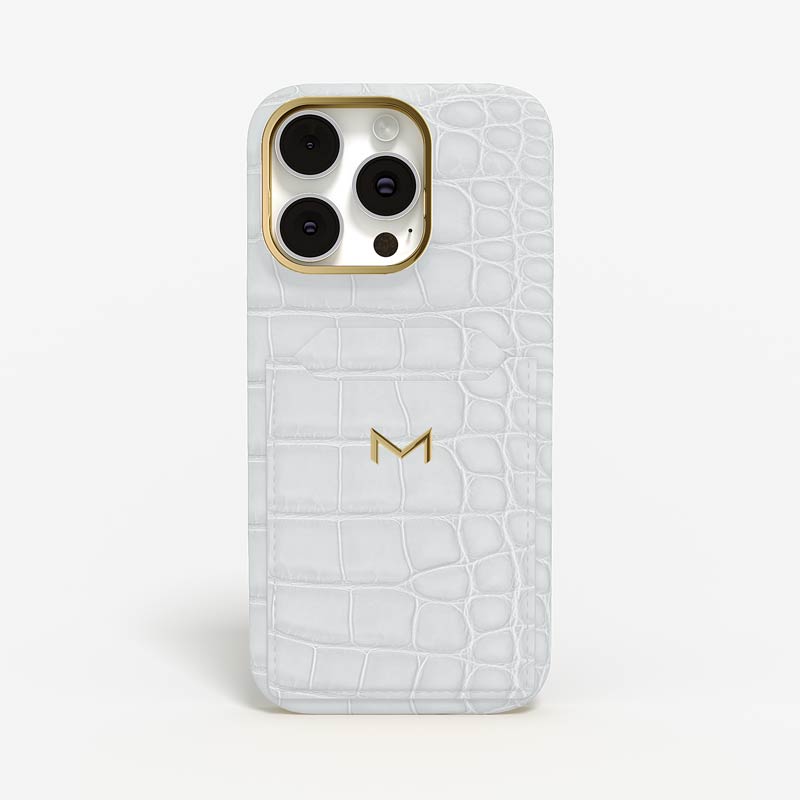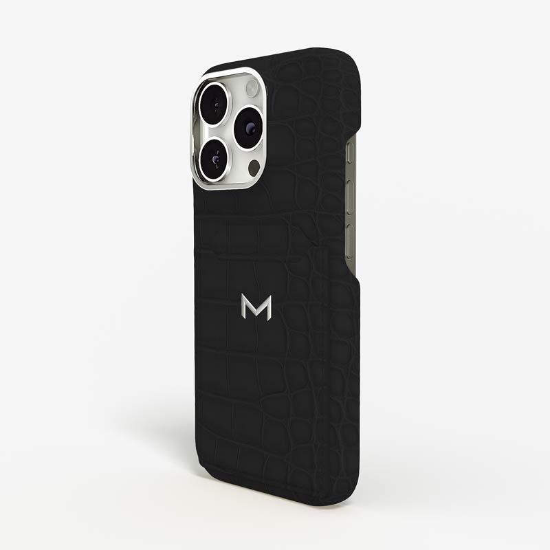 Exclusively made to order and entirely handcrafted, this iPhone 16 Pro case is sheathed in hand-selected, top-grade alligator leather — chosen for its rarity, texture, and unmistakable presence. Inside, a soft Alcantara lining cradles your device, preserving its flawless condition. The hand-polished 316L stainless steel logo and camera ring reflect a commitment to detail and craftsmanship rarely seen.