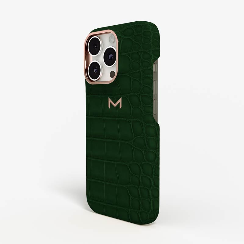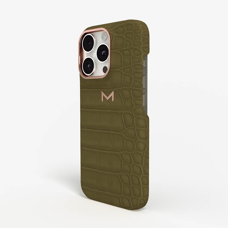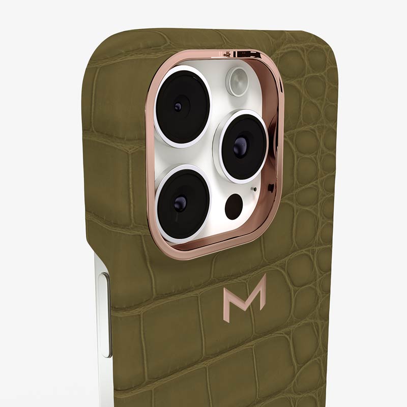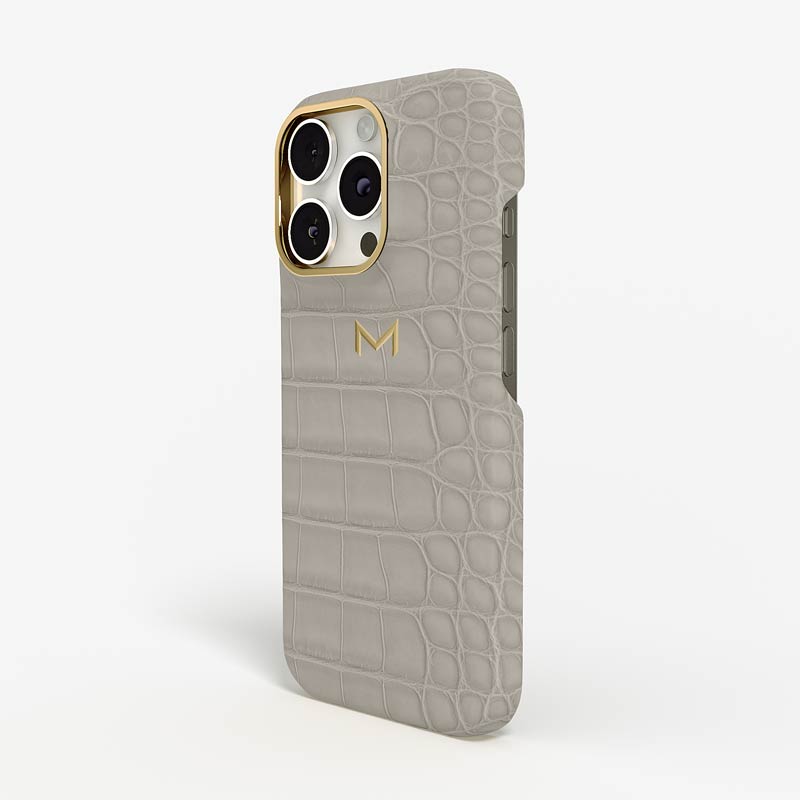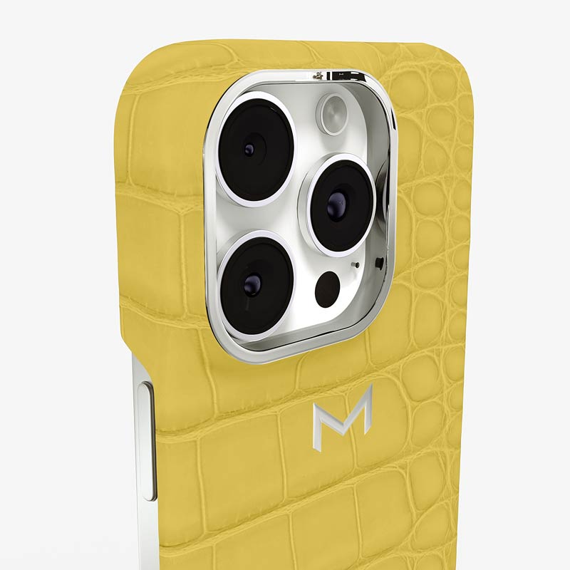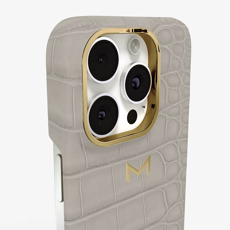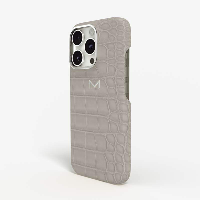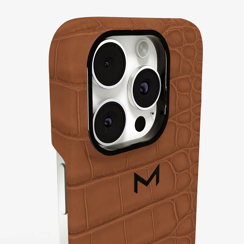 Exclusively made to order and entirely handcrafted, this iPhone 16 Pro case is sheathed in hand-selected, top-grade alligator leather — chosen for its rarity, texture, and unmistakable presence. Inside, a soft Alcantara lining cradles your device, preserving its flawless condition. The hand-polished 316L stainless steel logo and camera ring reflect a commitment to detail and craftsmanship rarely seen.