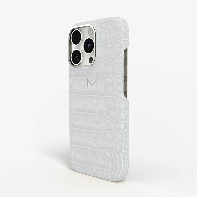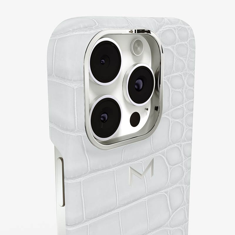 Exclusively made to order and entirely handcrafted, this iPhone 16 Pro case is sheathed in hand-selected, top-grade alligator leather — chosen for its rarity, texture, and unmistakable presence. Inside, a soft Alcantara lining cradles your device, preserving its flawless condition. The hand-polished 316L stainless steel logo and camera ring reflect a commitment to detail and craftsmanship rarely seen.