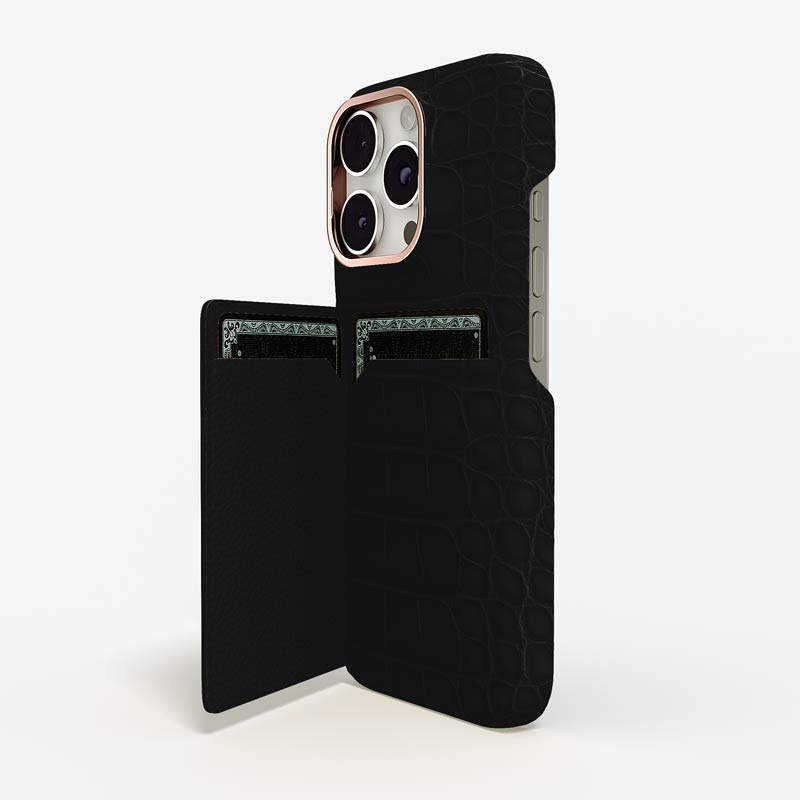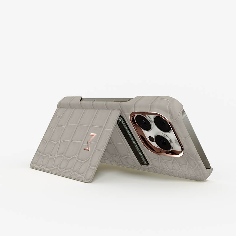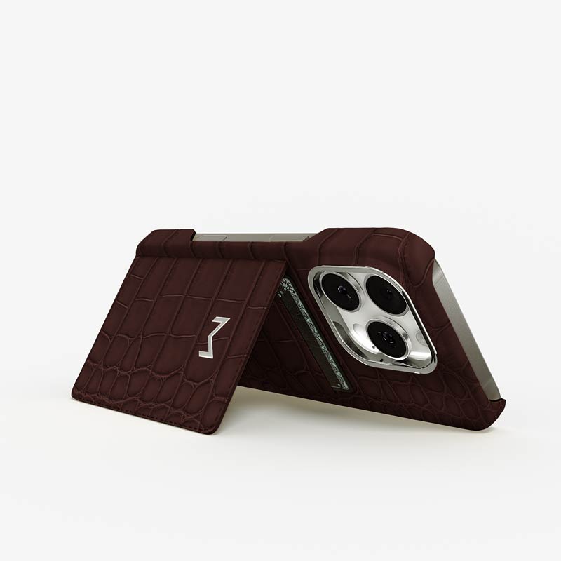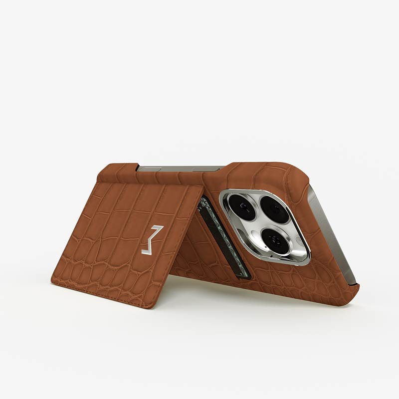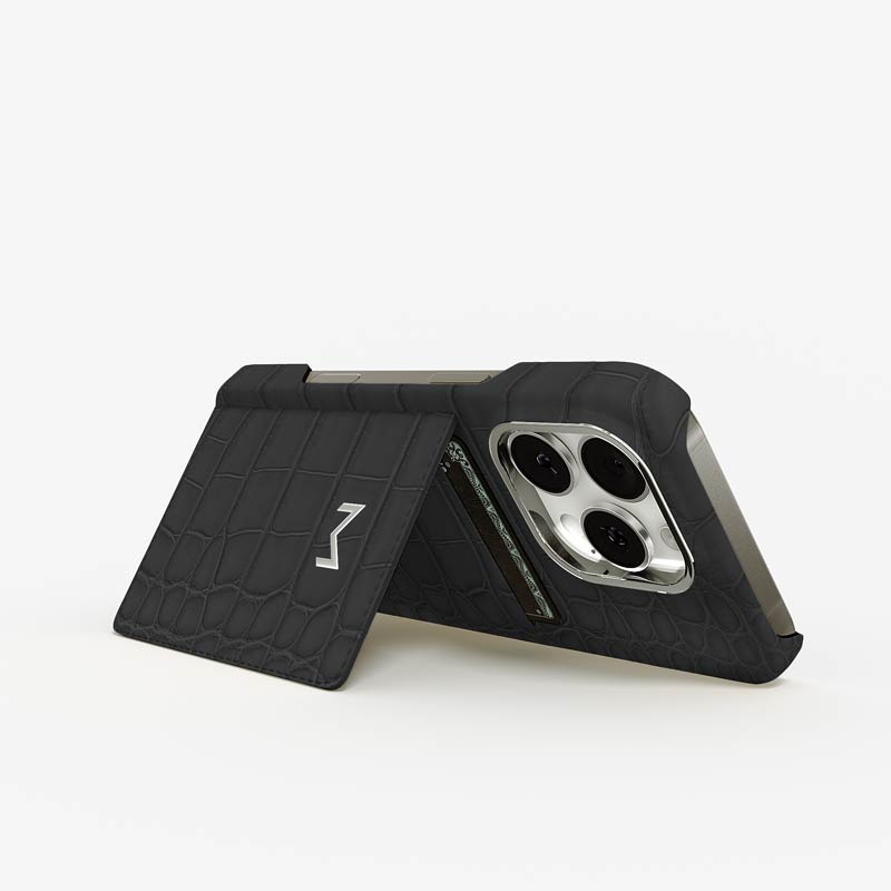 Exclusively made to order and entirely handcrafted, this iPhone 16 Pro case is sheathed in hand-selected, top-grade alligator leather — chosen for its rarity, texture, and unmistakable presence. Inside, a soft Alcantara lining cradles your device, preserving its flawless condition. The hand-polished 316L stainless steel logo and camera ring reflect a commitment to detail and craftsmanship rarely seen.