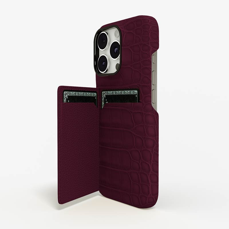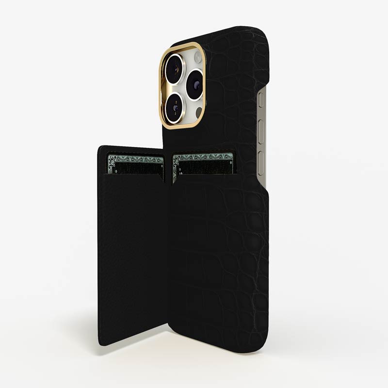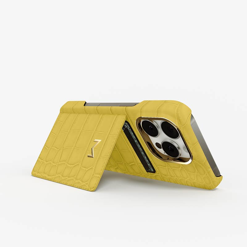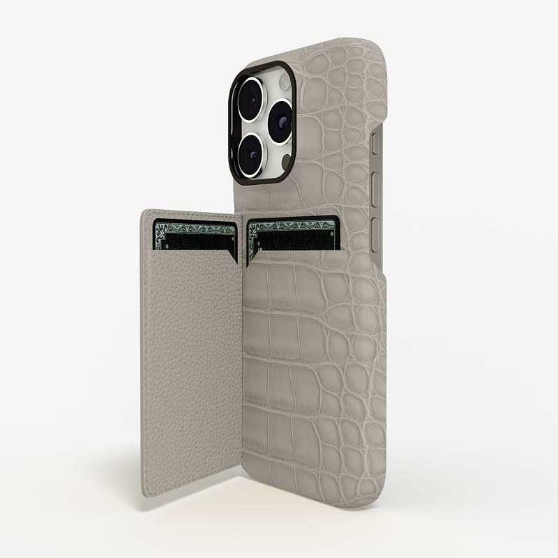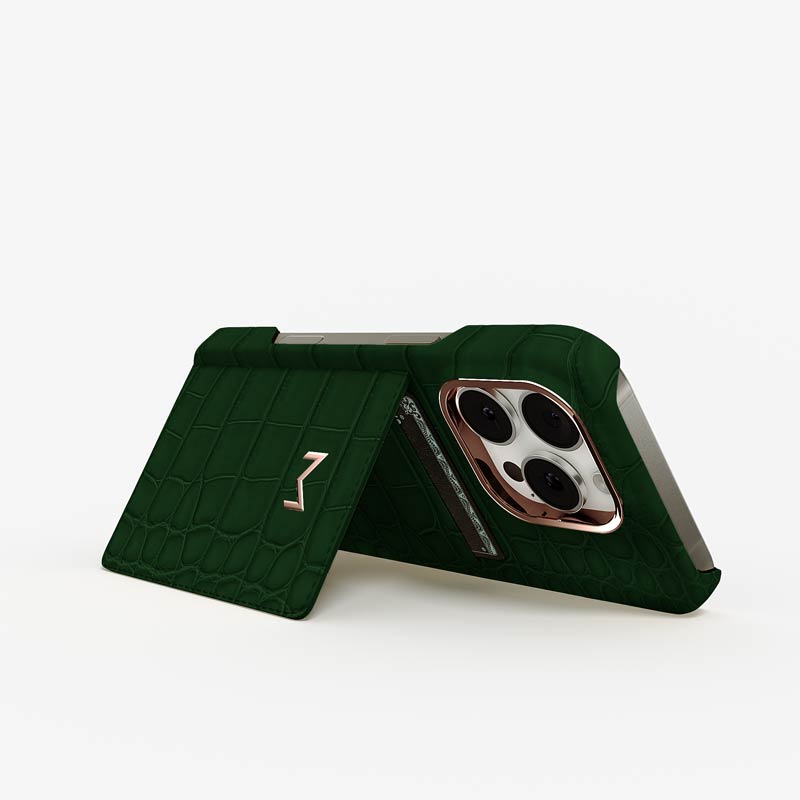 Exclusively made to order and entirely handcrafted, this iPhone 16 Pro case is sheathed in hand-selected, top-grade alligator leather — chosen for its rarity, texture, and unmistakable presence. Inside, a soft Alcantara lining cradles your device, preserving its flawless condition. The hand-polished 316L stainless steel logo and camera ring reflect a commitment to detail and craftsmanship rarely seen.