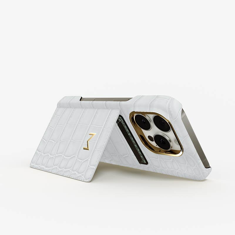 Exclusively made to order and entirely handcrafted, this iPhone 16 Pro case is sheathed in hand-selected, top-grade alligator leather — chosen for its rarity, texture, and unmistakable presence. Inside, a soft Alcantara lining cradles your device, preserving its flawless condition. The hand-polished 316L stainless steel logo and camera ring reflect a commitment to detail and craftsmanship rarely seen.