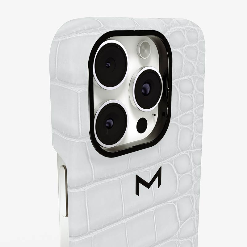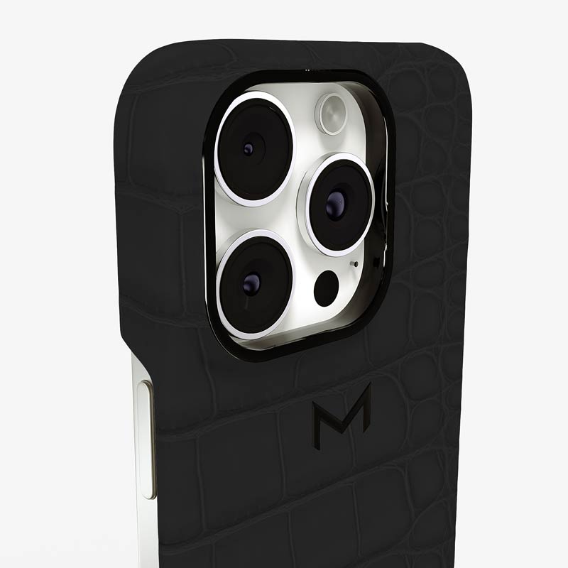Exclusively made to order and entirely handcrafted, this iPhone 16 Pro Max case is sheathed in hand-selected, top-grade alligator leather — chosen for its rarity, texture, and unmistakable presence. Inside, a soft Alcantara lining cradles your device, preserving its flawless condition. The hand-polished 316L stainless steel logo and camera ring reflect a commitment to detail and craftsmanship rarely seen.