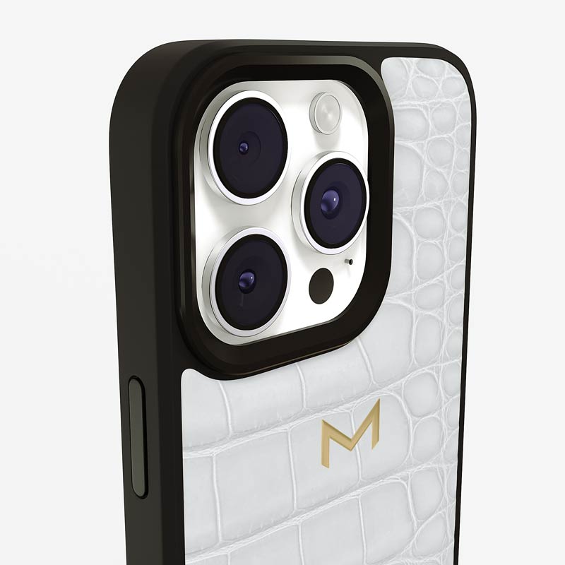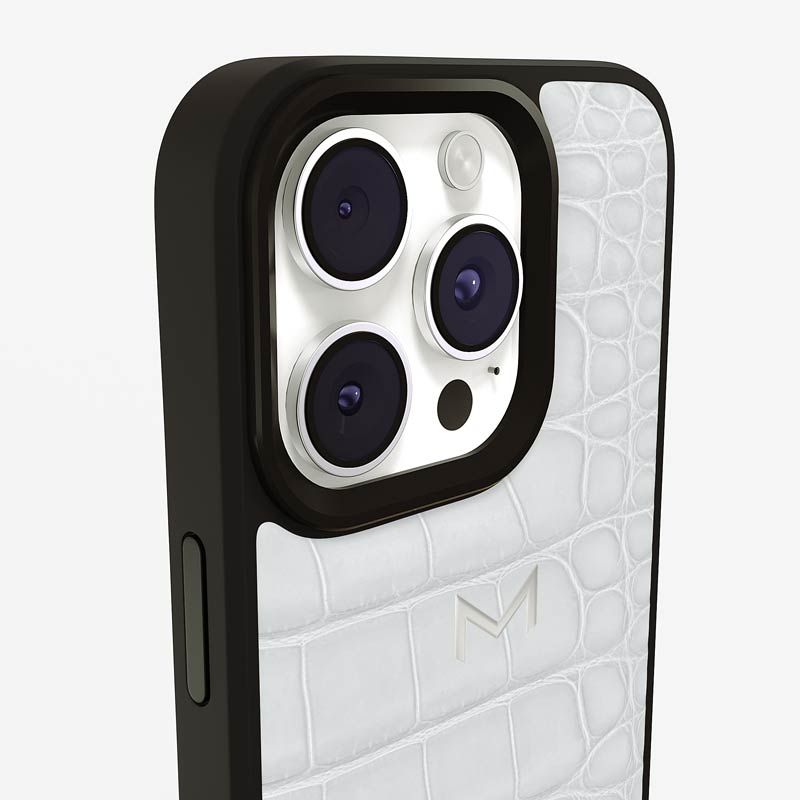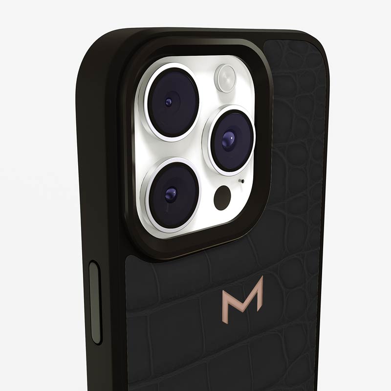Exclusively made to order and entirely handcrafted, this iPhone 16 Pro Max case is sheathed in hand-selected, top-grade alligator leather — chosen for its rarity, texture, and unmistakable presence. Inside, a soft Alcantara lining cradles your device, preserving its flawless condition. The hand-polished 316L stainless steel logo and camera ring reflect a commitment to detail and craftsmanship rarely seen.