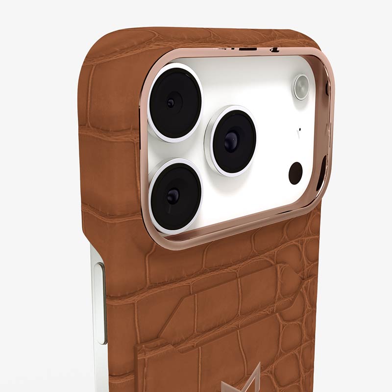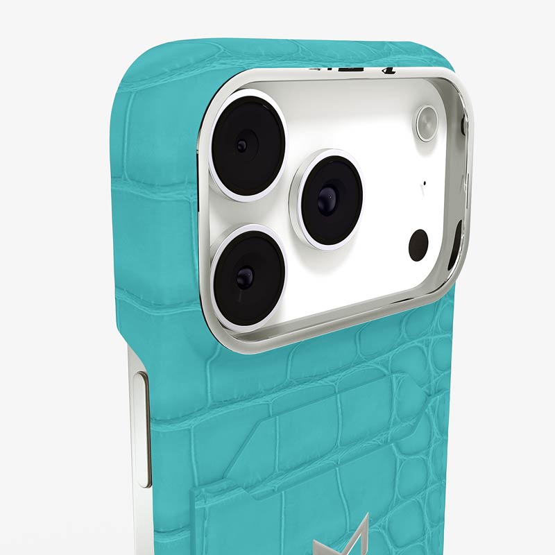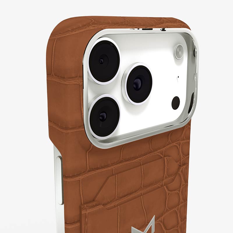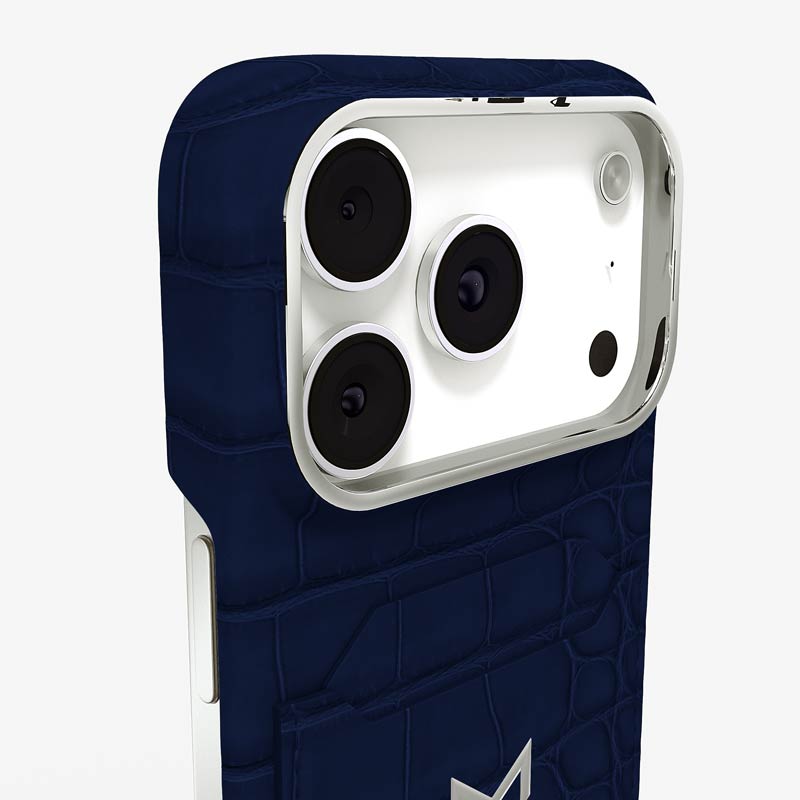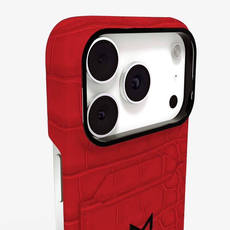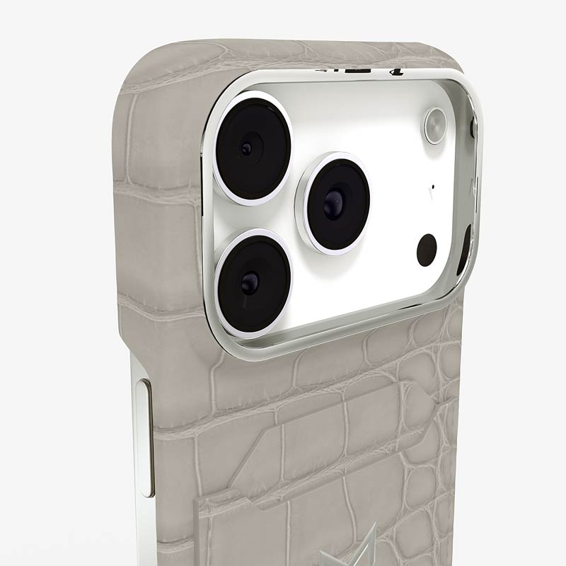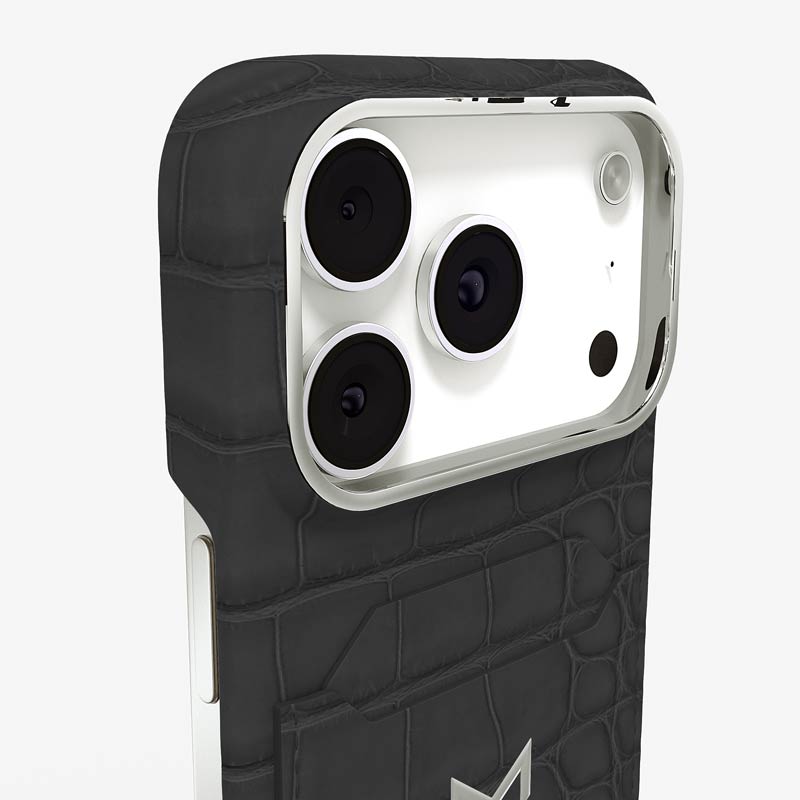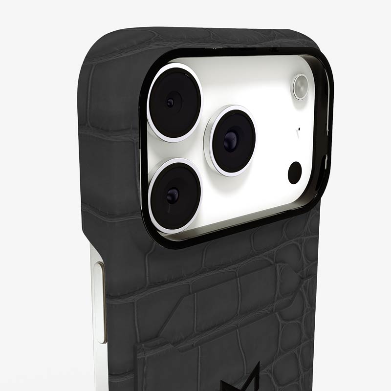 Exclusively made to order and entirely handcrafted, this iPhone 17 Pro case is sheathed in hand-selected, top-grade alligator leather — chosen for its rarity, texture, and unmistakable presence. Inside, a soft Alcantara lining cradles your device, preserving its flawless condition. The hand-polished 316L stainless steel logo and camera ring reflect a commitment to detail and craftsmanship rarely seen.
