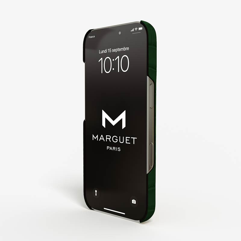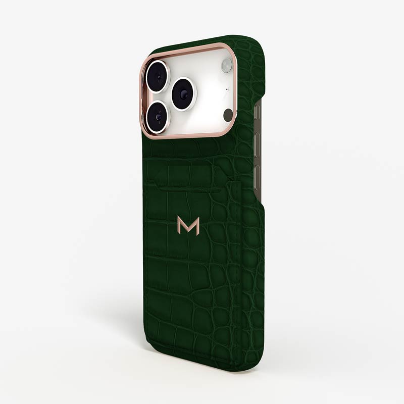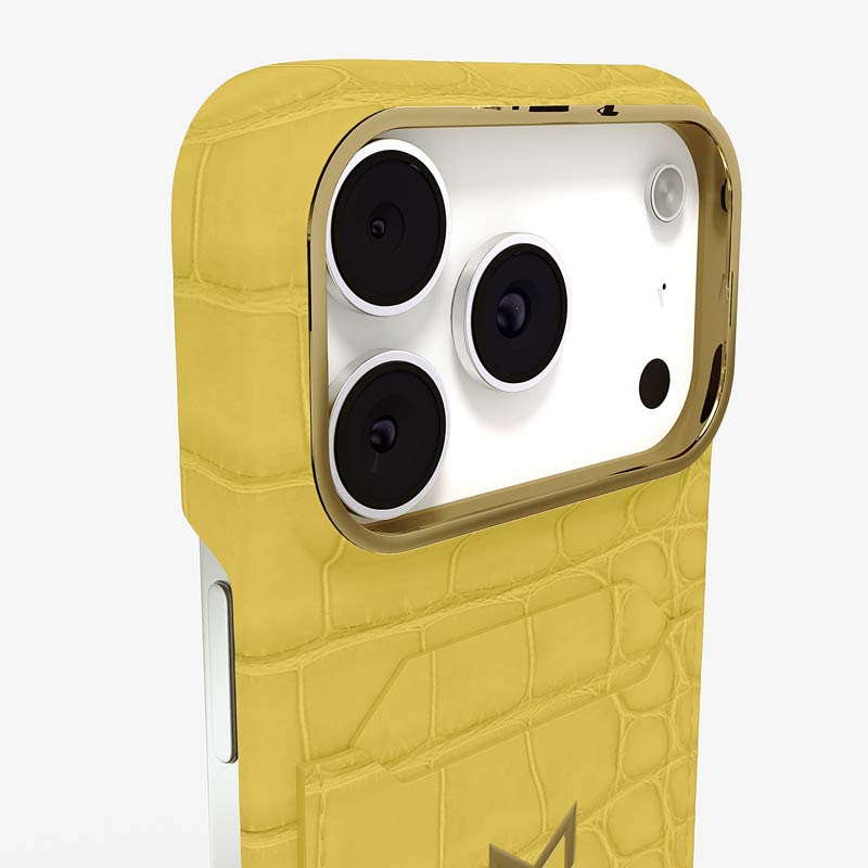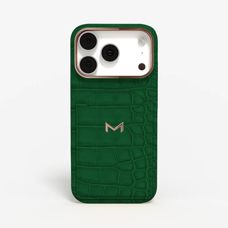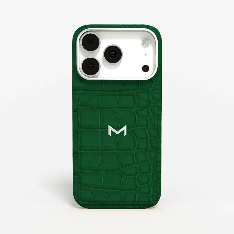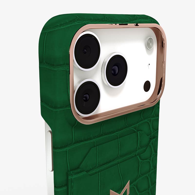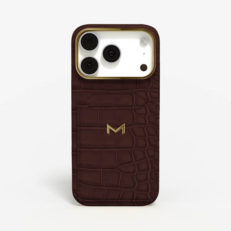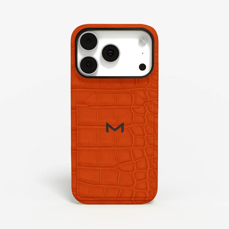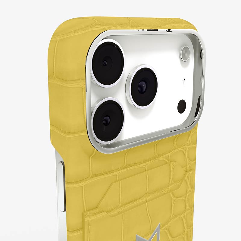 Exclusively made to order and entirely handcrafted, this iPhone 17 Pro case is sheathed in hand-selected, top-grade alligator leather — chosen for its rarity, texture, and unmistakable presence. Inside, a soft Alcantara lining cradles your device, preserving its flawless condition. The hand-polished 316L stainless steel logo and camera ring reflect a commitment to detail and craftsmanship rarely seen.