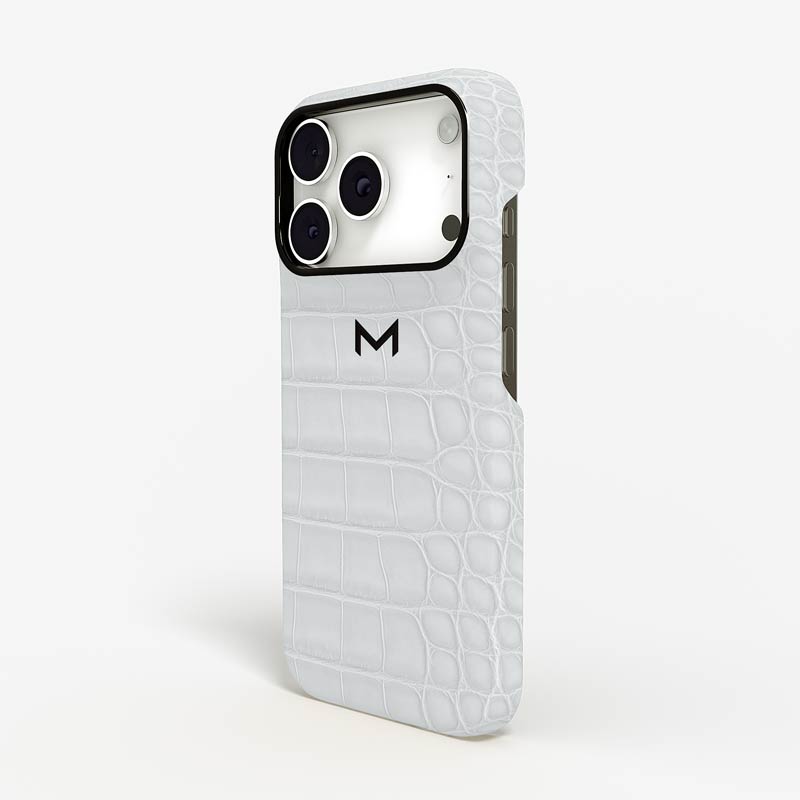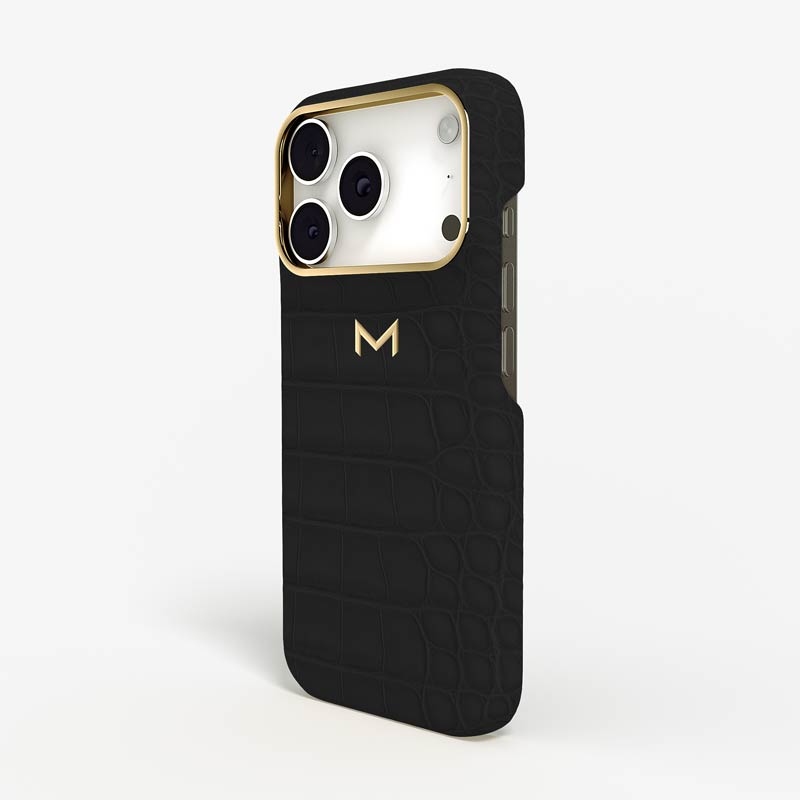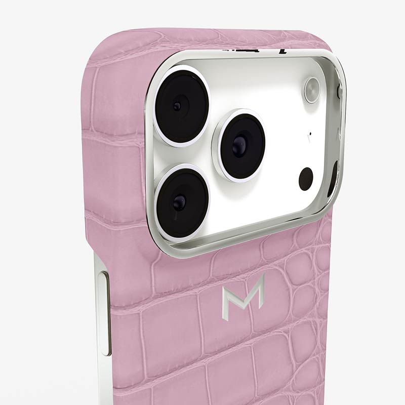 Exclusively made to order and entirely handcrafted, this iPhone 17 Pro case is sheathed in hand-selected, top-grade alligator leather — chosen for its rarity, texture, and unmistakable presence. Inside, a soft Alcantara lining cradles your device, preserving its flawless condition. The hand-polished 316L stainless steel logo and camera ring reflect a commitment to detail and craftsmanship rarely seen.