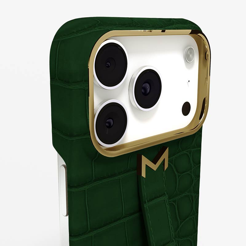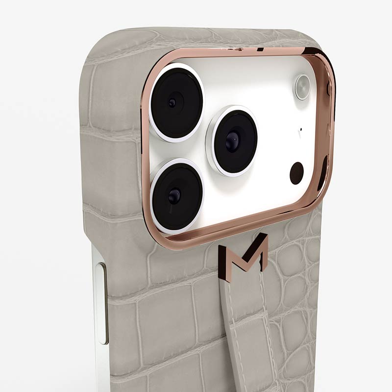Exclusively made to order and entirely handcrafted, this iPhone 17 Pro case is sheathed in hand-selected, top-grade alligator leather — chosen for its rarity, texture, and unmistakable presence. Inside, a soft Alcantara lining cradles your device, preserving its flawless condition. The hand-polished 316L stainless steel logo and camera ring reflect a commitment to detail and craftsmanship rarely seen.