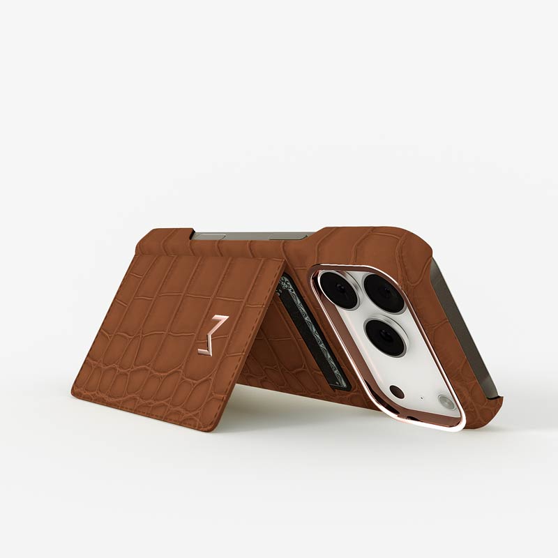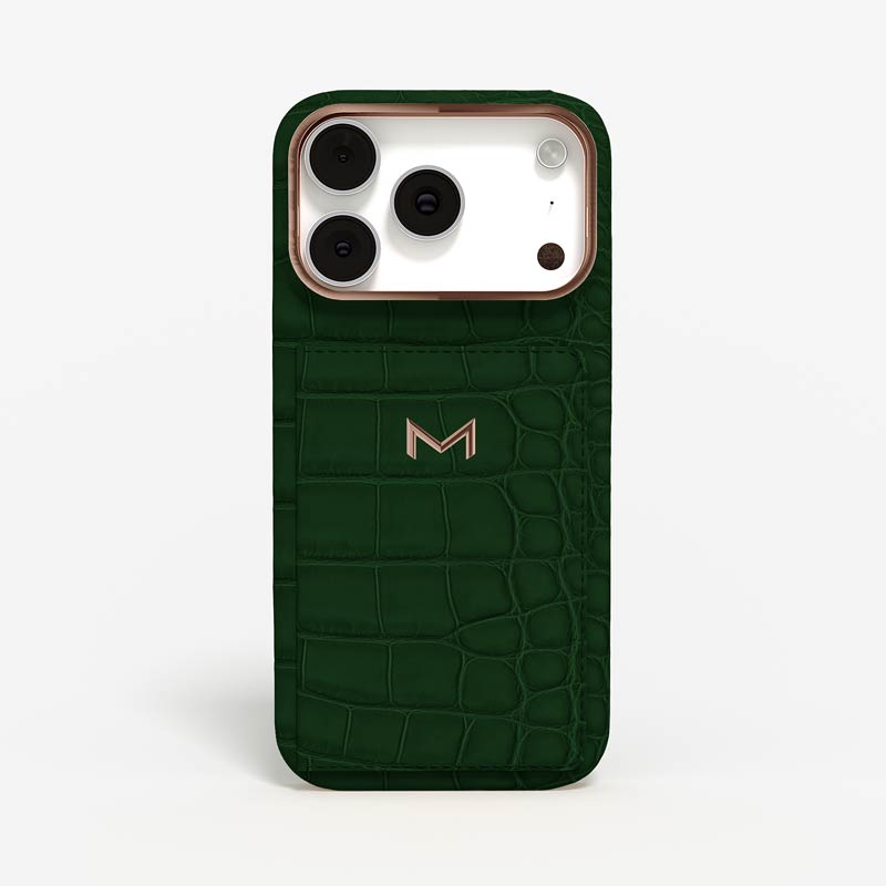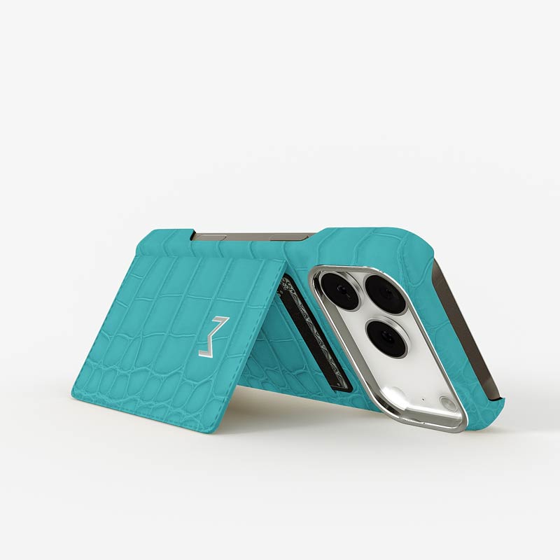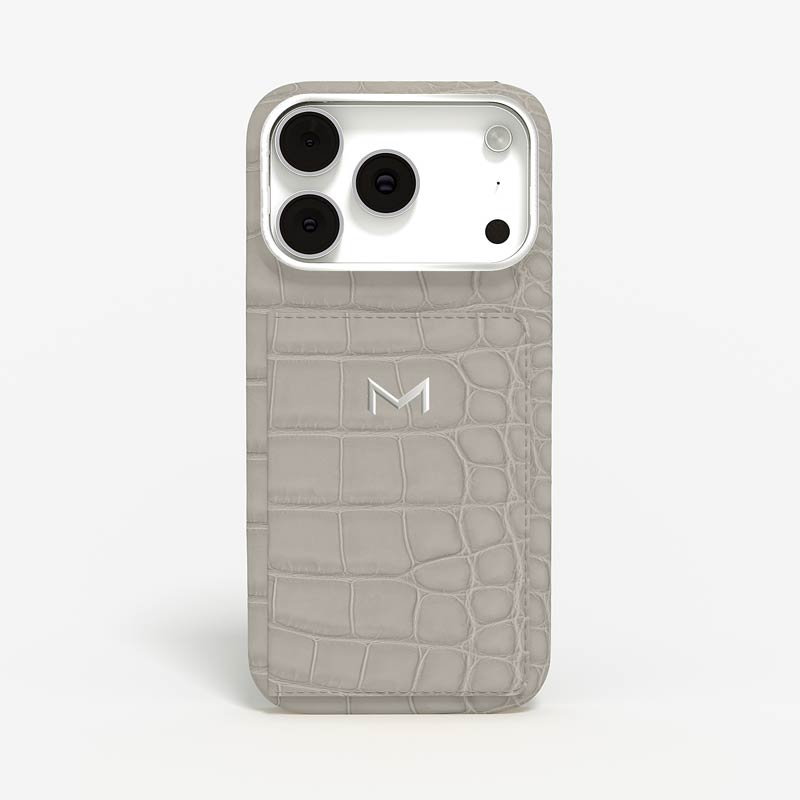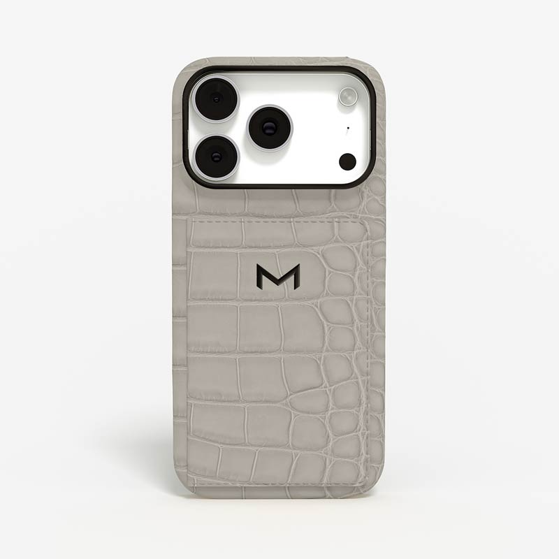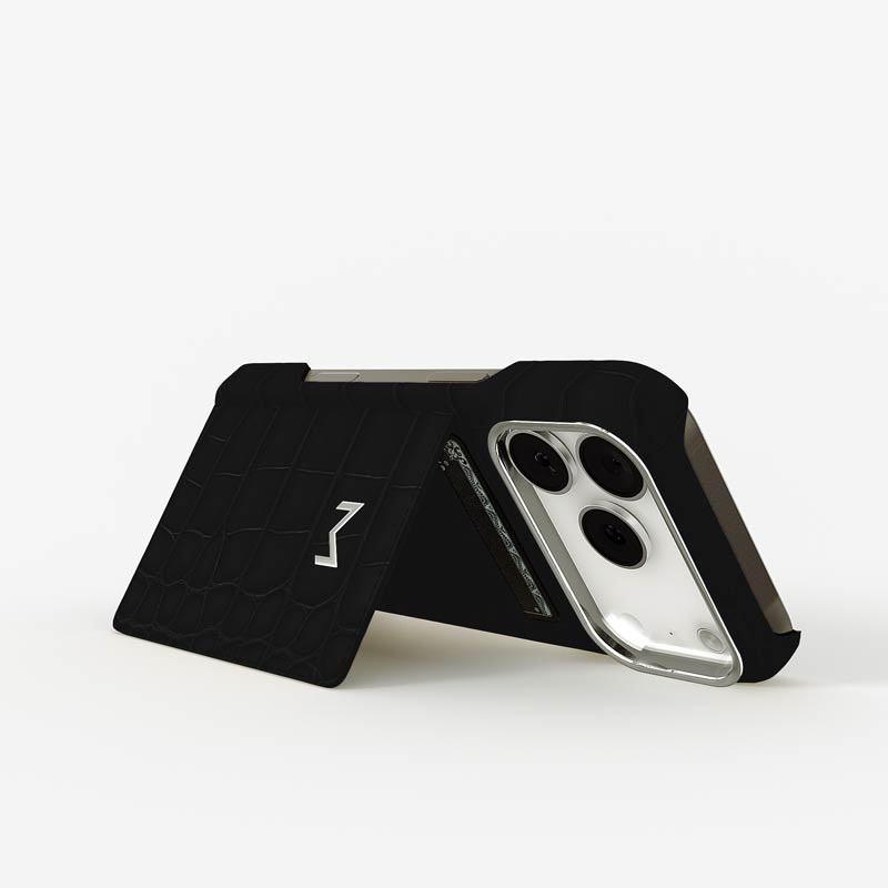 Exclusively made to order and entirely handcrafted, this iPhone 17 Pro case is sheathed in hand-selected, top-grade alligator leather — chosen for its rarity, texture, and unmistakable presence. Inside, a soft Alcantara lining cradles your device, preserving its flawless condition. The hand-polished 316L stainless steel logo and camera ring reflect a commitment to detail and craftsmanship rarely seen.