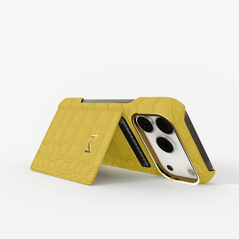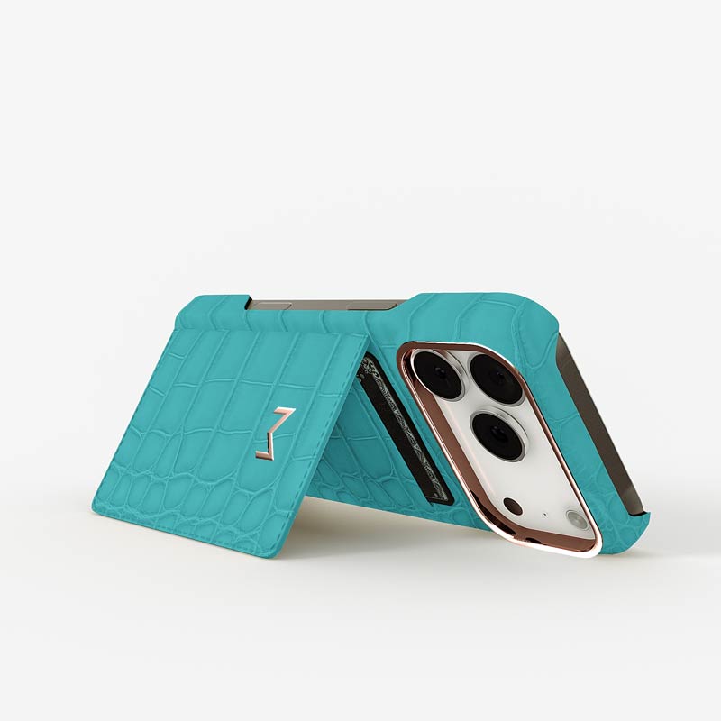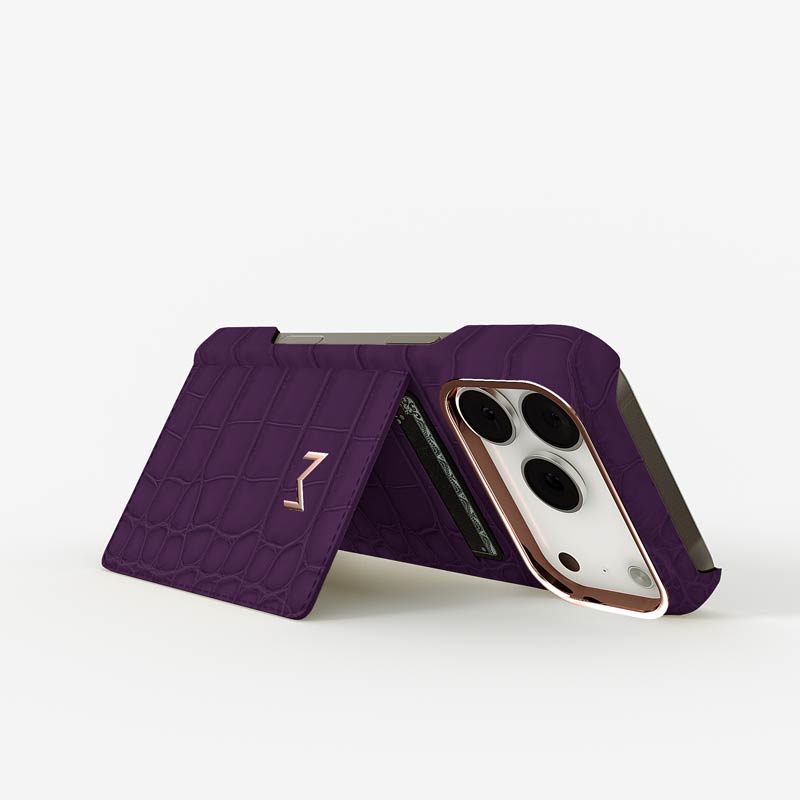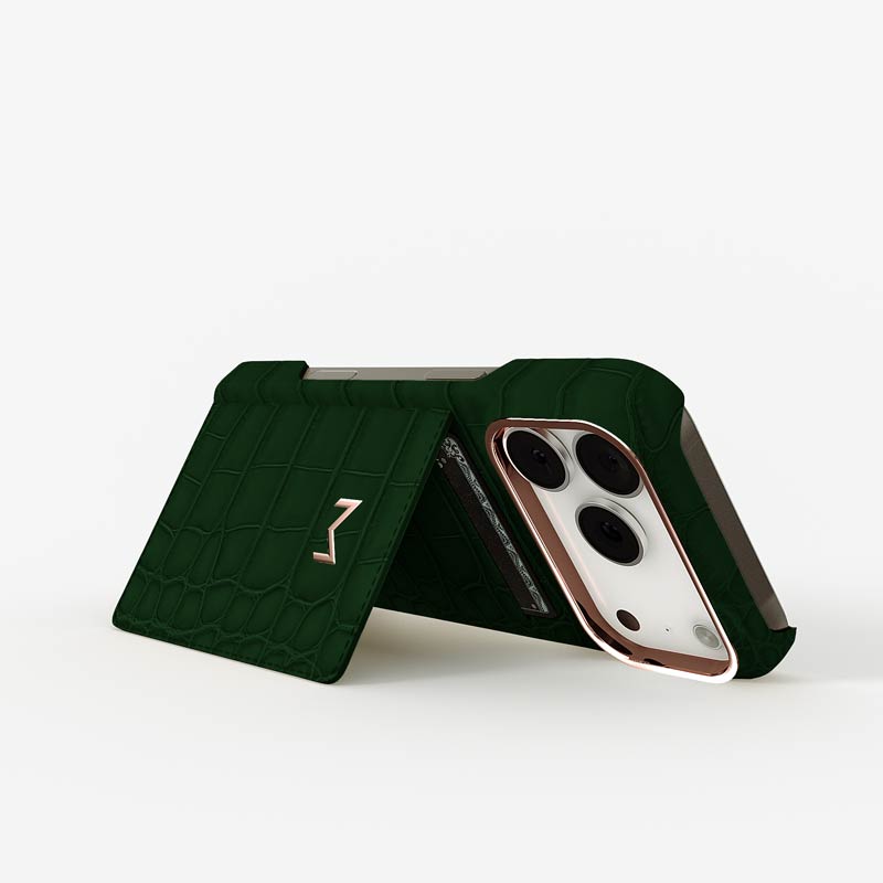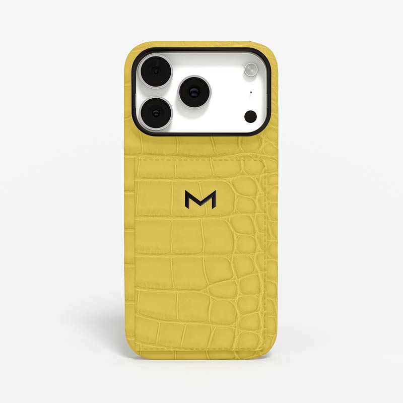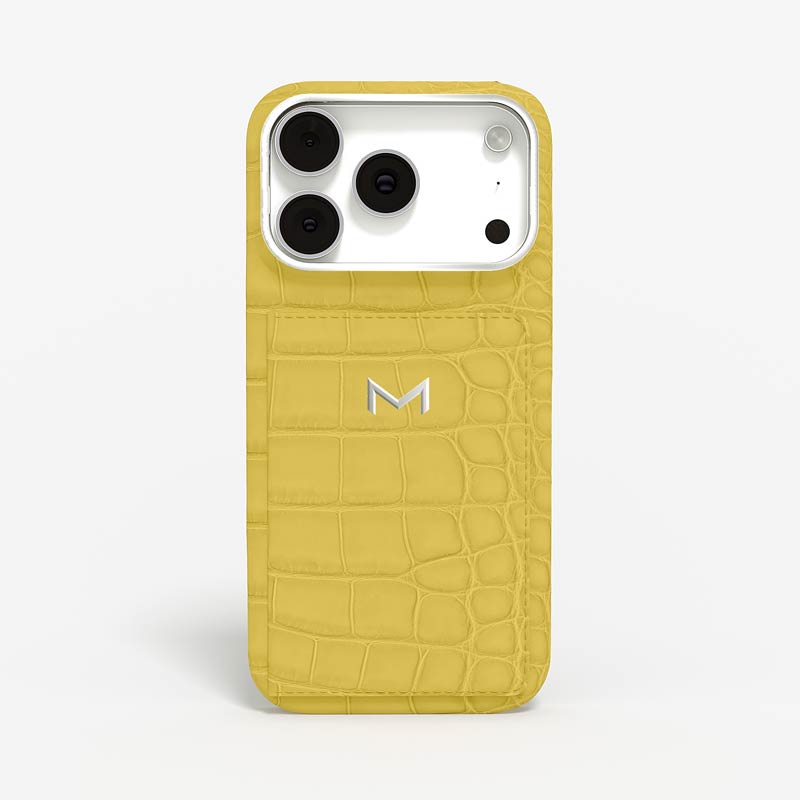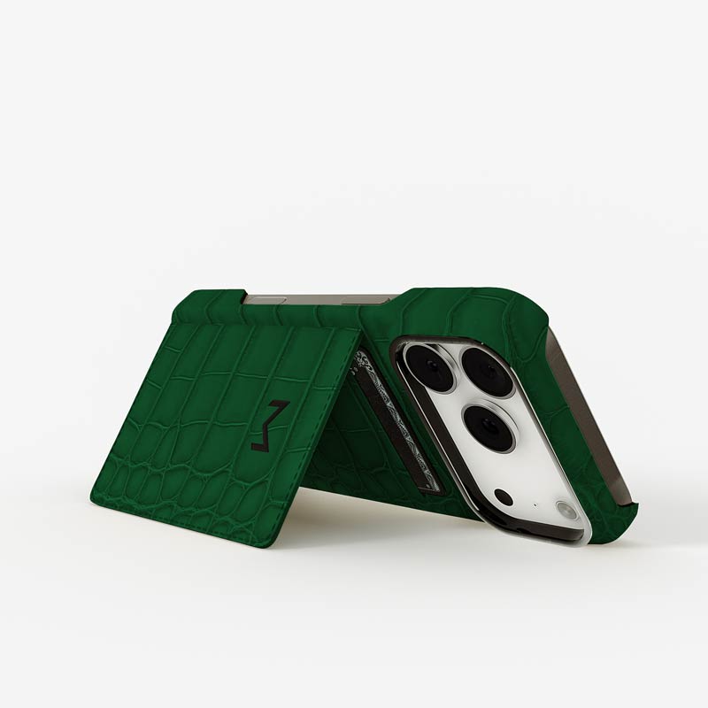 Exclusively made to order and entirely handcrafted, this iPhone 17 Pro case is sheathed in hand-selected, top-grade alligator leather — chosen for its rarity, texture, and unmistakable presence. Inside, a soft Alcantara lining cradles your device, preserving its flawless condition. The hand-polished 316L stainless steel logo and camera ring reflect a commitment to detail and craftsmanship rarely seen.