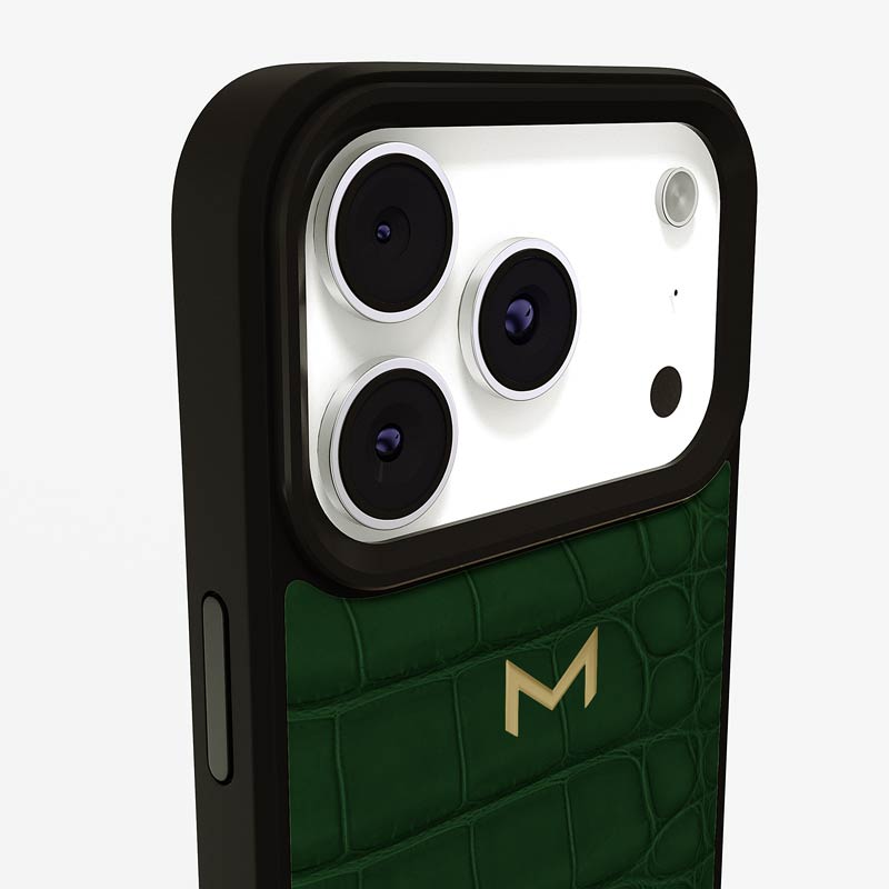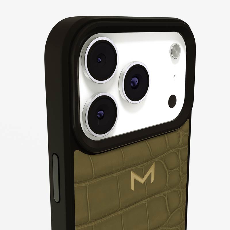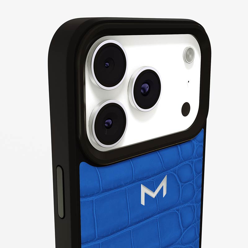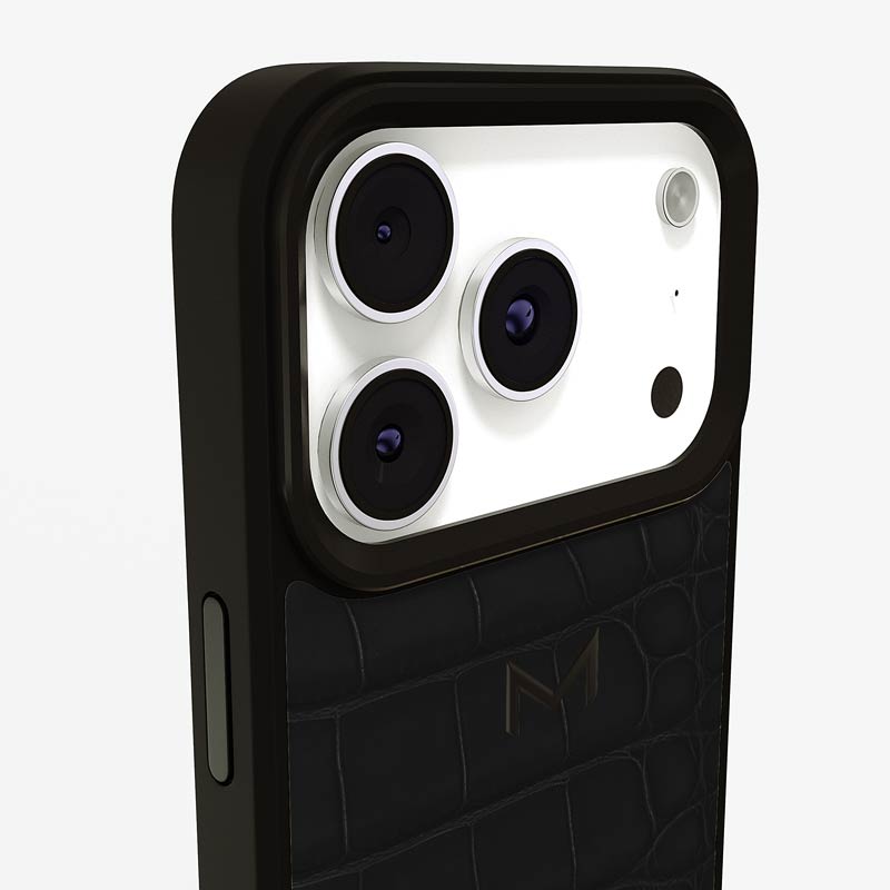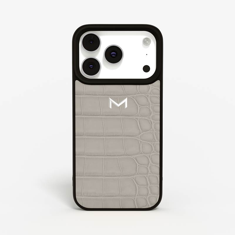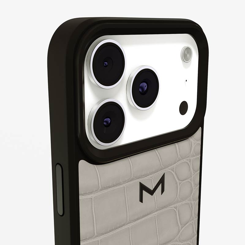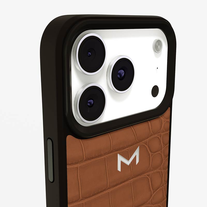 Exclusively made to order and entirely handcrafted, this iPhone 17 Pro Max case is sheathed in hand-selected, top-grade alligator leather — chosen for its rarity, texture, and unmistakable presence. Inside, a soft Alcantara lining cradles your device, preserving its flawless condition. The hand-polished 316L stainless steel logo and camera ring reflect a commitment to detail and craftsmanship rarely seen.
