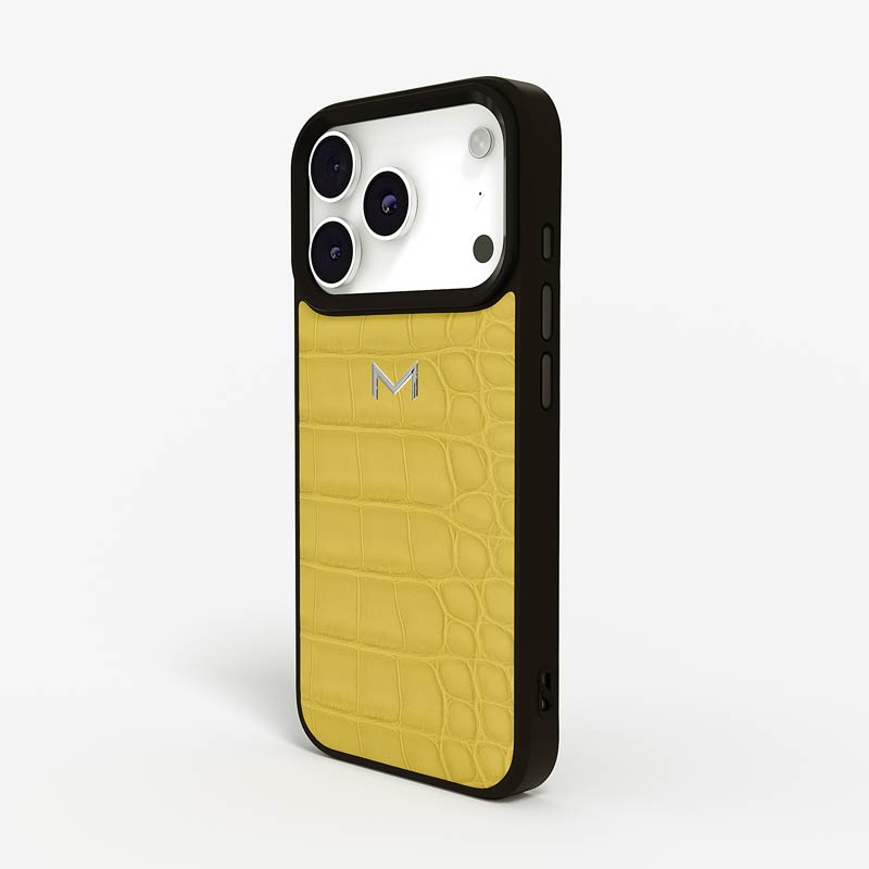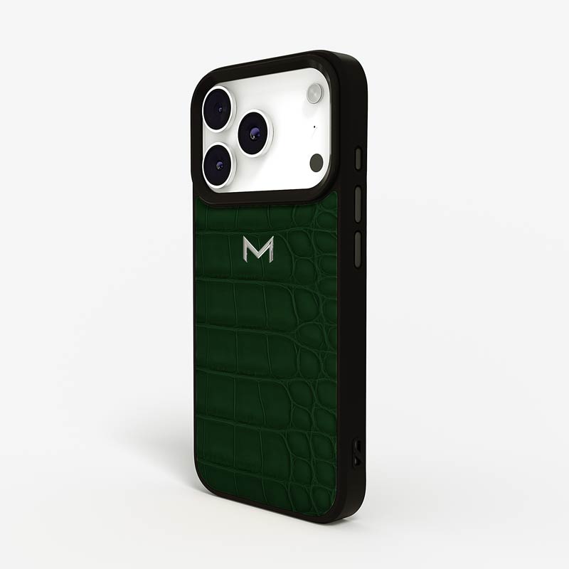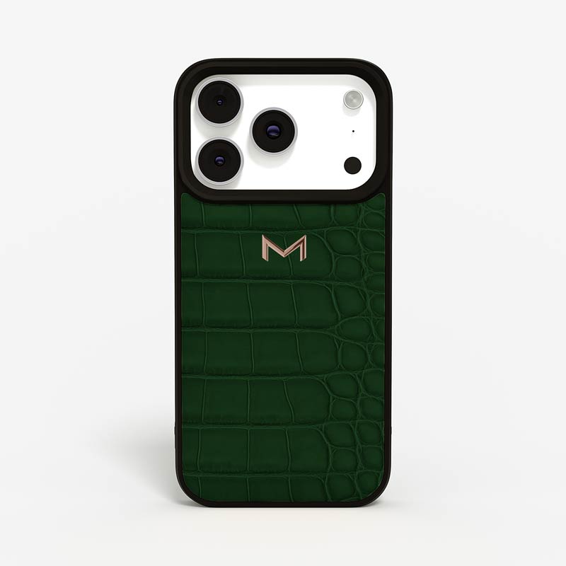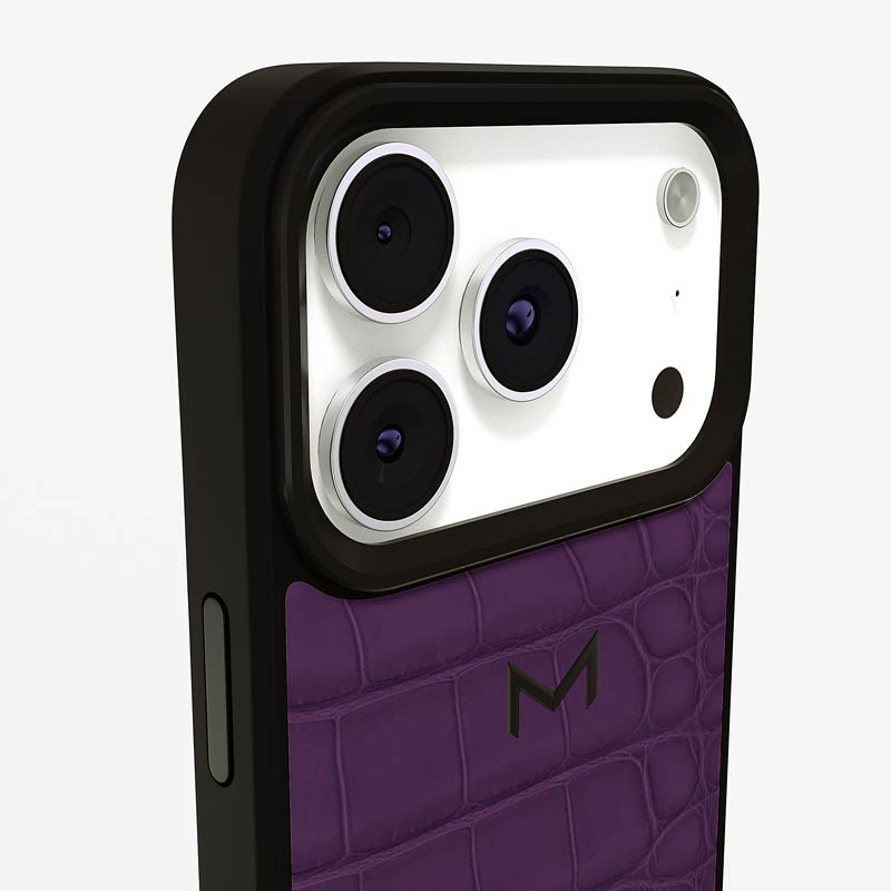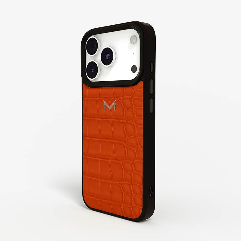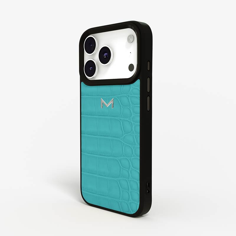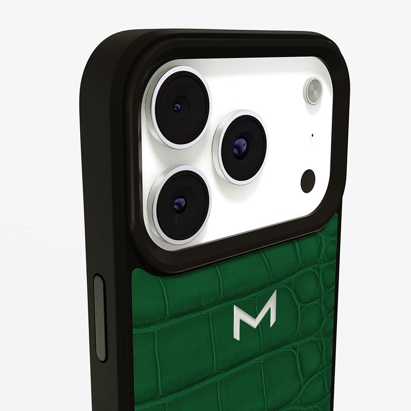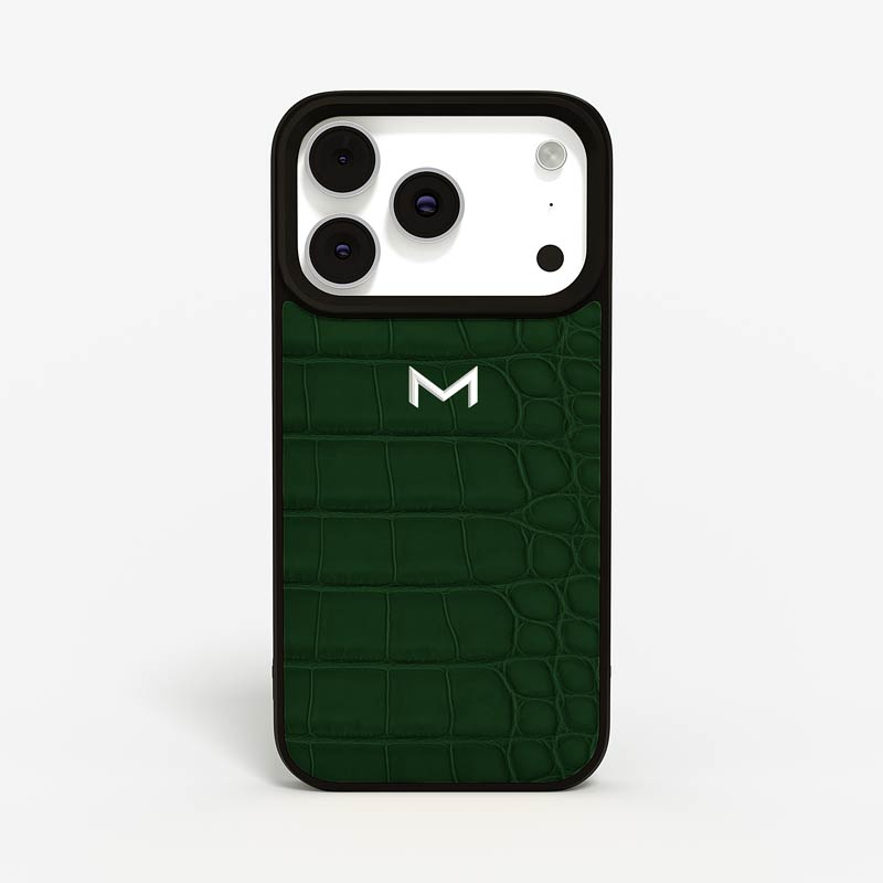 Exclusively made to order and entirely handcrafted, this iPhone 17 Pro Max case is sheathed in hand-selected, top-grade alligator leather — chosen for its rarity, texture, and unmistakable presence. Inside, a soft Alcantara lining cradles your device, preserving its flawless condition. The hand-polished 316L stainless steel logo and camera ring reflect a commitment to detail and craftsmanship rarely seen.