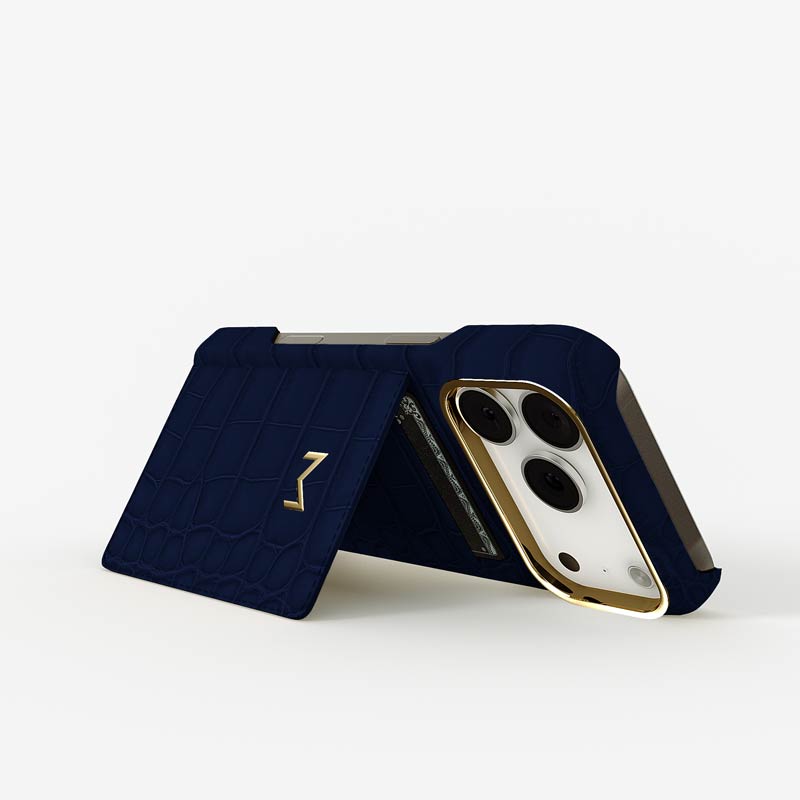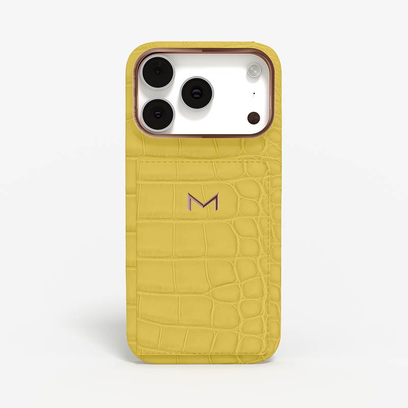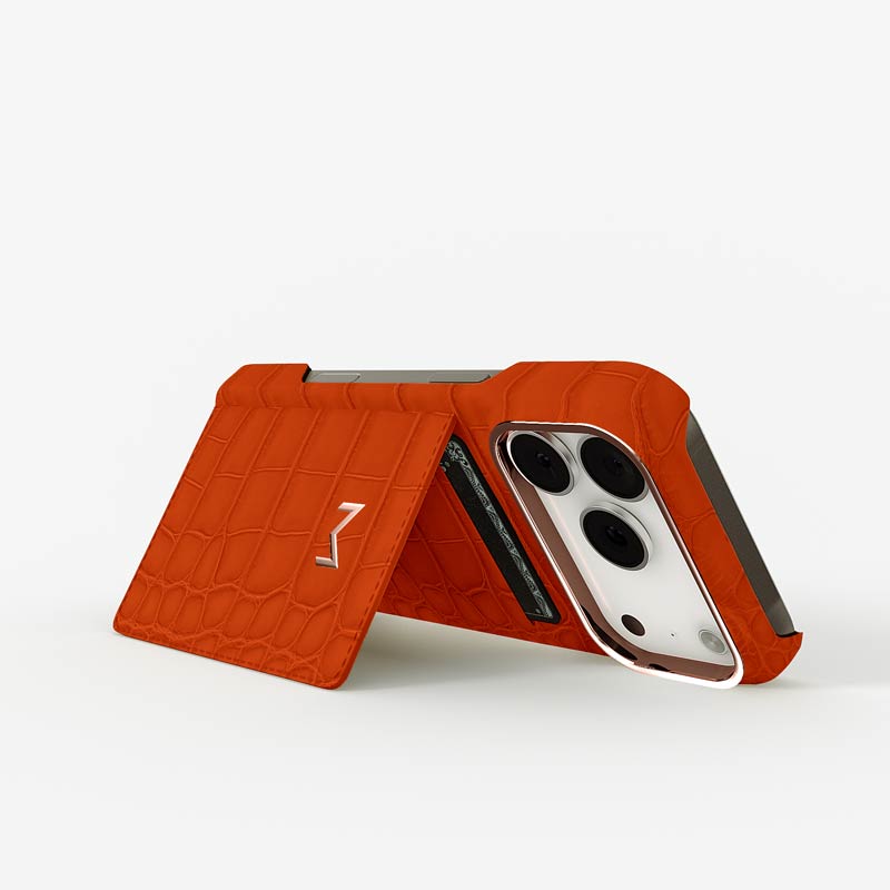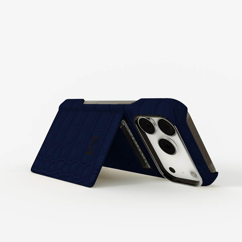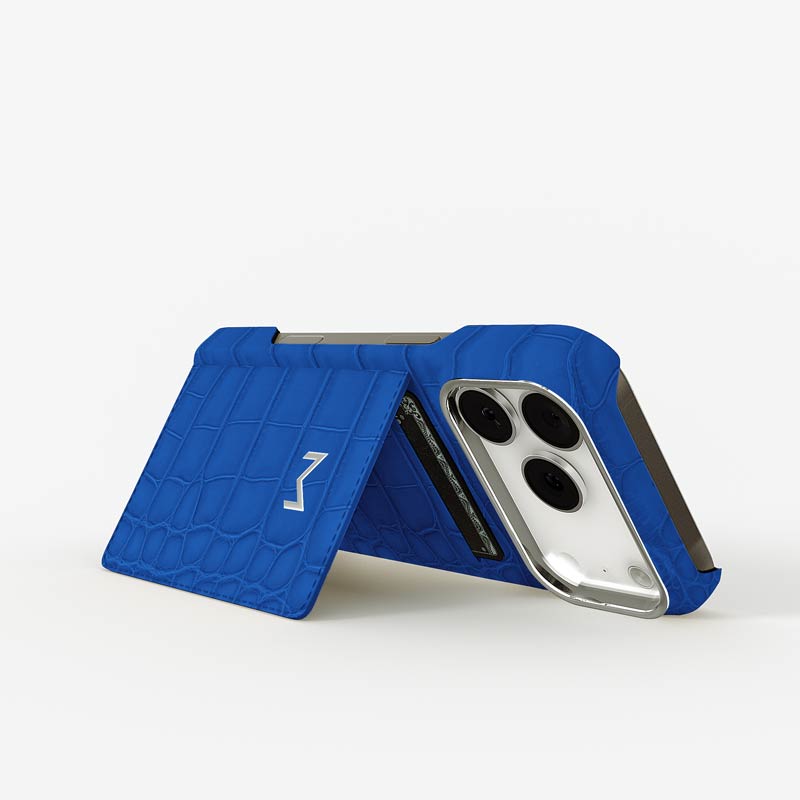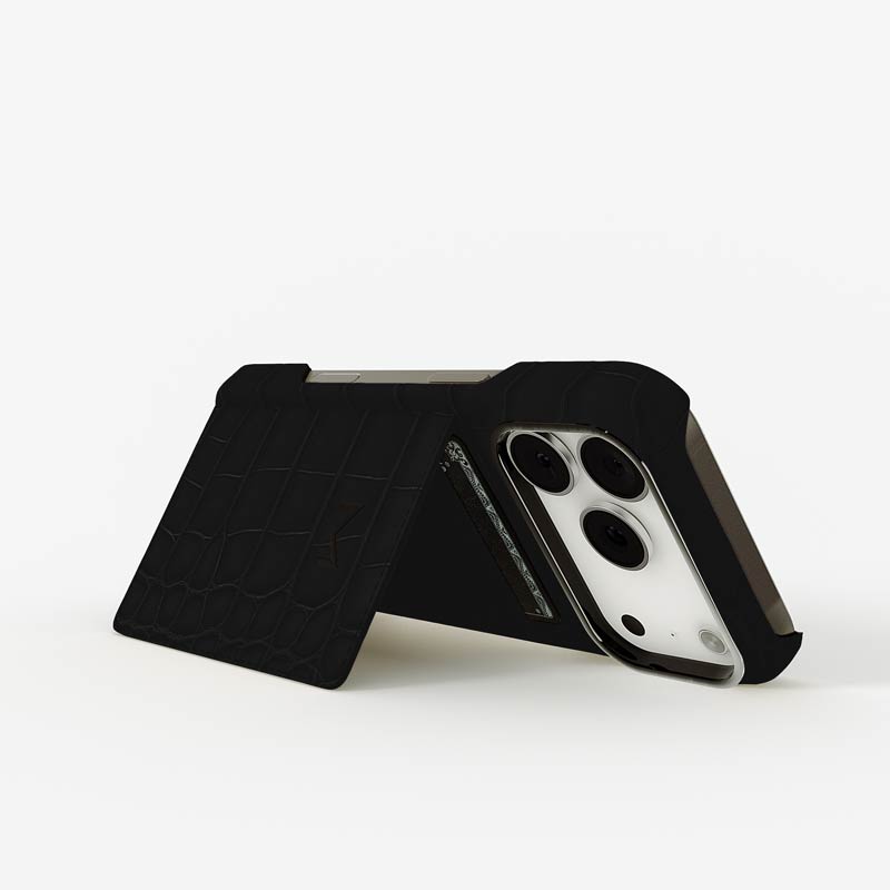 Exclusively made to order and entirely handcrafted, this iPhone 17 Pro Max case is sheathed in hand-selected, top-grade alligator leather — chosen for its rarity, texture, and unmistakable presence. Inside, a soft Alcantara lining cradles your device, preserving its flawless condition. The hand-polished 316L stainless steel logo and camera ring reflect a commitment to detail and craftsmanship rarely seen.