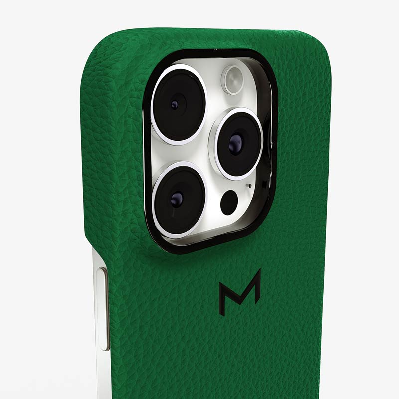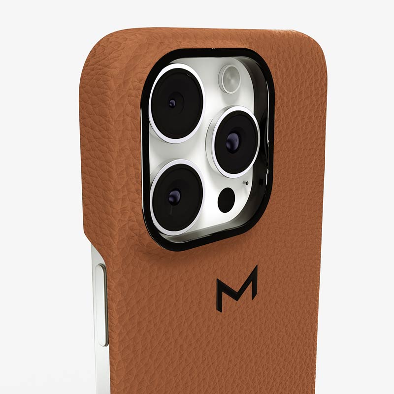 Exclusively made to order and entirely handcrafted, this iPhone 15 Pro case is sheathed in hand-selected, premium calf leather — prized for its softness, durability, and understated elegance. Inside, a soft Alcantara lining cradles your device, preserving its flawless condition. The hand-polished 316L stainless steel logo and camera ring reflect a commitment to detail and craftsmanship rarely seen.