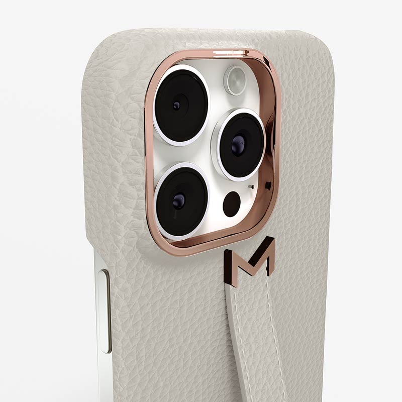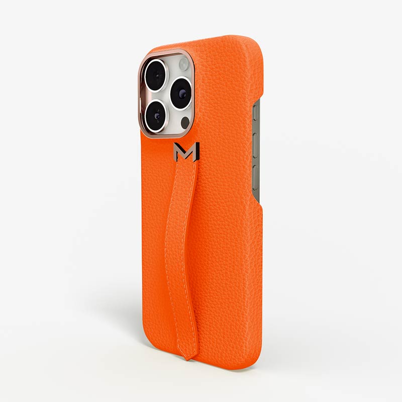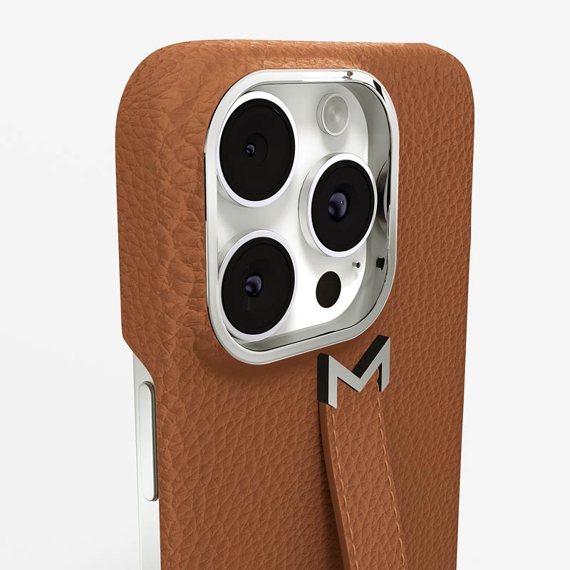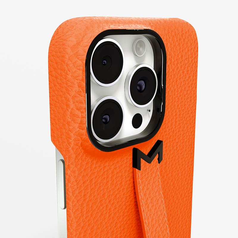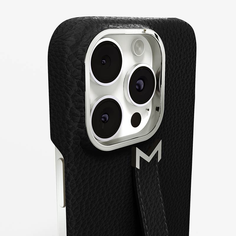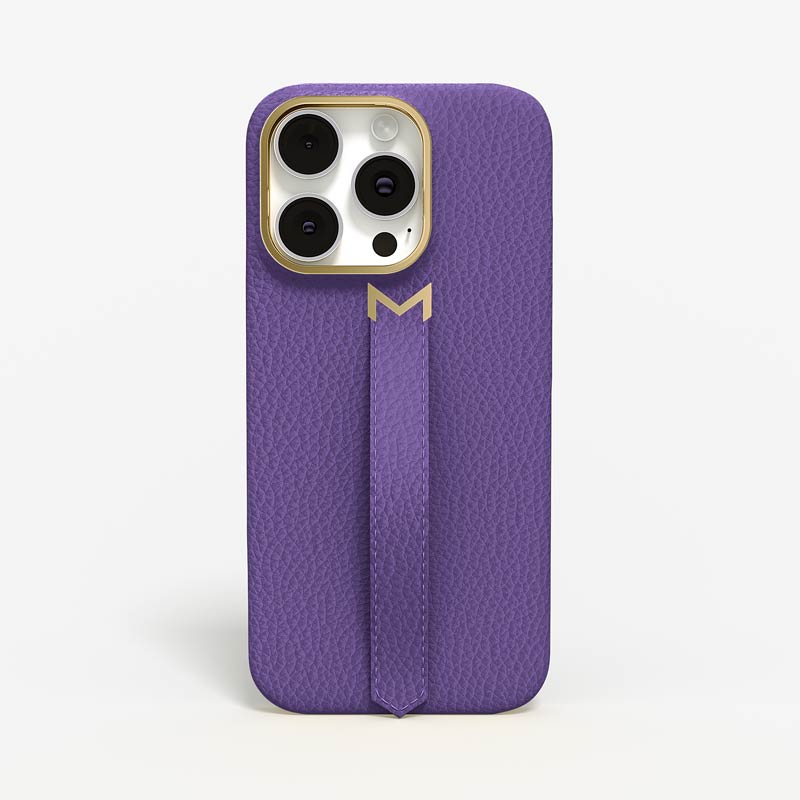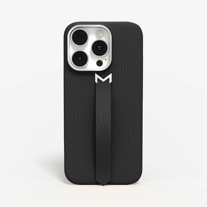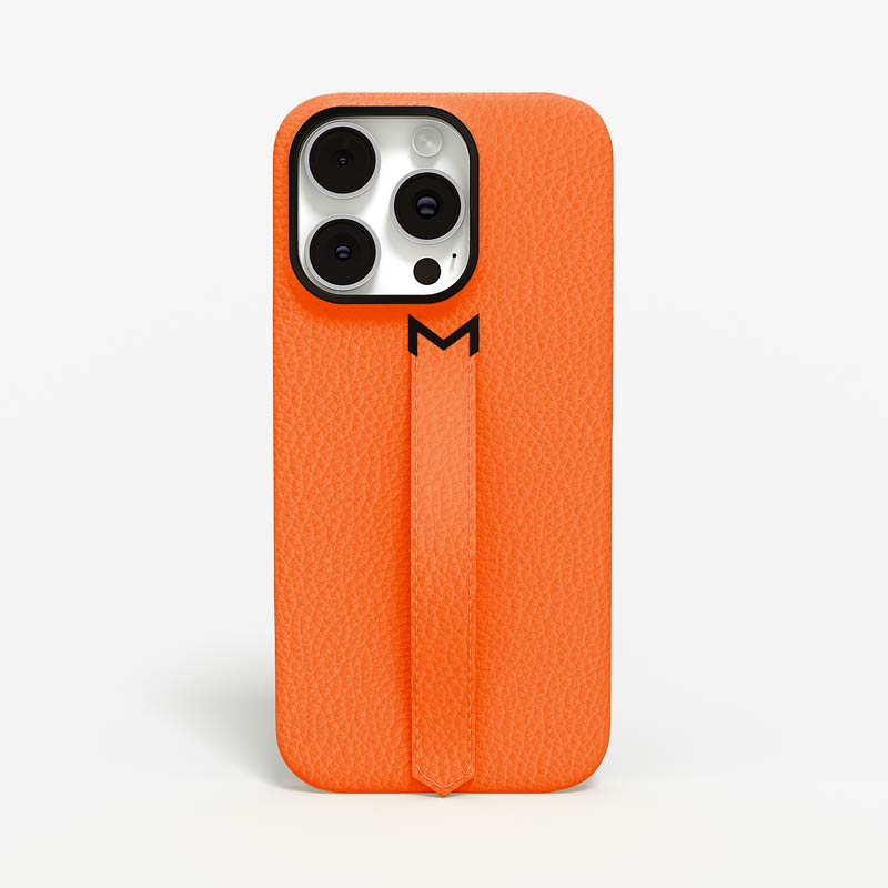 An integrated leather finger strap adds comfort and control, allowing for a secure grip while using your phone — with elegance and ease.