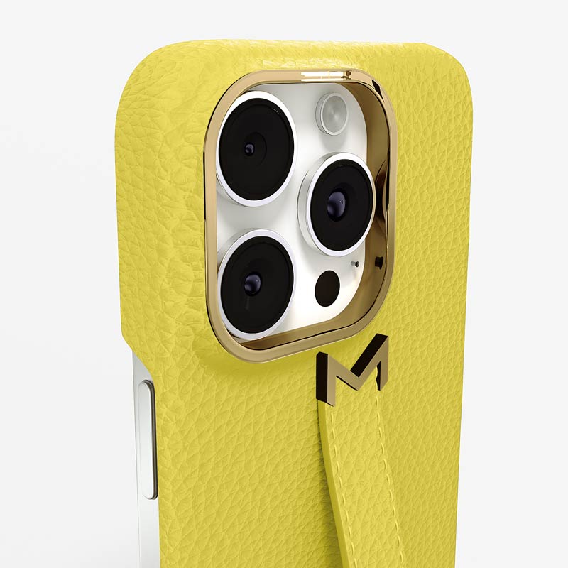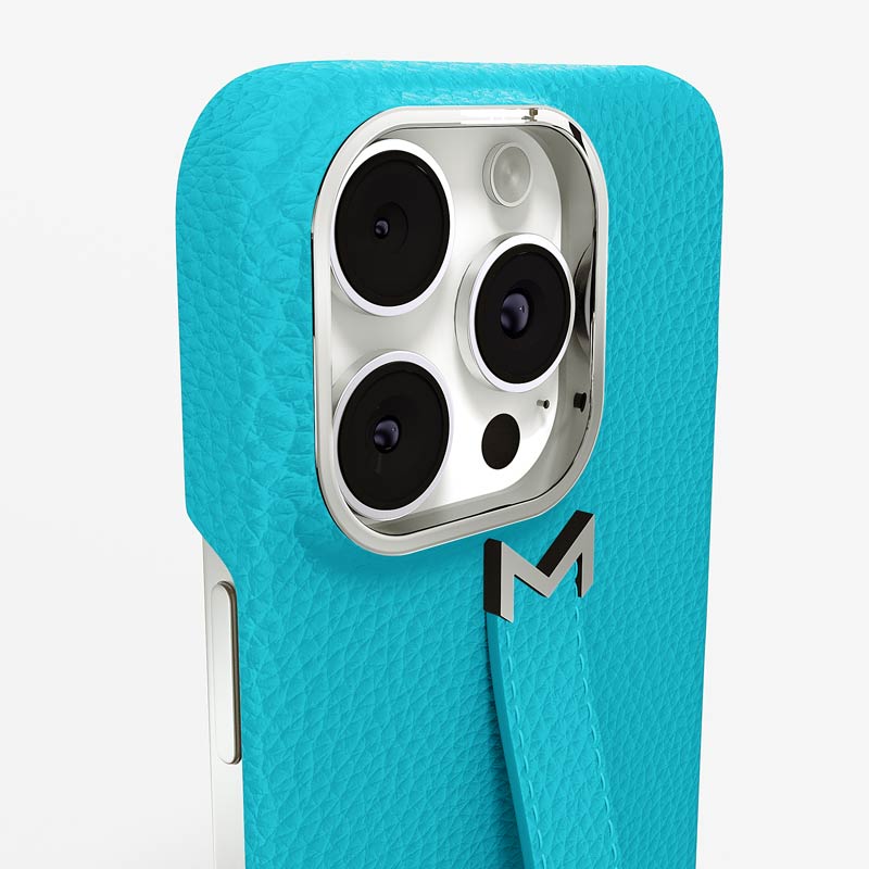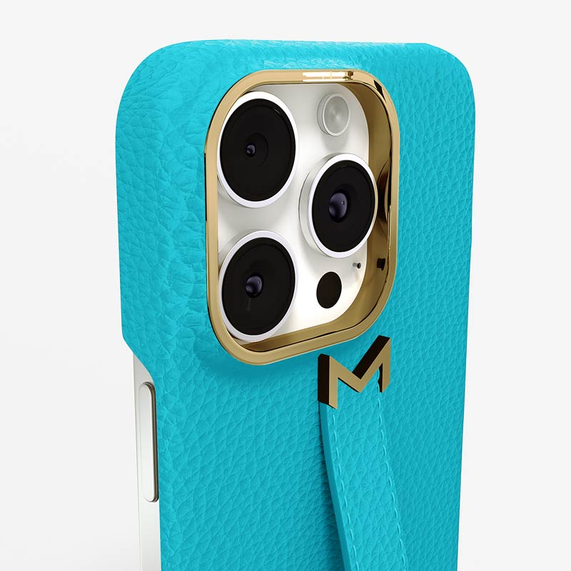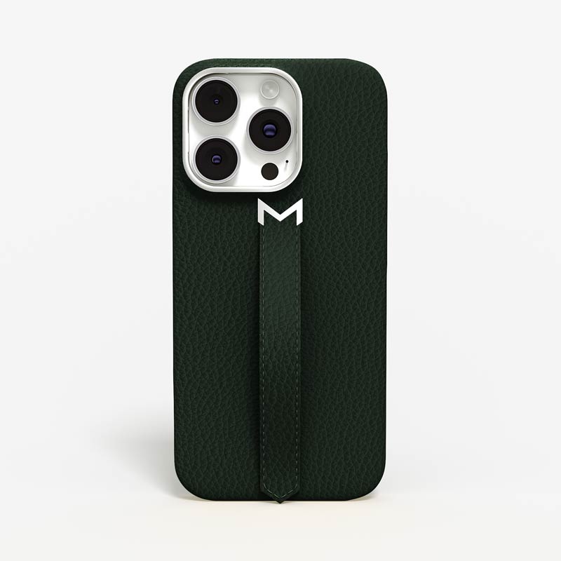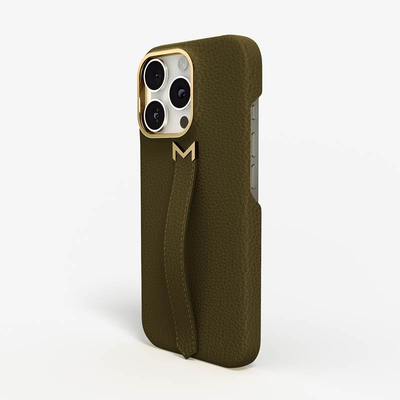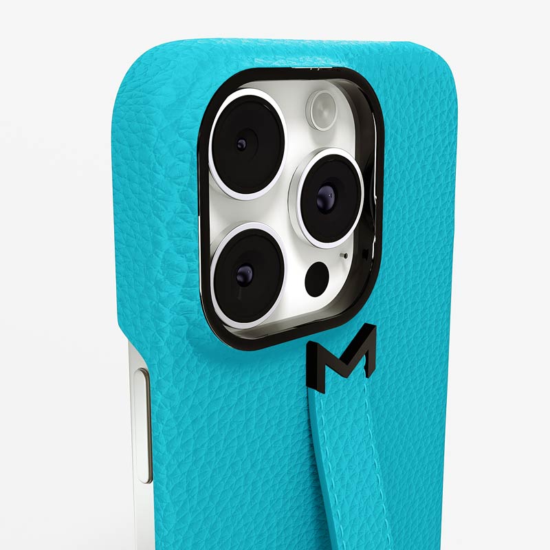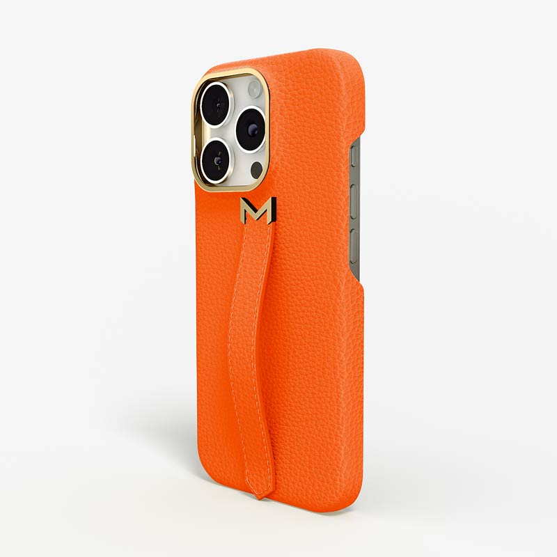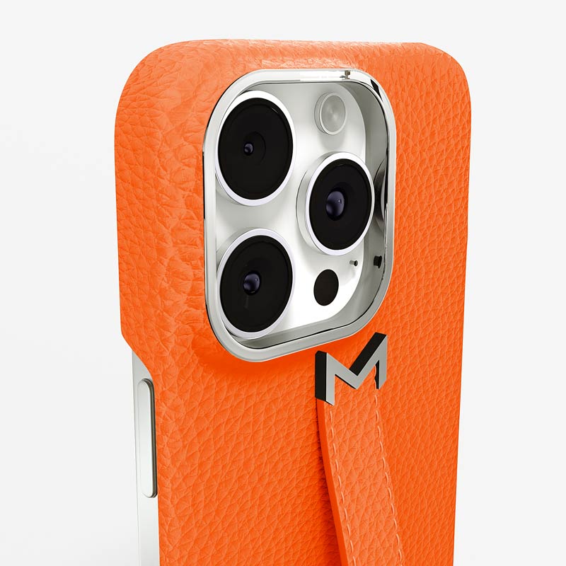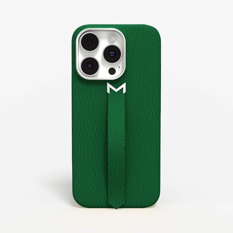 An integrated leather finger strap adds comfort and control, allowing for a secure grip while using your phone — with elegance and ease.
