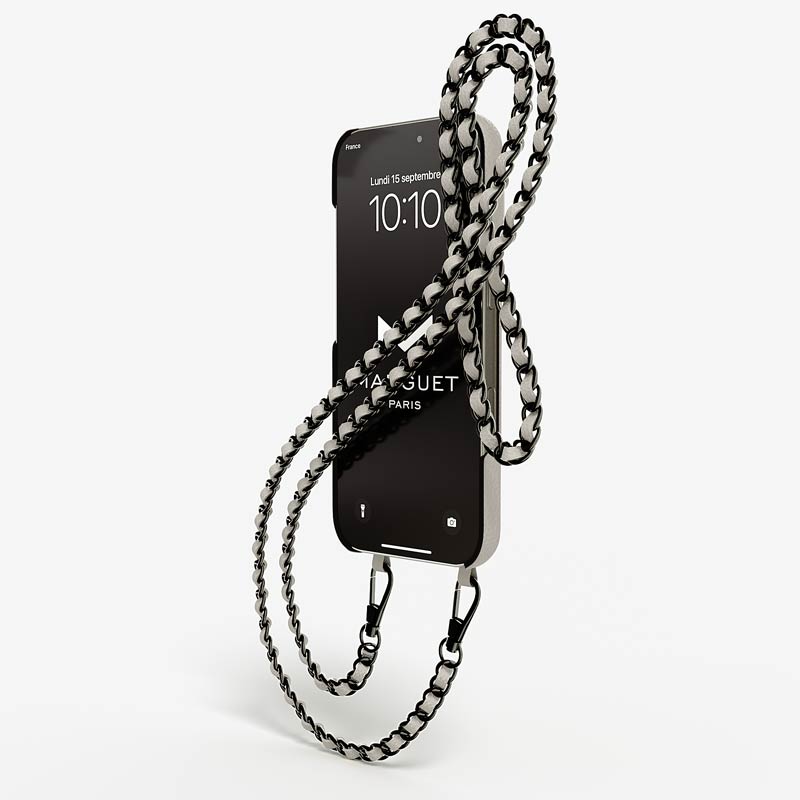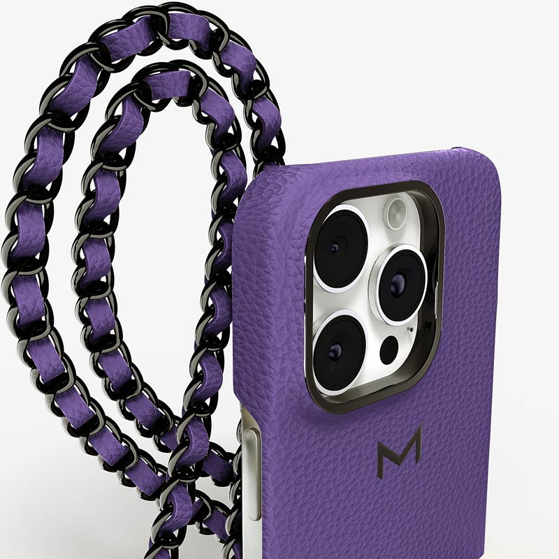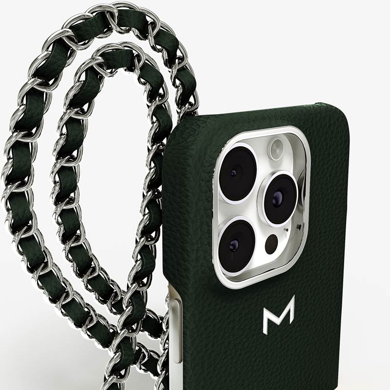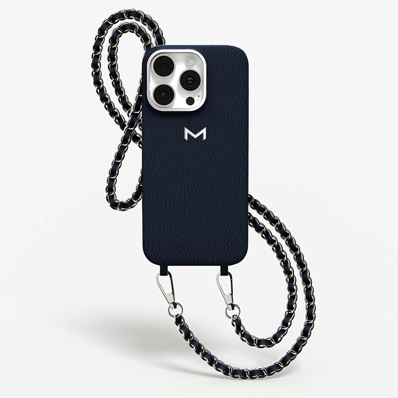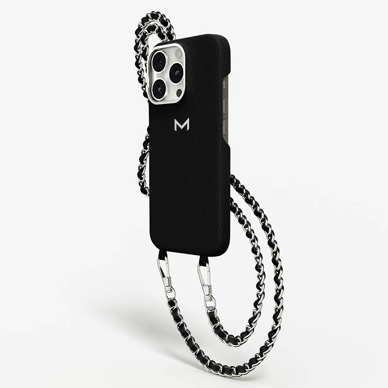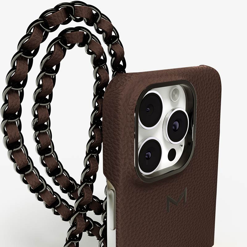 Exclusively made to order and entirely handcrafted, this iPhone 15 Pro case is sheathed in hand-selected, premium calf leather — prized for its softness, durability, and understated elegance. Inside, a soft Alcantara lining cradles your device, preserving its flawless condition. The hand-polished 316L stainless steel logo and leather-interlaced metal chain reflect a commitment to detail and craftsmanship rarely seen.