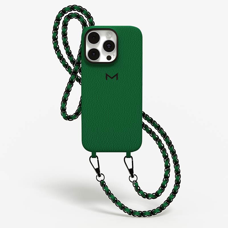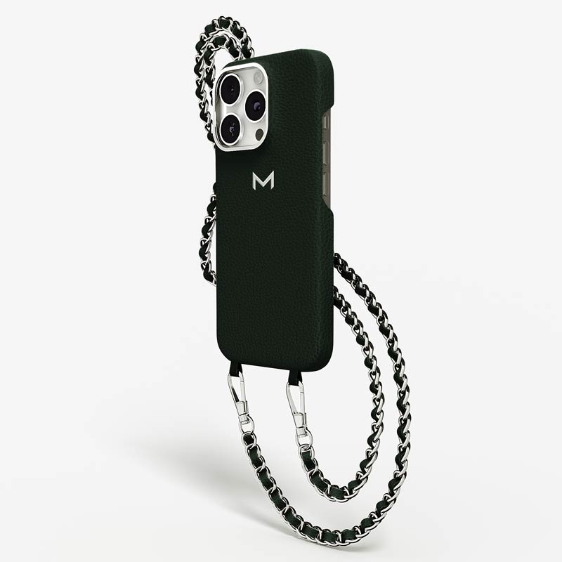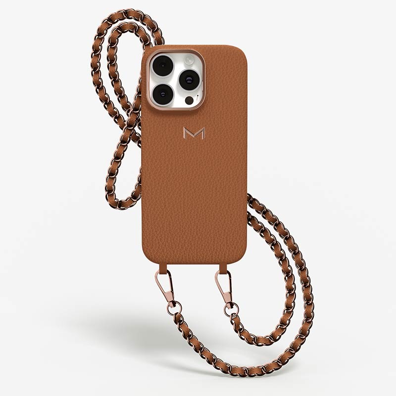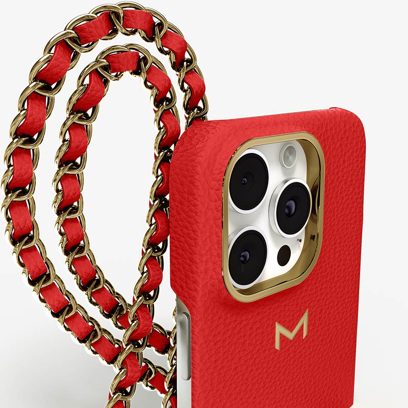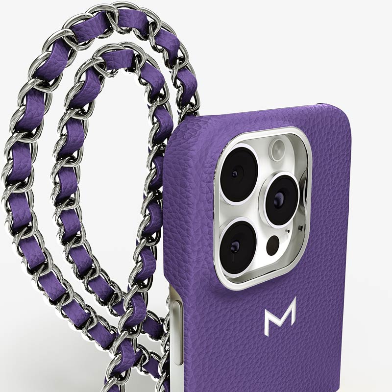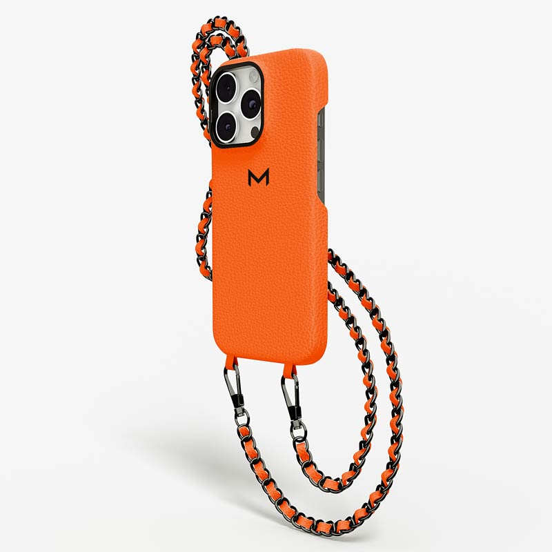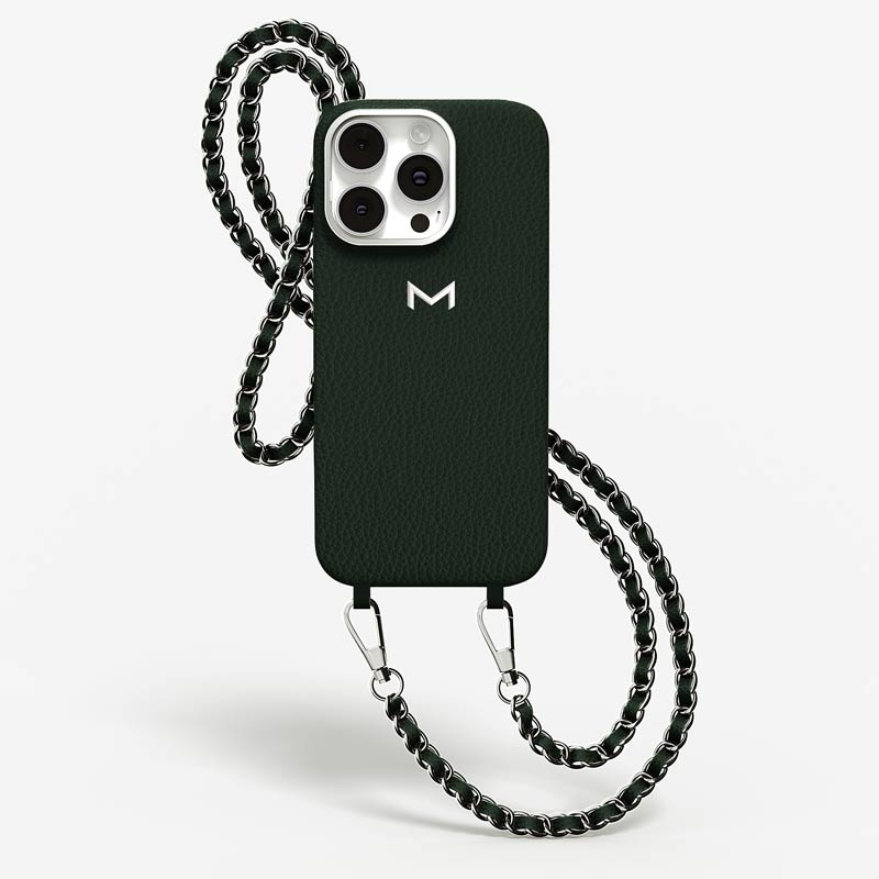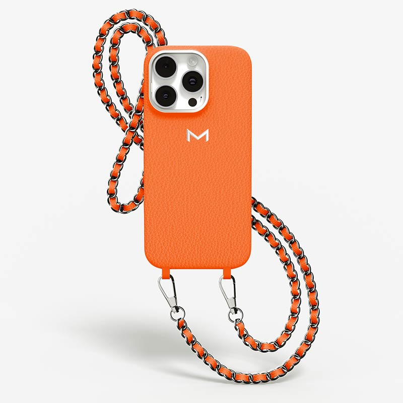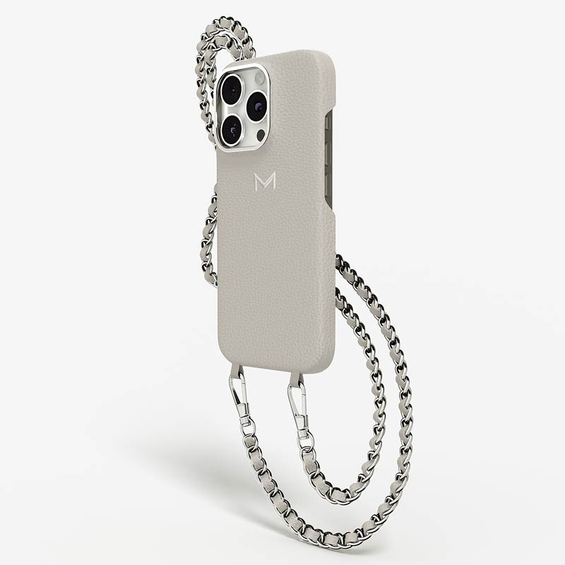 Exclusively made to order and entirely handcrafted, this iPhone 15 Pro Max case is sheathed in hand-selected, premium calf leather — prized for its softness, durability, and understated elegance. Inside, a soft Alcantara lining cradles your device, preserving its flawless condition. The hand-polished 316L stainless steel logo and leather-interlaced metal chain reflect a commitment to detail and craftsmanship rarely seen.