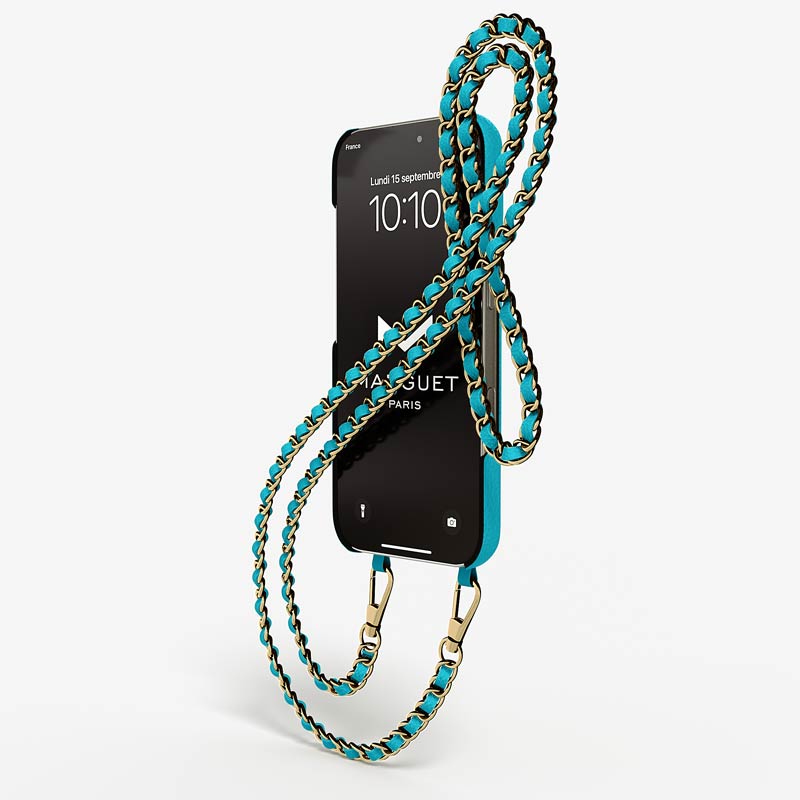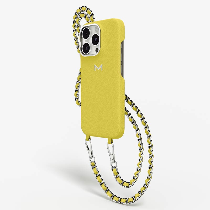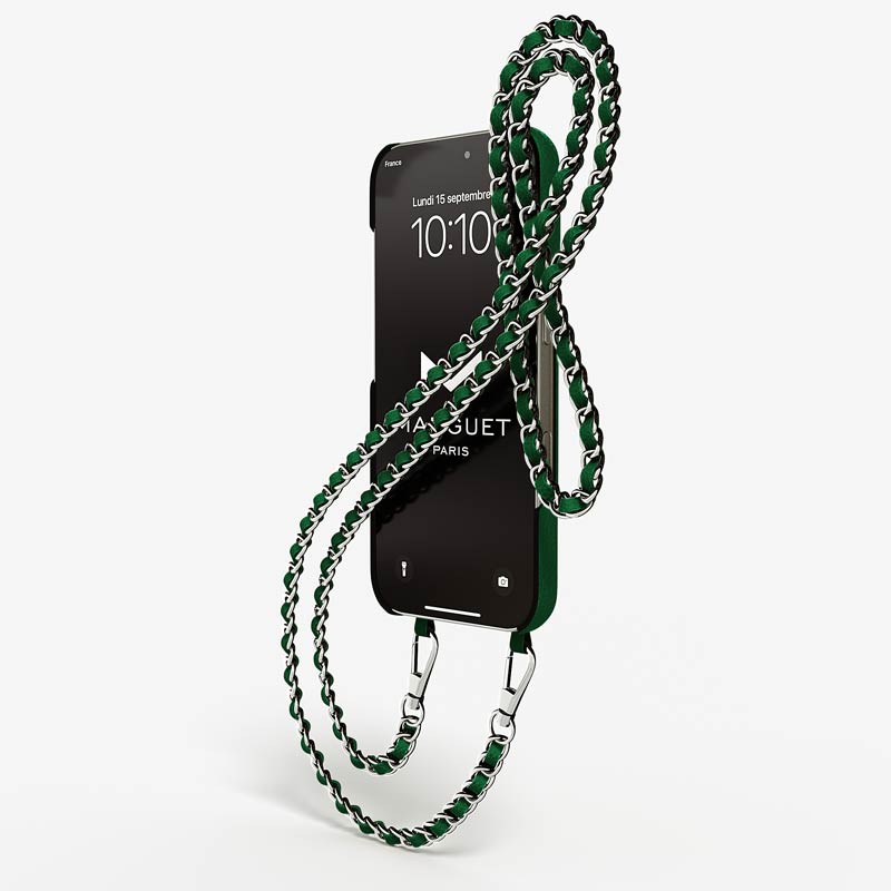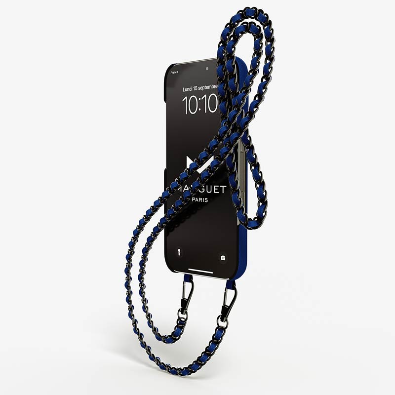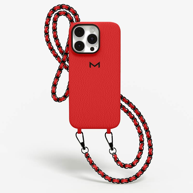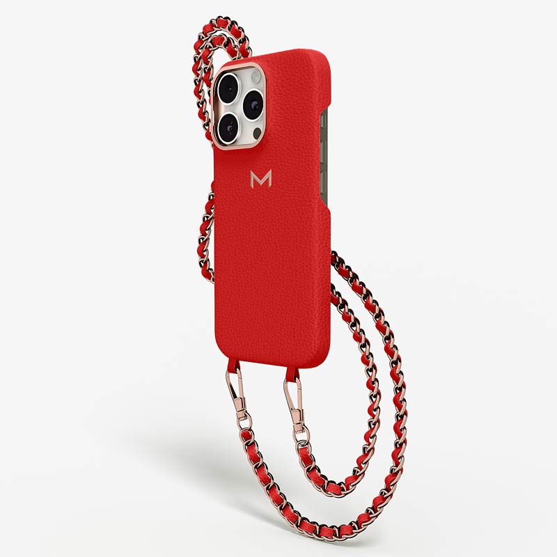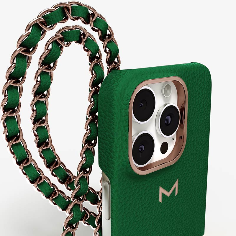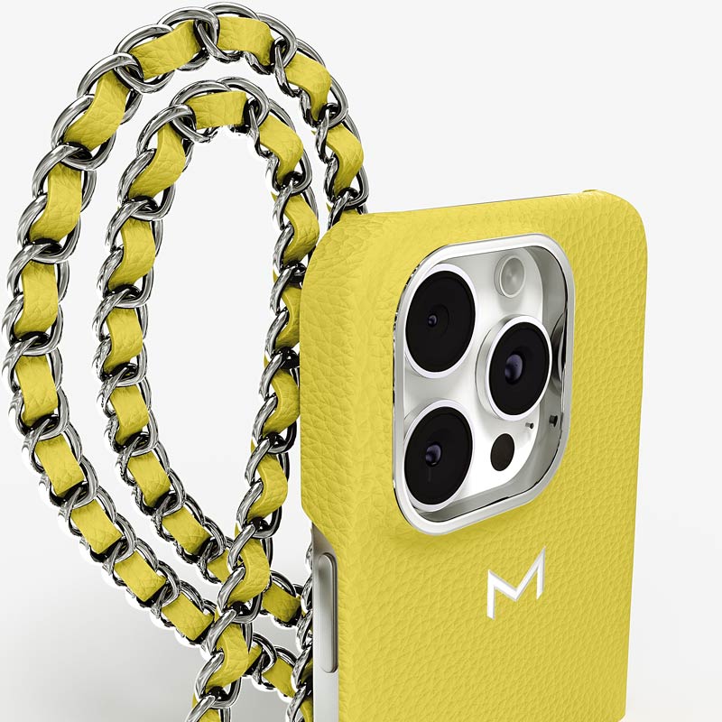 Exclusively made to order and entirely handcrafted, this iPhone 15 Pro Max case is sheathed in hand-selected, premium calf leather — prized for its softness, durability, and understated elegance. Inside, a soft Alcantara lining cradles your device, preserving its flawless condition. The hand-polished 316L stainless steel logo and leather-interlaced metal chain reflect a commitment to detail and craftsmanship rarely seen.