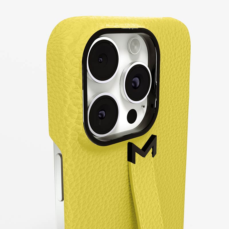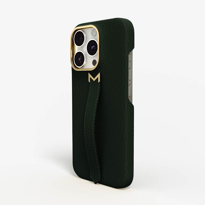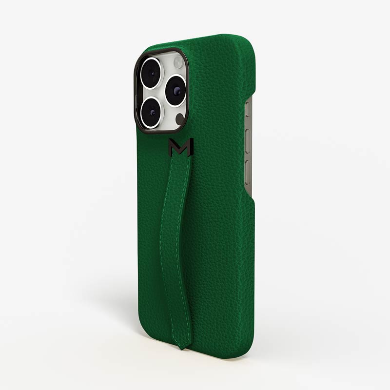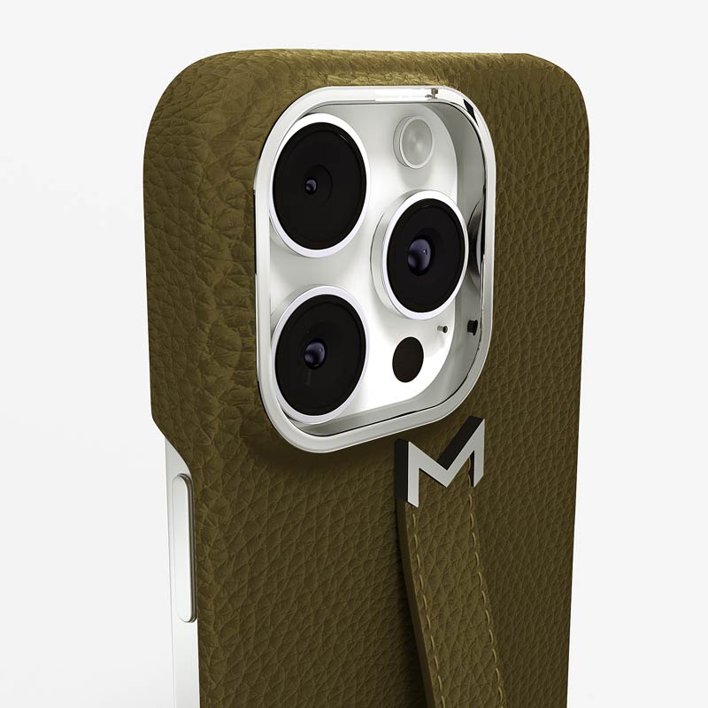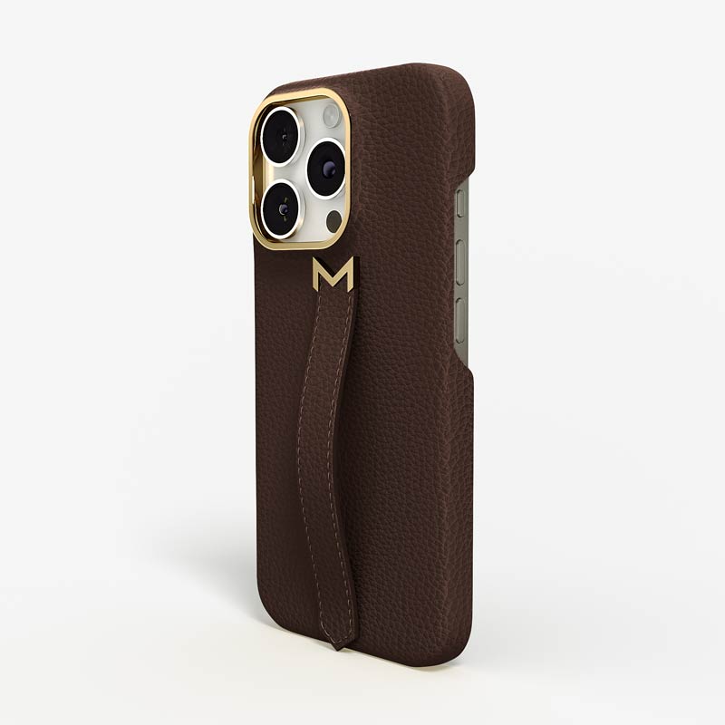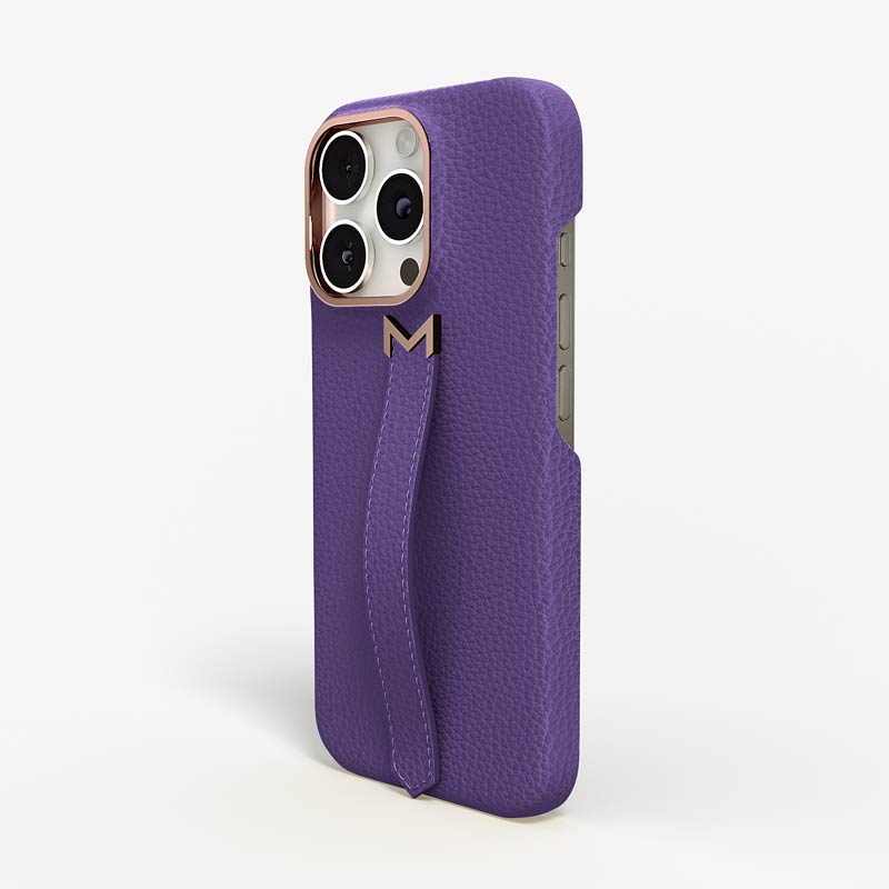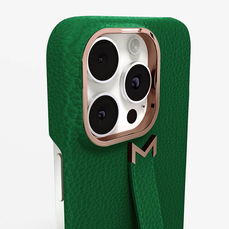 An integrated leather finger strap adds comfort and control, allowing for a secure grip while using your phone — with elegance and ease.