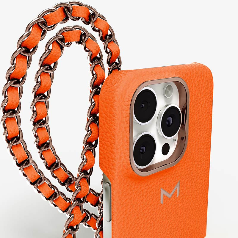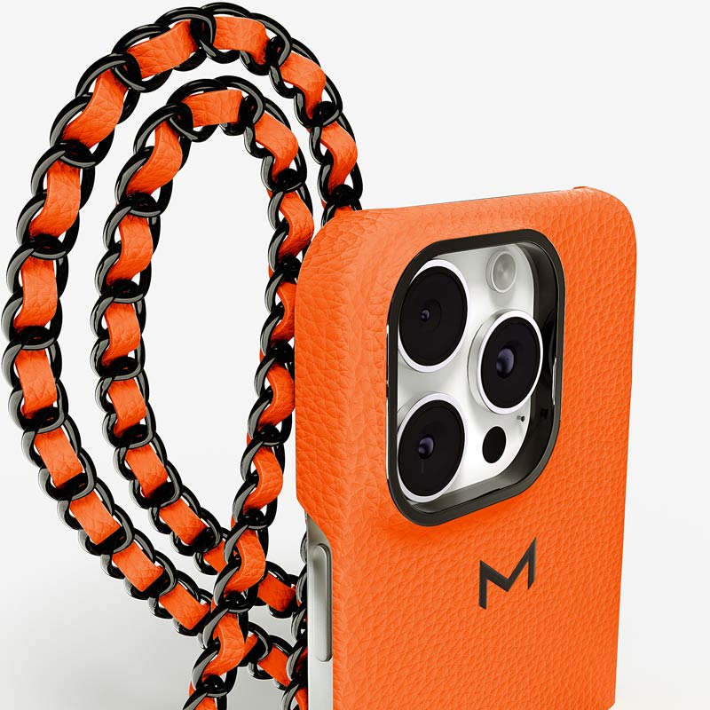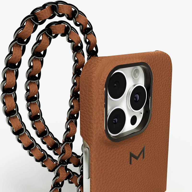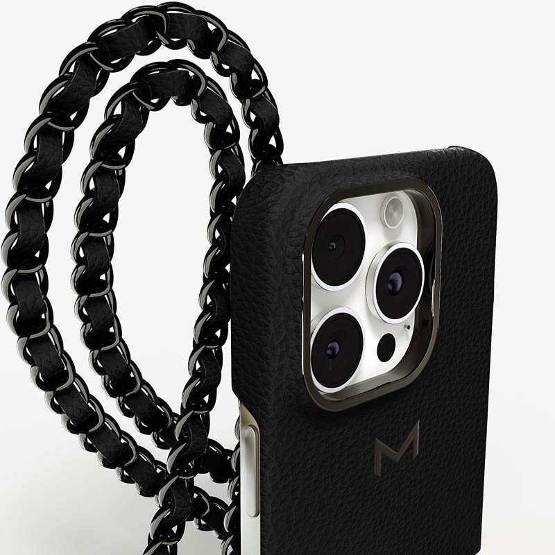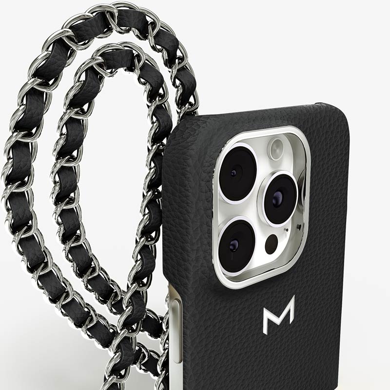 Exclusively made to order and entirely handcrafted, this iPhone 16 Pro case is sheathed in hand-selected, premium calf leather — prized for its softness, durability, and understated elegance. Inside, a soft Alcantara lining cradles your device, preserving its flawless condition. The hand-polished 316L stainless steel logo and leather-interlaced metal chain reflect a commitment to detail and craftsmanship rarely seen.