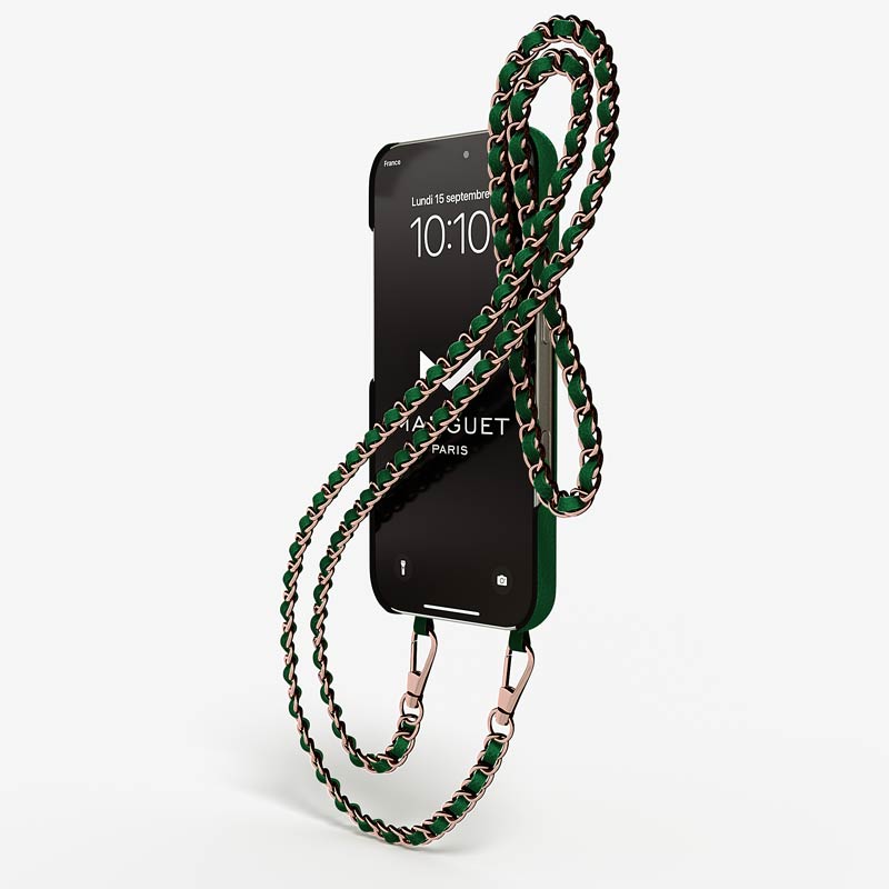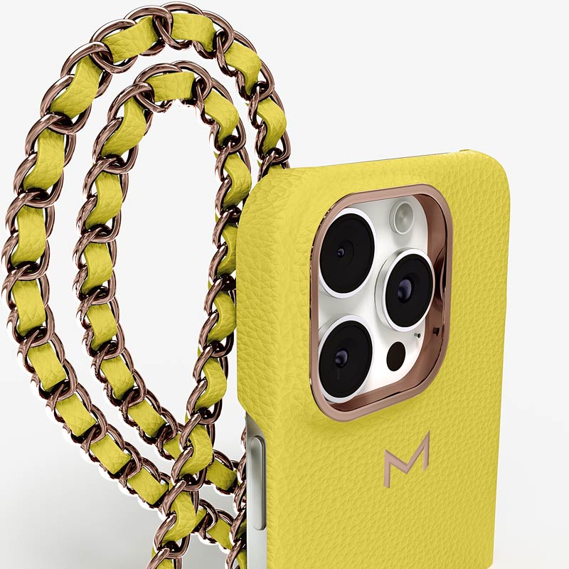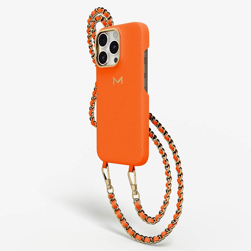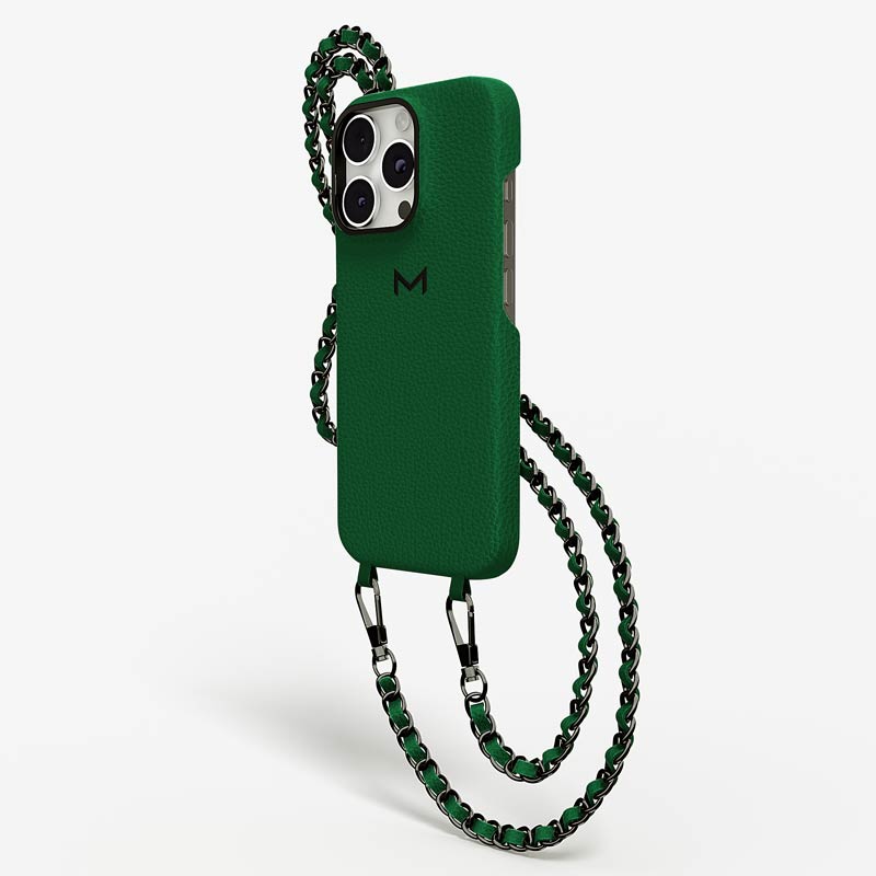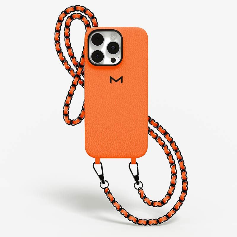 Exclusively made to order and entirely handcrafted, this iPhone 16 Pro case is sheathed in hand-selected, premium calf leather — prized for its softness, durability, and understated elegance. Inside, a soft Alcantara lining cradles your device, preserving its flawless condition. The hand-polished 316L stainless steel logo and leather-interlaced metal chain reflect a commitment to detail and craftsmanship rarely seen.