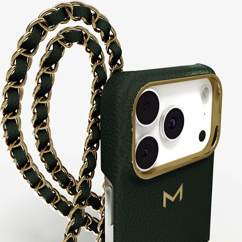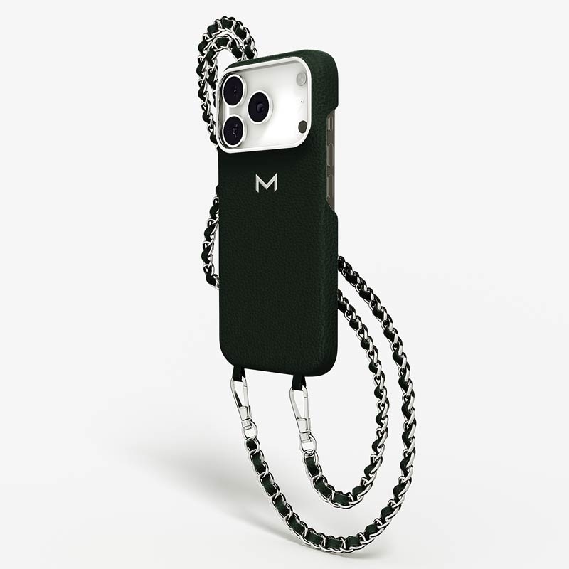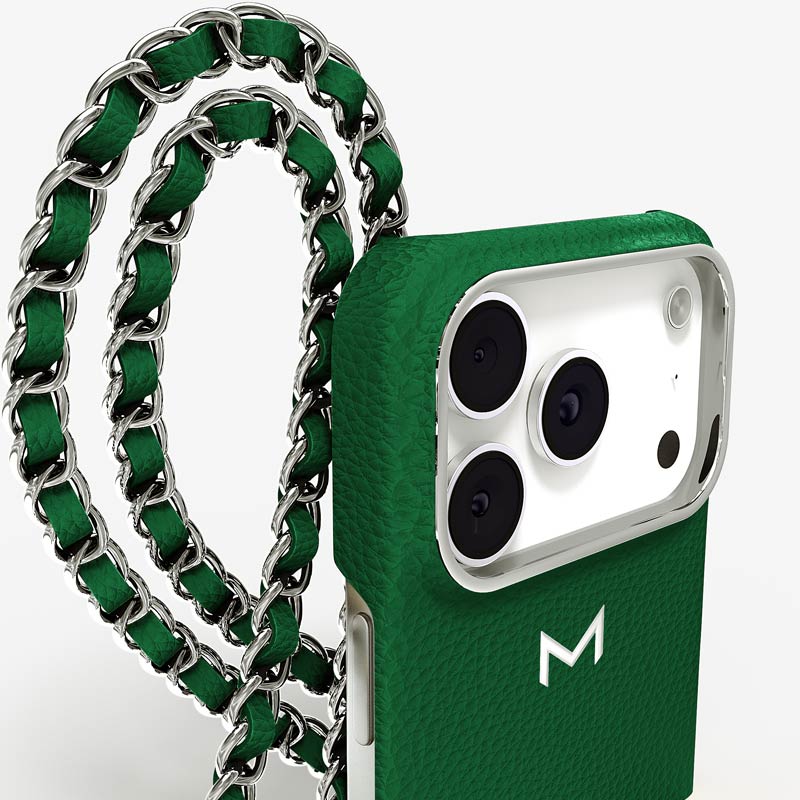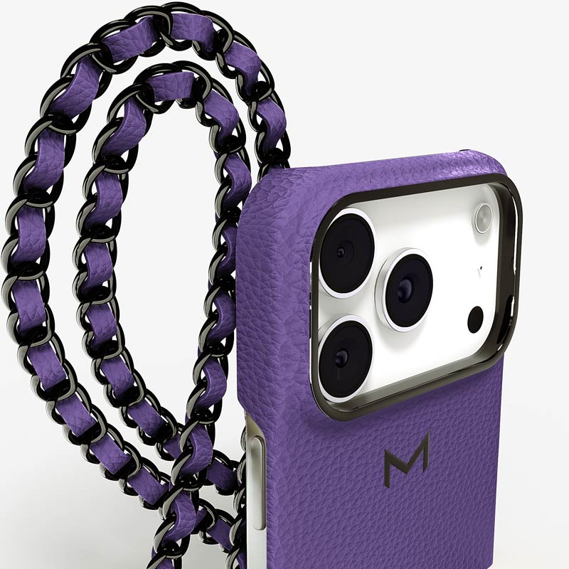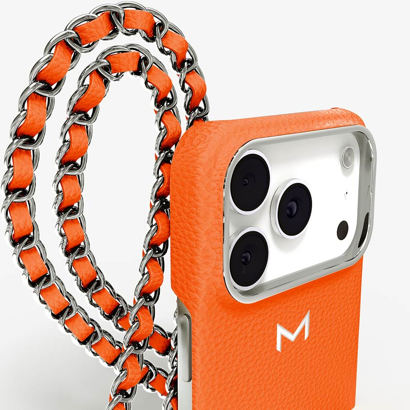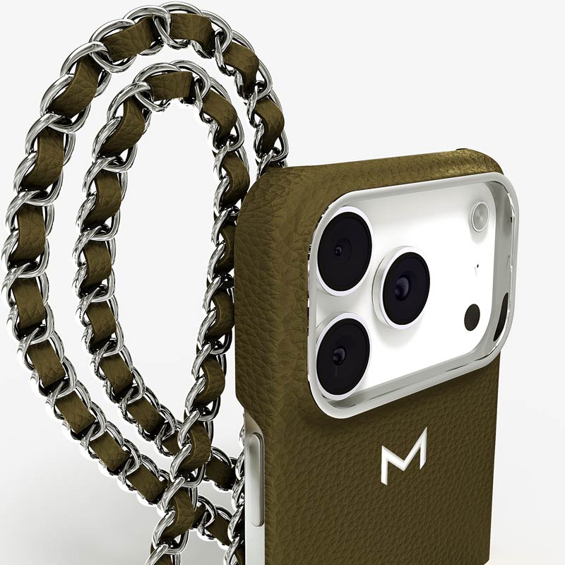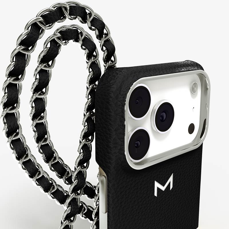 Exclusively made to order and entirely handcrafted, this iPhone 17 Pro case is sheathed in hand-selected, premium calf leather — prized for its softness, durability, and understated elegance. Inside, a soft Alcantara lining cradles your device, preserving its flawless condition. The hand-polished 316L stainless steel logo and leather-interlaced metal chain reflect a commitment to detail and craftsmanship rarely seen.
