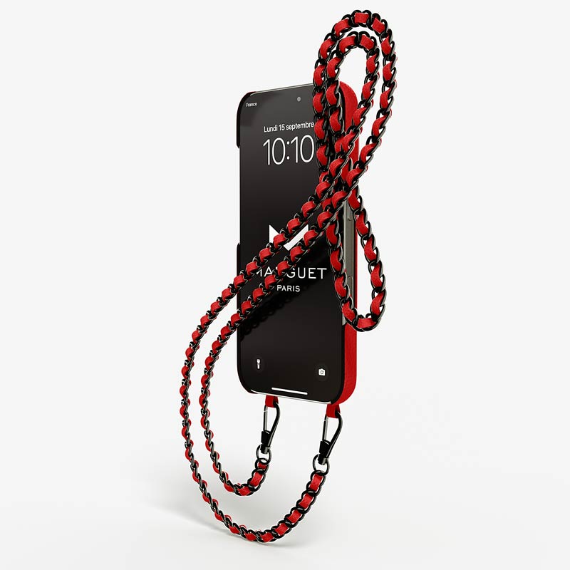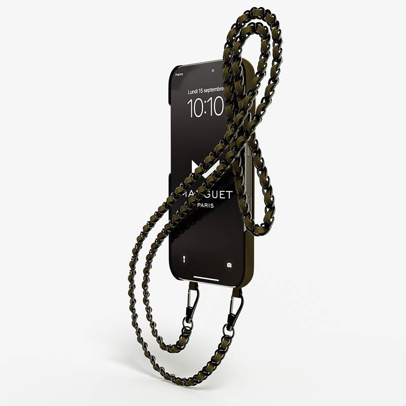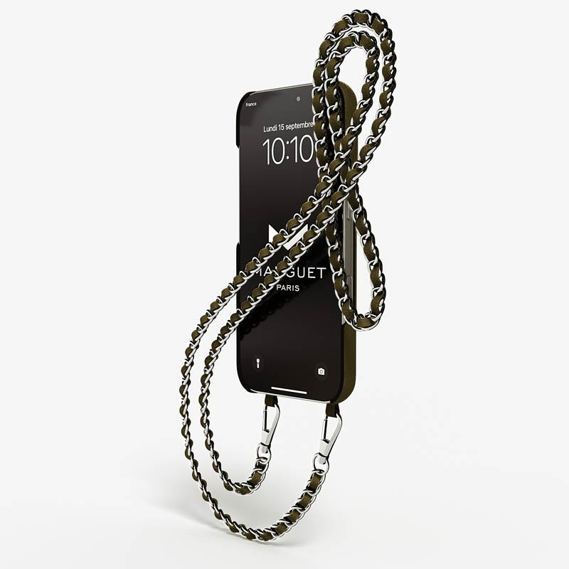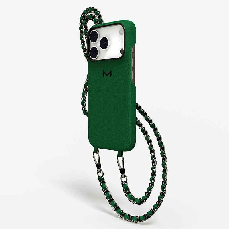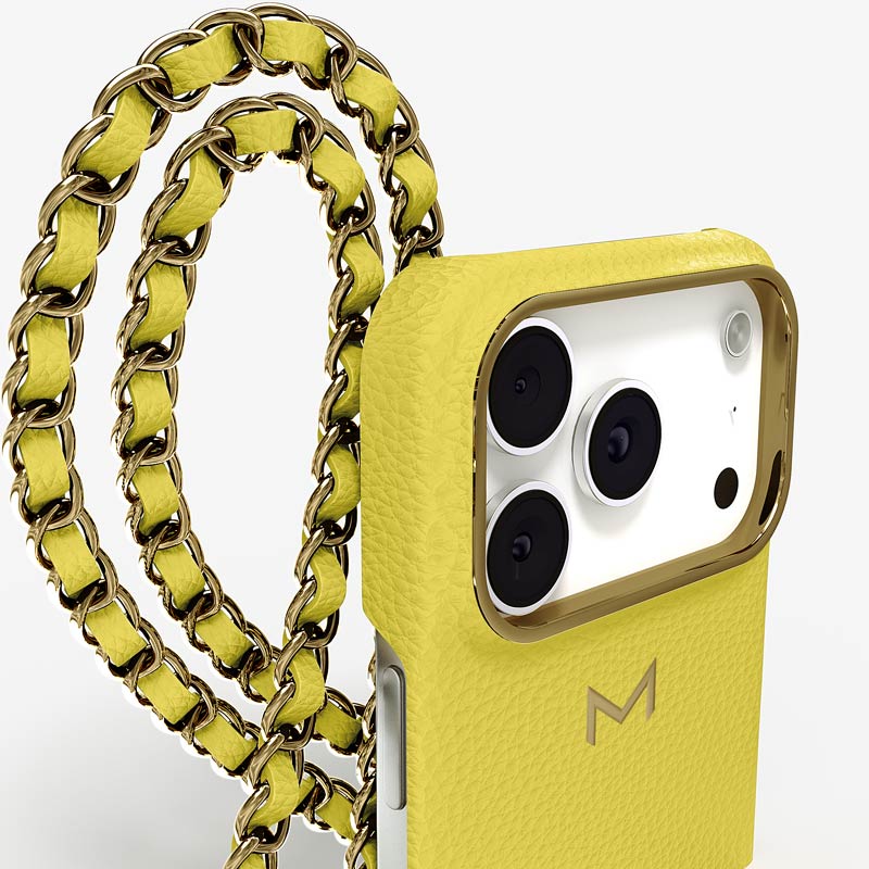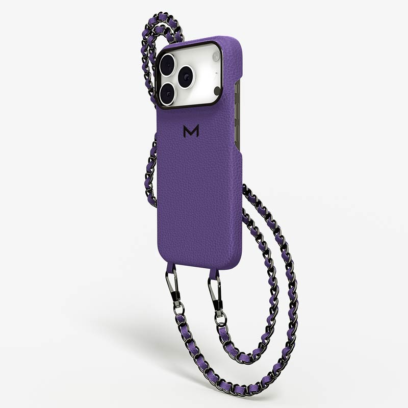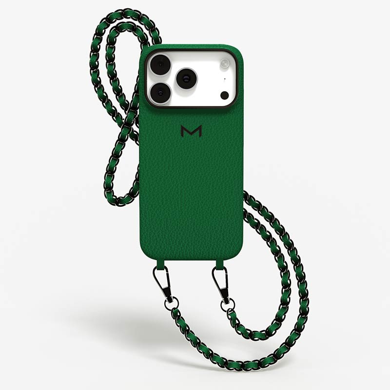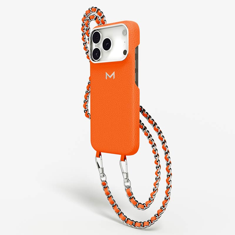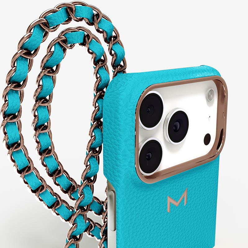 Exclusively made to order and entirely handcrafted, this iPhone 17 Pro Max case is sheathed in hand-selected, premium calf leather — prized for its softness, durability, and understated elegance. Inside, a soft Alcantara lining cradles your device, preserving its flawless condition. The hand-polished 316L stainless steel logo and leather-interlaced metal chain reflect a commitment to detail and craftsmanship rarely seen.