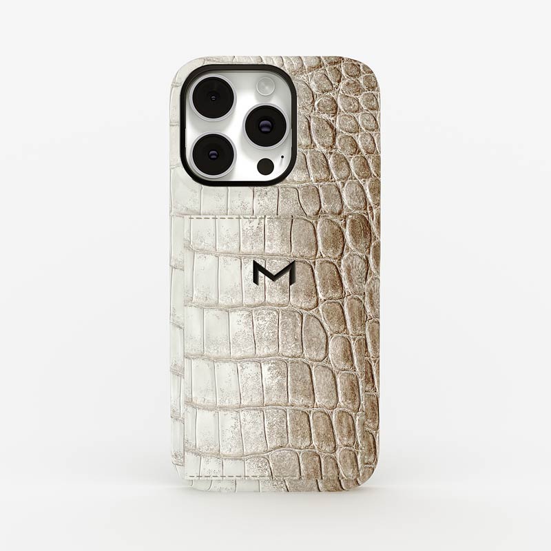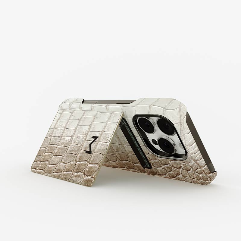 Exclusively made to order and entirely handcrafted, this iPhone 15 Pro case is sheathed in ultra-rare Himalaya crocodile leather — selected for its exceptional gradient, rarity, and timeless prestige. Inside, a soft Alcantara lining cradles your device, preserving its flawless condition. The hand-polished 316L stainless steel logo and camera ring reflect a commitment to detail and craftsmanship rarely seen.