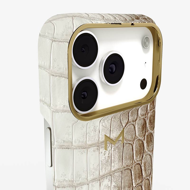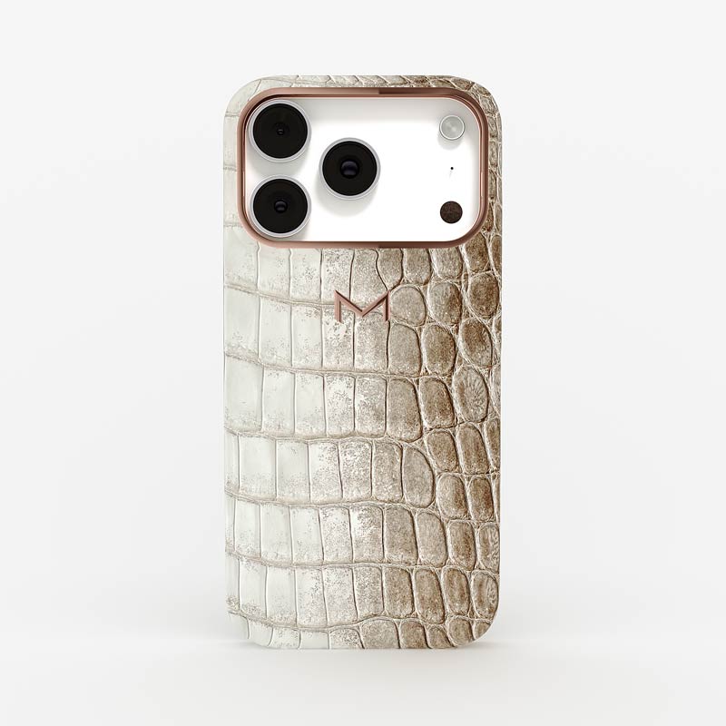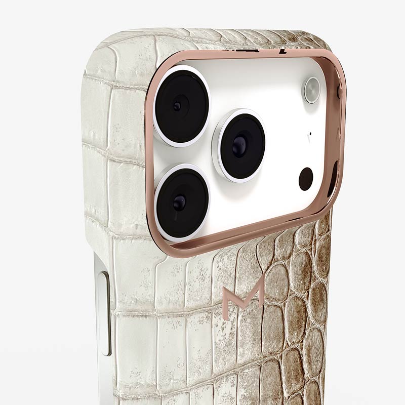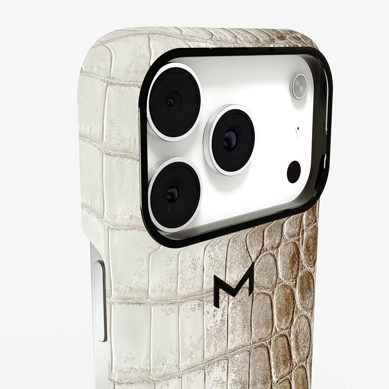 Exclusively made to order and entirely handcrafted, this iPhone 17 Pro case is sheathed in ultra-rare Himalaya crocodile leather — selected for its exceptional gradient, rarity, and timeless prestige. Inside, a soft Alcantara lining cradles your device, preserving its flawless condition. The hand-polished 316L stainless steel logo and camera ring reflect a commitment to detail and craftsmanship rarely seen.