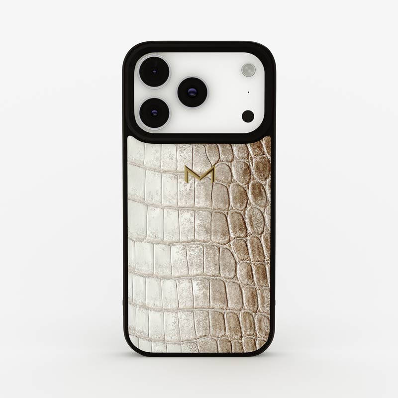 Exclusively made to order and entirely handcrafted, this iPhone 17 Pro case is sheathed in ultra-rare Himalaya crocodile leather — selected for its exceptional gradient, rarity, and timeless prestige. Inside, a soft Alcantara lining cradles your device, preserving its flawless condition. The hand-polished 316L stainless steel logo and camera ring reflect a commitment to detail and craftsmanship rarely seen.