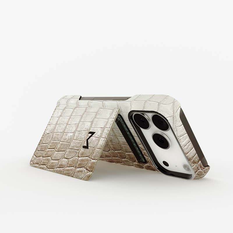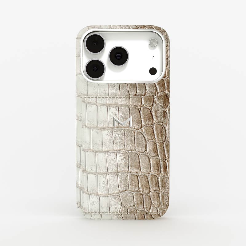 Exclusively made to order and entirely handcrafted, this iPhone 17 Pro case is sheathed in ultra-rare Himalaya crocodile leather — selected for its exceptional gradient, rarity, and timeless prestige. Inside, a soft Alcantara lining cradles your device, preserving its flawless condition. The hand-polished 316L stainless steel logo and camera ring reflect a commitment to detail and craftsmanship rarely seen.