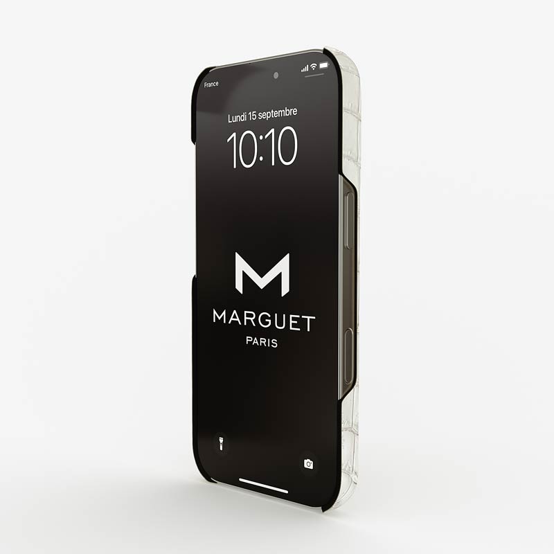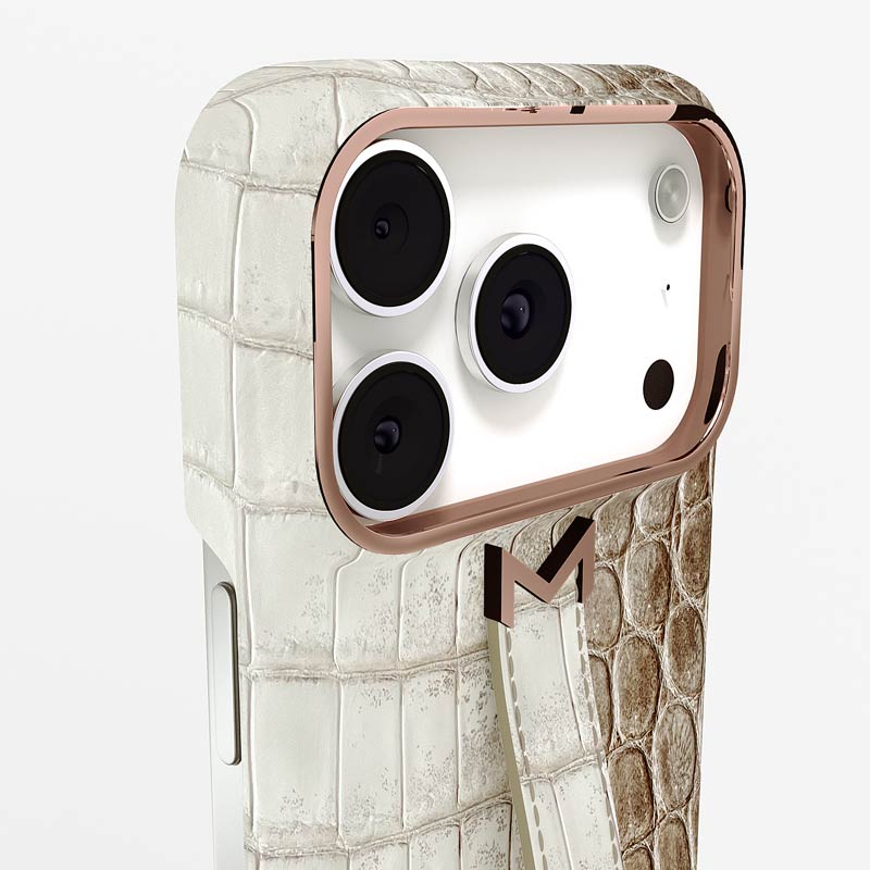 Exclusively made to order and entirely handcrafted, this iPhone 17 Pro Max case is sheathed in ultra-rare Himalaya crocodile leather — selected for its exceptional gradient, rarity, and timeless prestige. Inside, a soft Alcantara lining cradles your device, preserving its flawless condition. The hand-polished 316L stainless steel logo and camera ring reflect a commitment to detail and craftsmanship rarely seen.